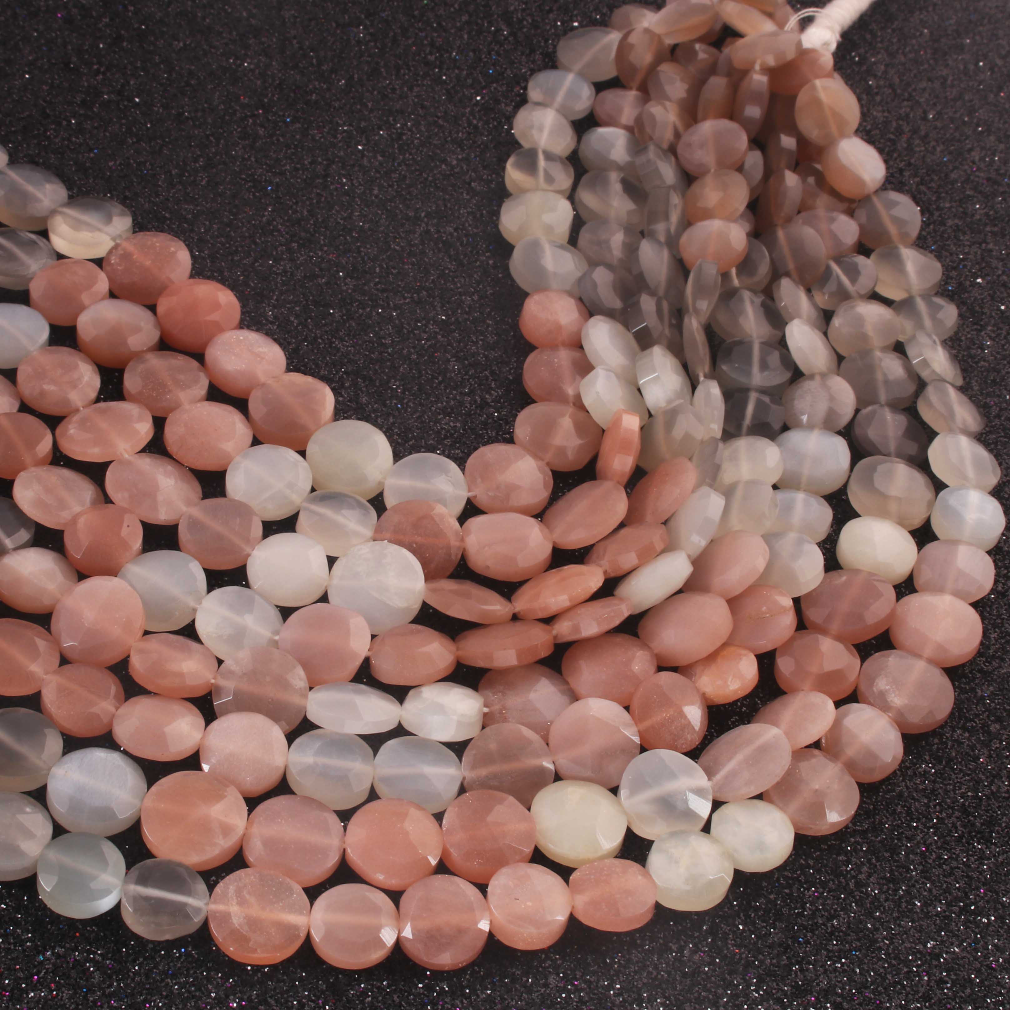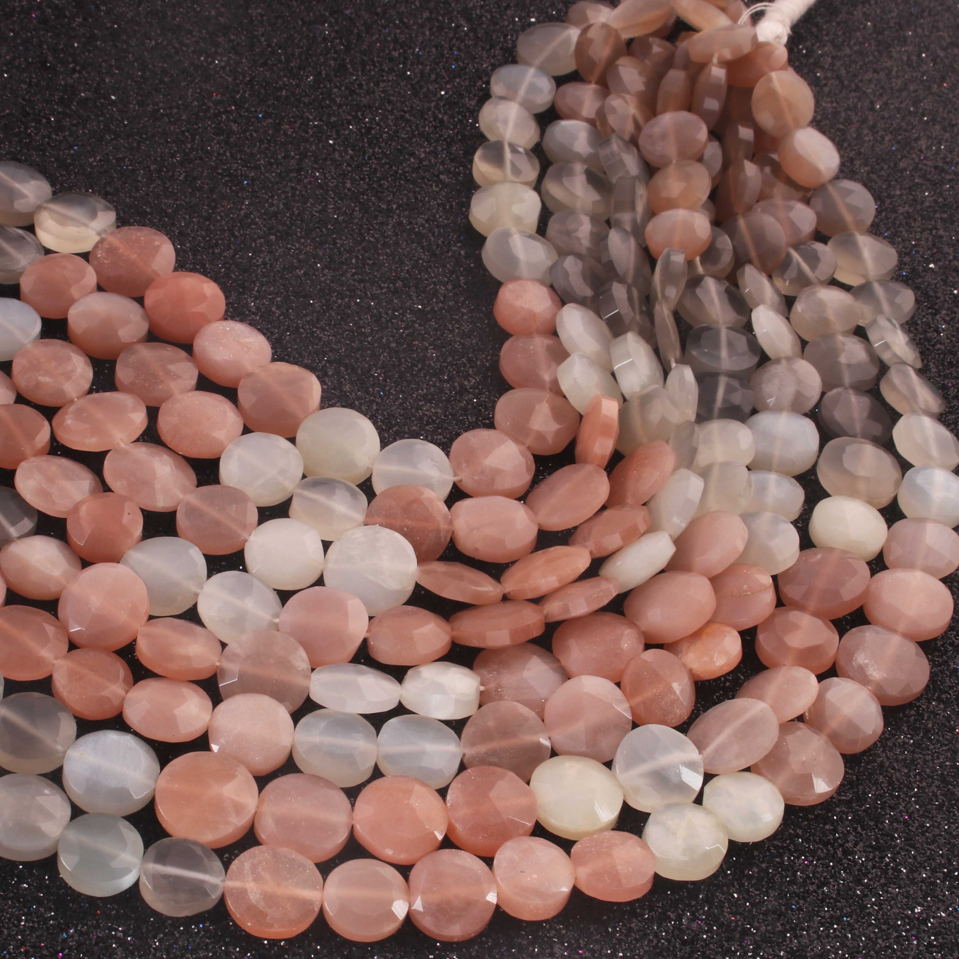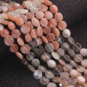 1 Strand Natural Multi Moonstone Faceted Coin Briolettes- Gemstone Faceted Beads -10mm-11mm- 12 Inches BR02815