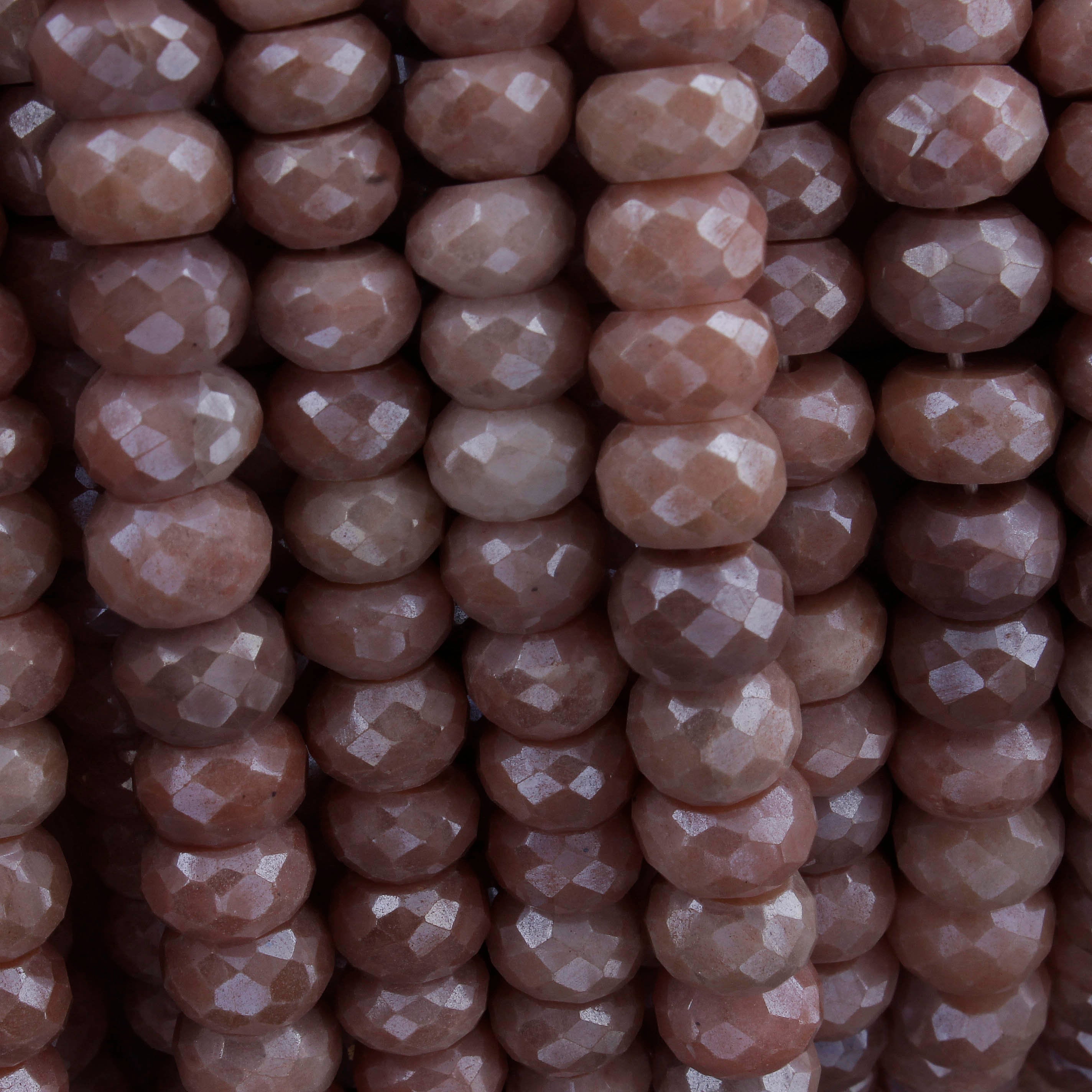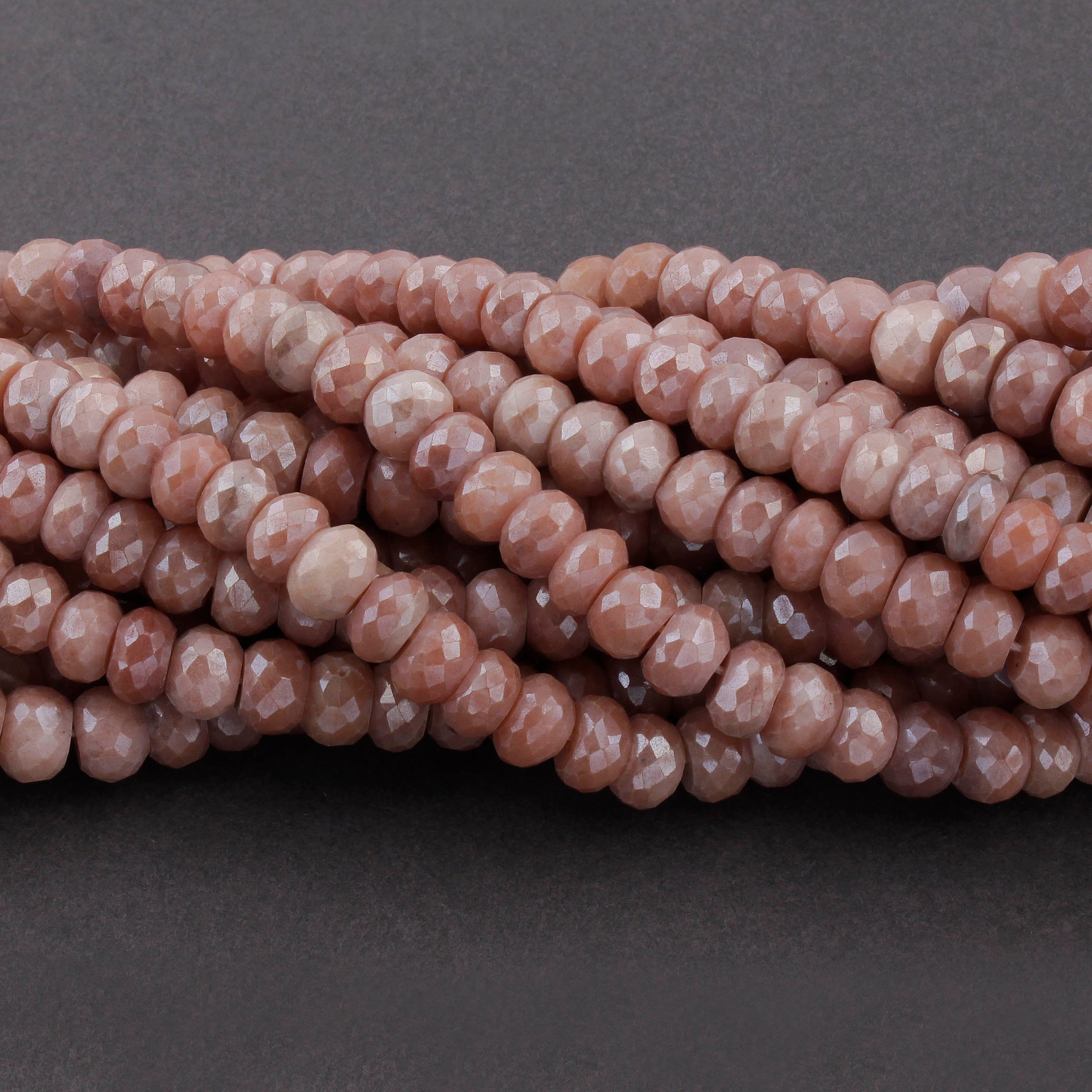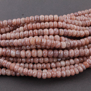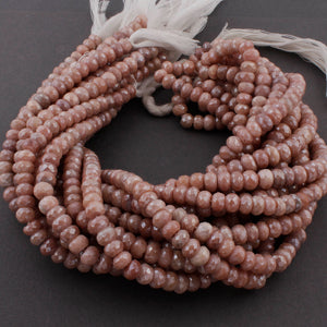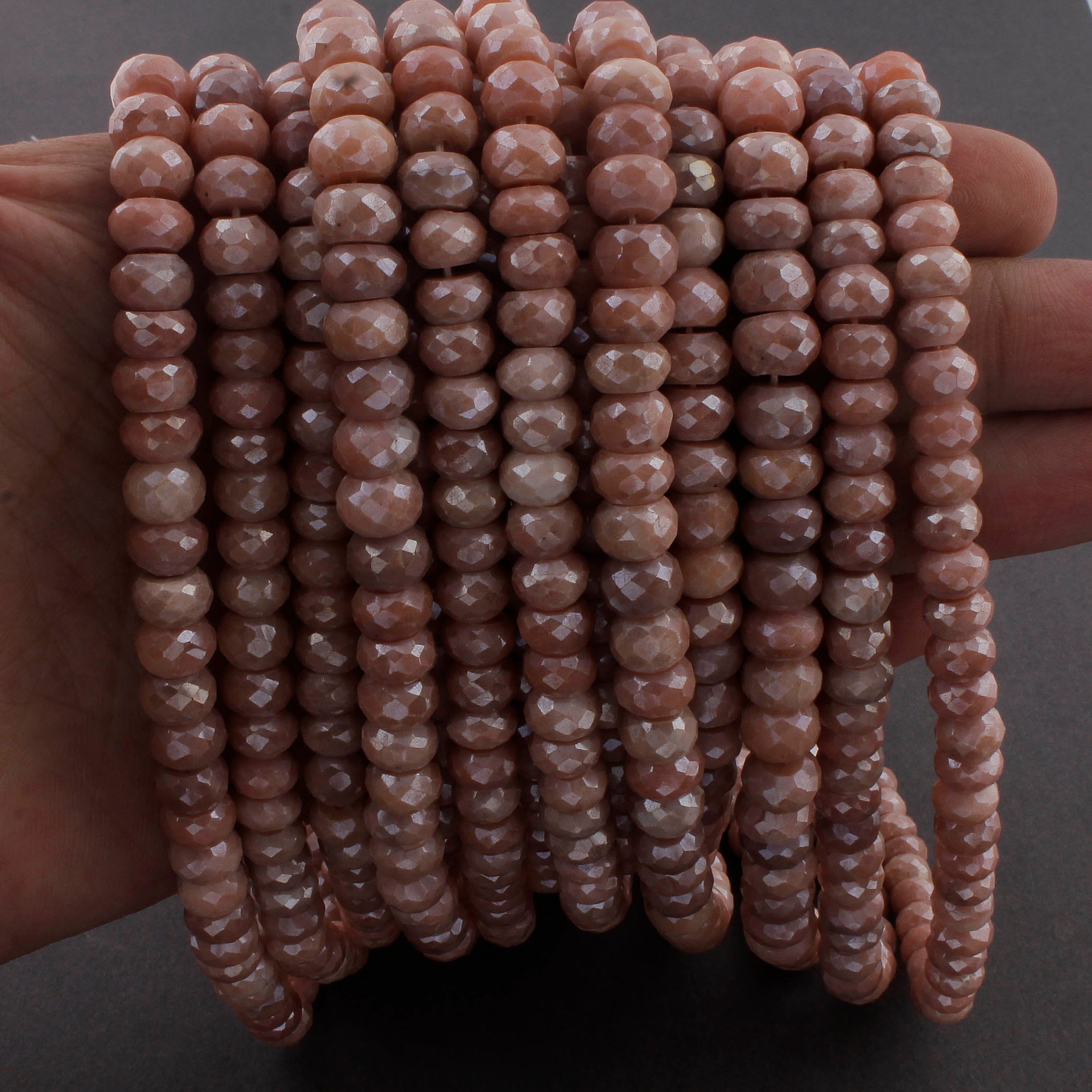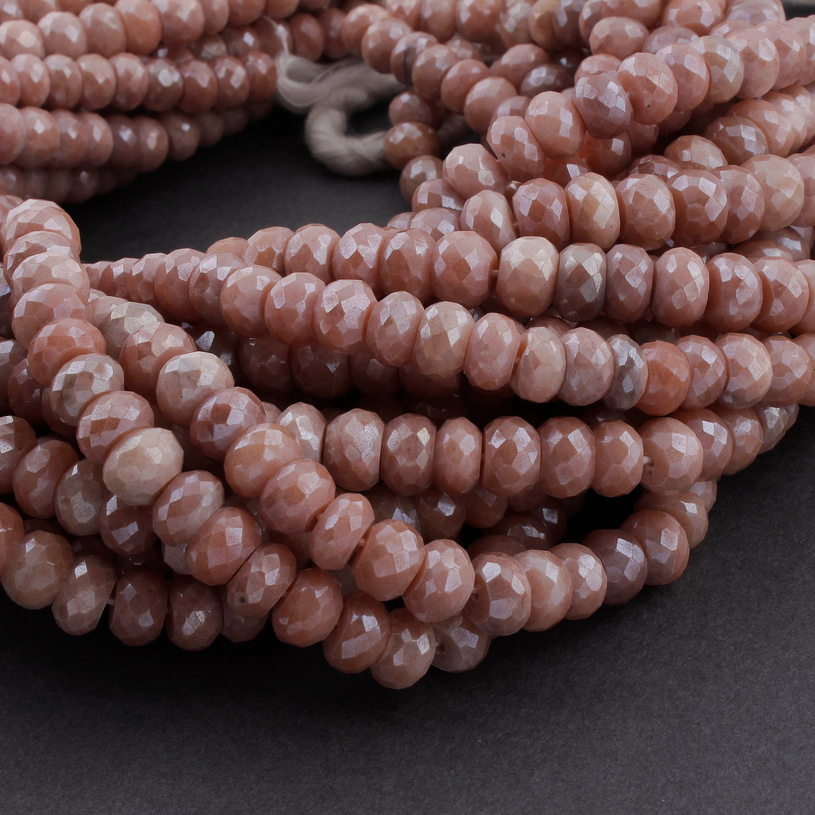 1 Strand Peach Moonstone Silver Coated Faceted Rondelles - Roundel Beads 7mm-8mm 13 Inches BR1106