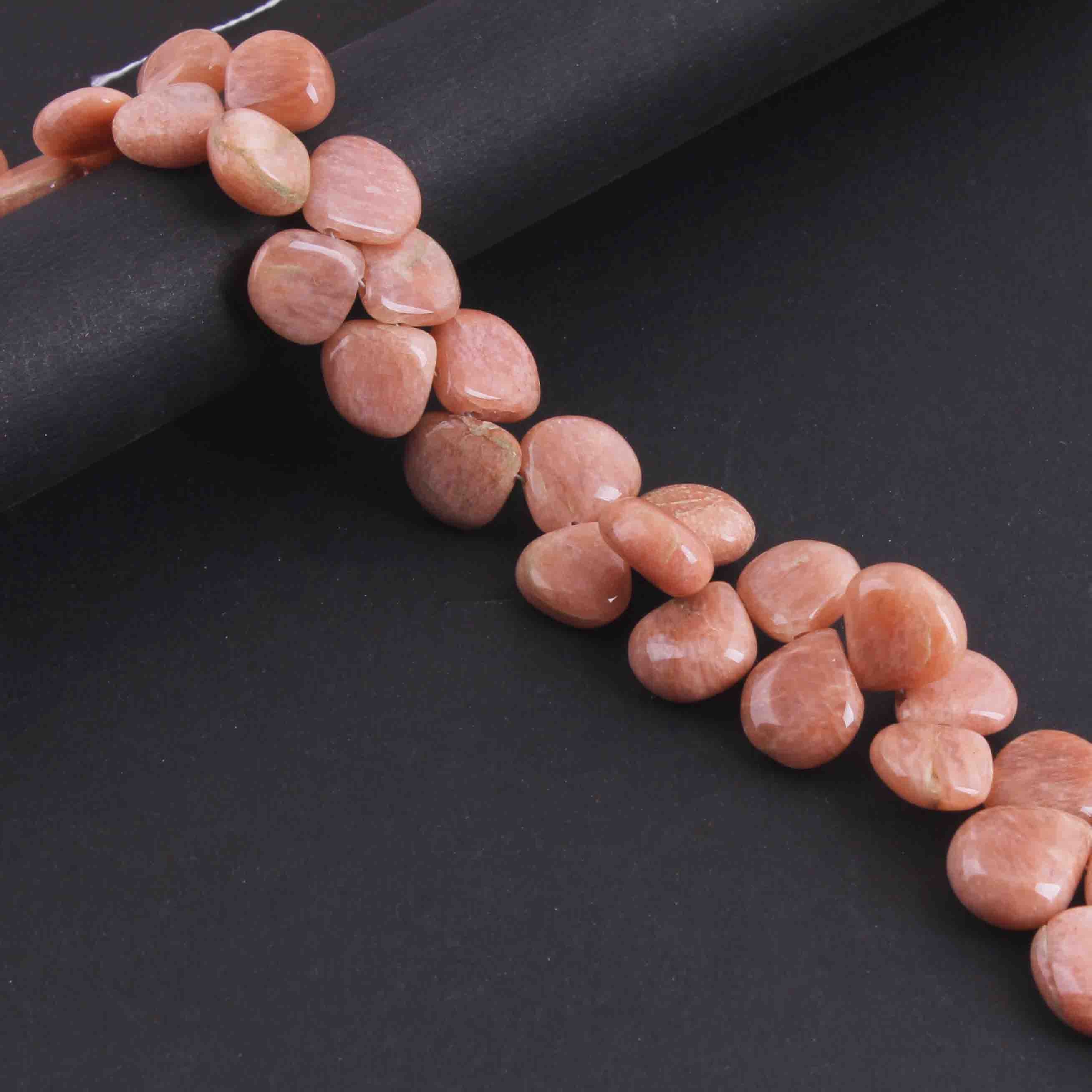 1 Strand Peach Moonstone Smooth Briolettes -Heart Shape Briolettes 11mmx10mm-15mmx13mm 7 Inches BR813