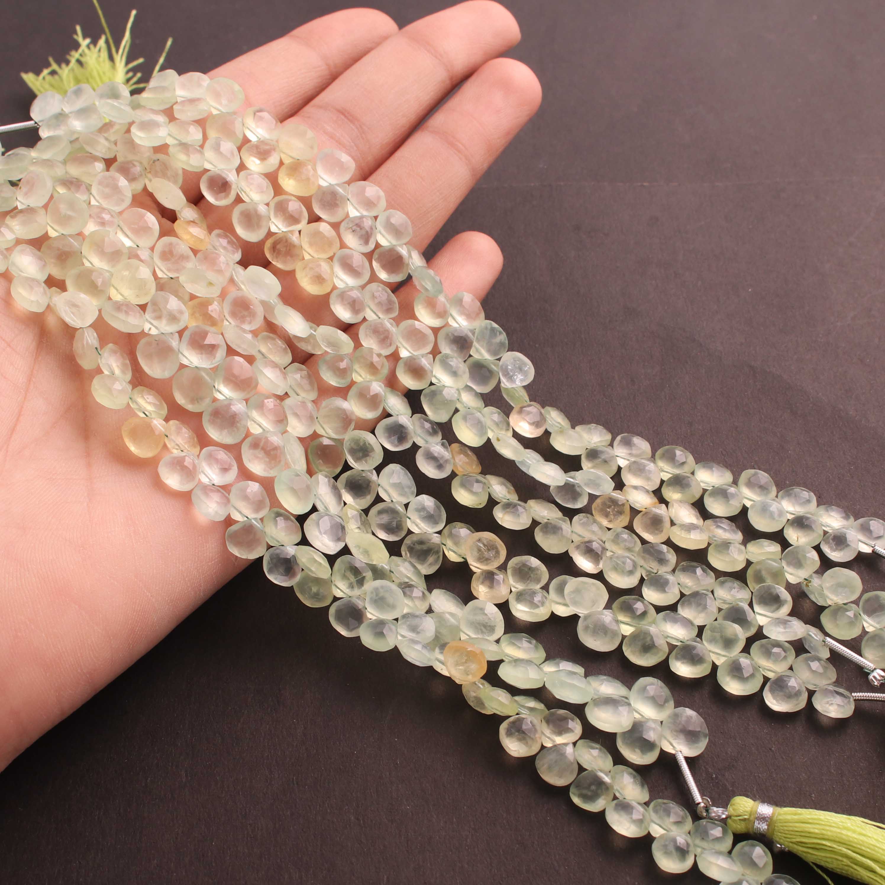 1 Strand Prehnite Faceted Briolettes - Heart Shape Briolettes 7mm-8mm-9 Inches BR02510