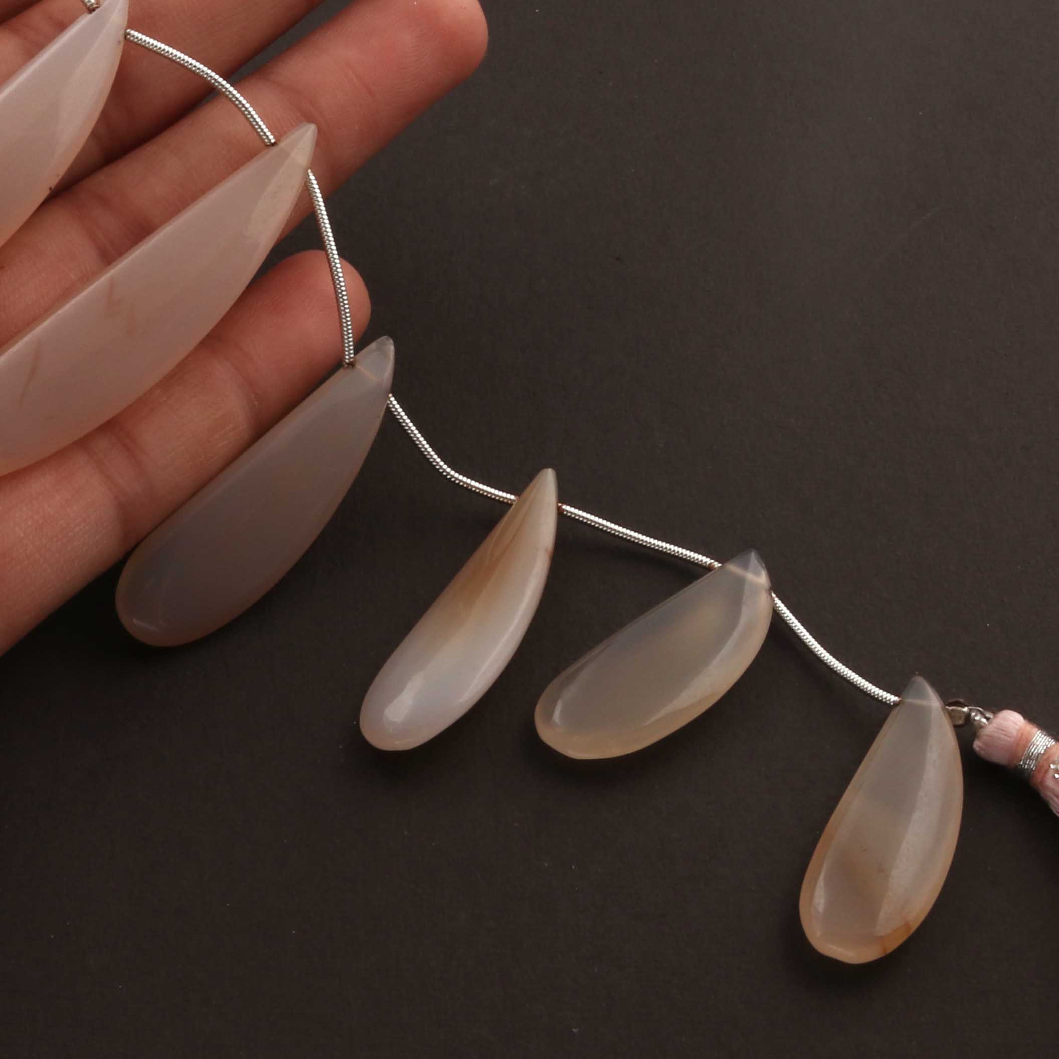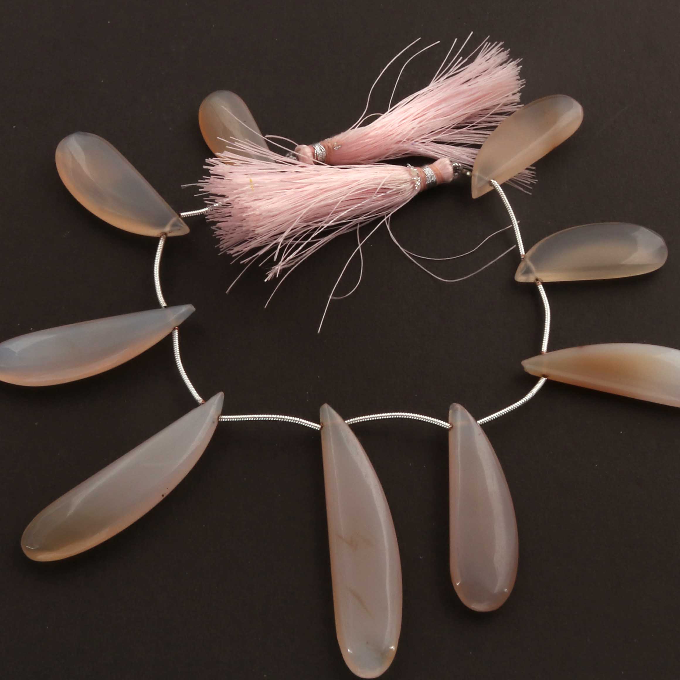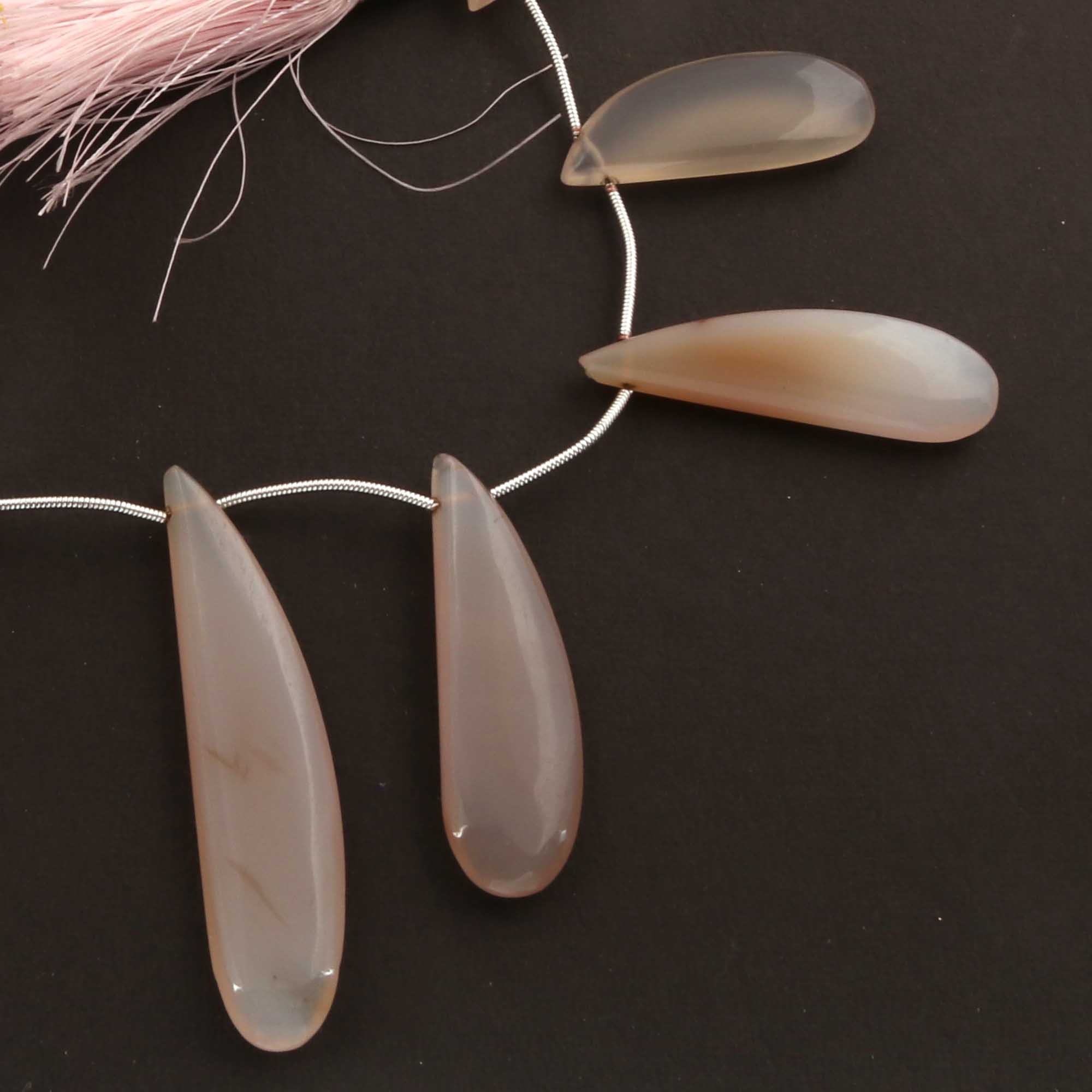 1 Strand Rose Pink Chalcedony Smooth Briolettes - Fancy Shape Briolettes - 29mmx11mm-52mmx12mm - 8 Inches BR1195