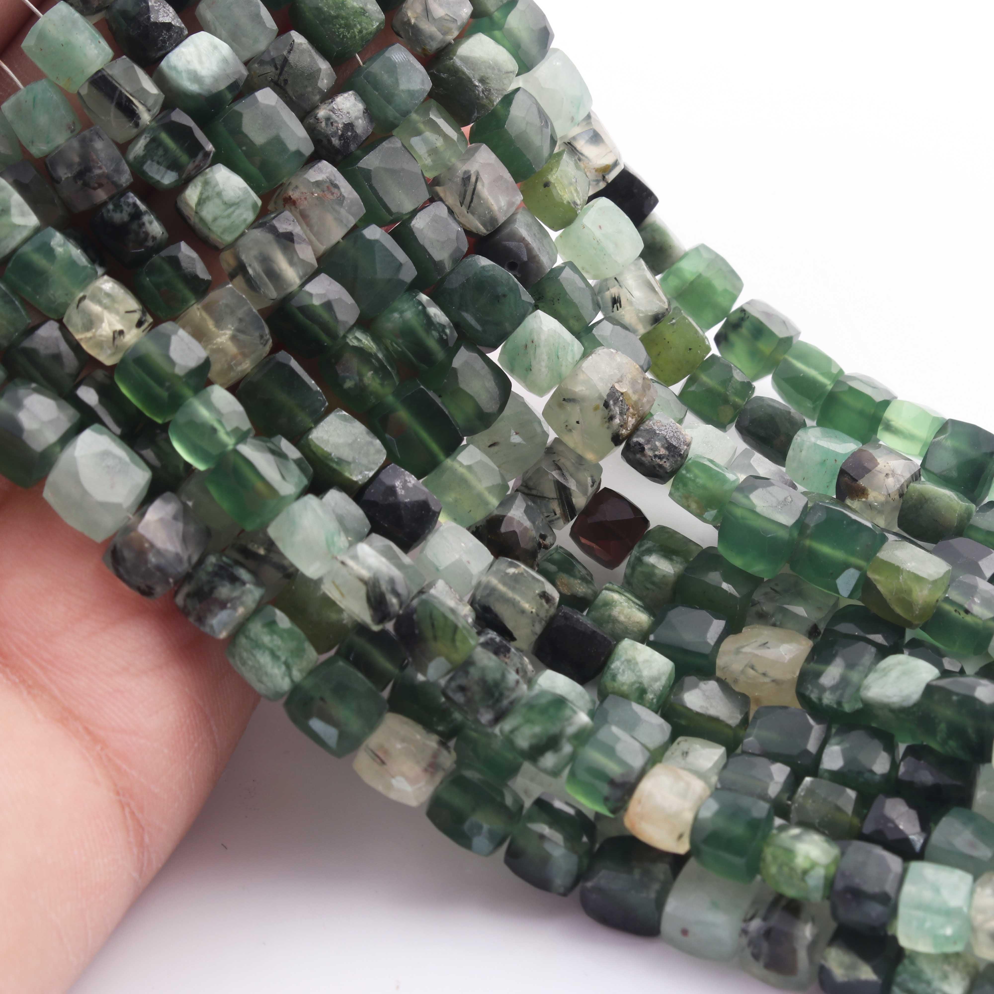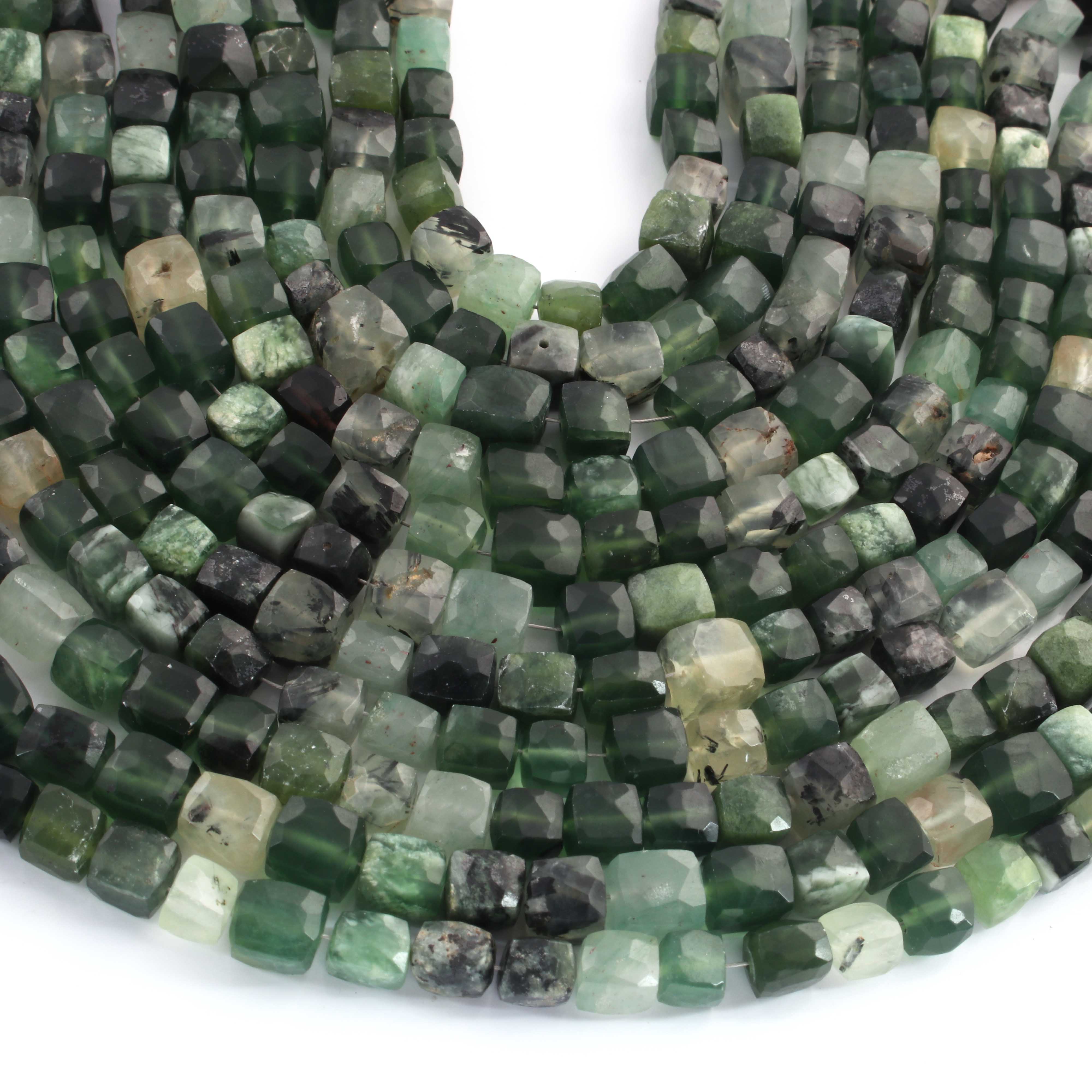 1 Strand Serpentine Faceted Cube Briolettes - Box Shape Beads - 5mmx6mm-7mmx8mm - 8.5 Inches BR02600