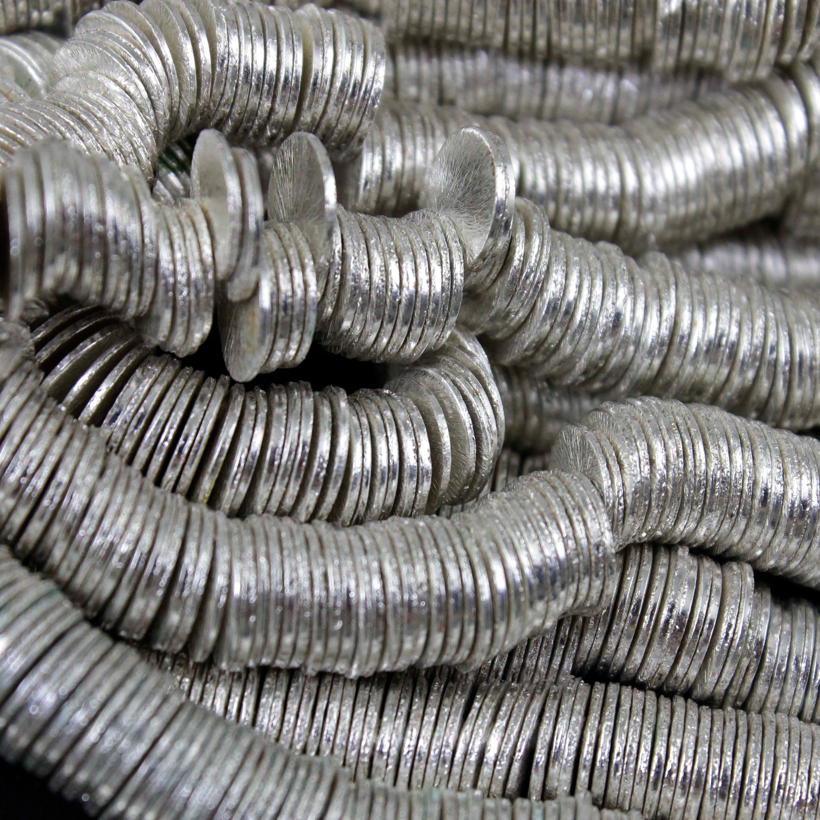 LISTING IS FOR 1 Strand Silver Plated Designer Copper Casting Plain Disc Beads - Jewelry - 8mm 7.5 Inches GPC961 7.5 Inches Strand and Each strand holds 200+ Beads This Disc Bead Silver plated on copper . Each Beads measures 8mm Approx Metal: Copper Plating: Silver Plated Size: 8mm Approx Shape: Designer Disc Beads Great Copper Casting Finish Disc Beads to add that special touch to your beautiful designs. Exclusive high quality Beads made in 4 Generation old Production House where trust is a tradition Bulk wholesale pricing is available convo me for information on this listing or any others in my shop. We are continuously adding new products in our store. So keep coming back to see more great deals on gems in our mart Handmade in India. Designed by our designers in USA https://www.etsy.com/shop/Tucsonbeads/items?search_query=gold+copper+beads