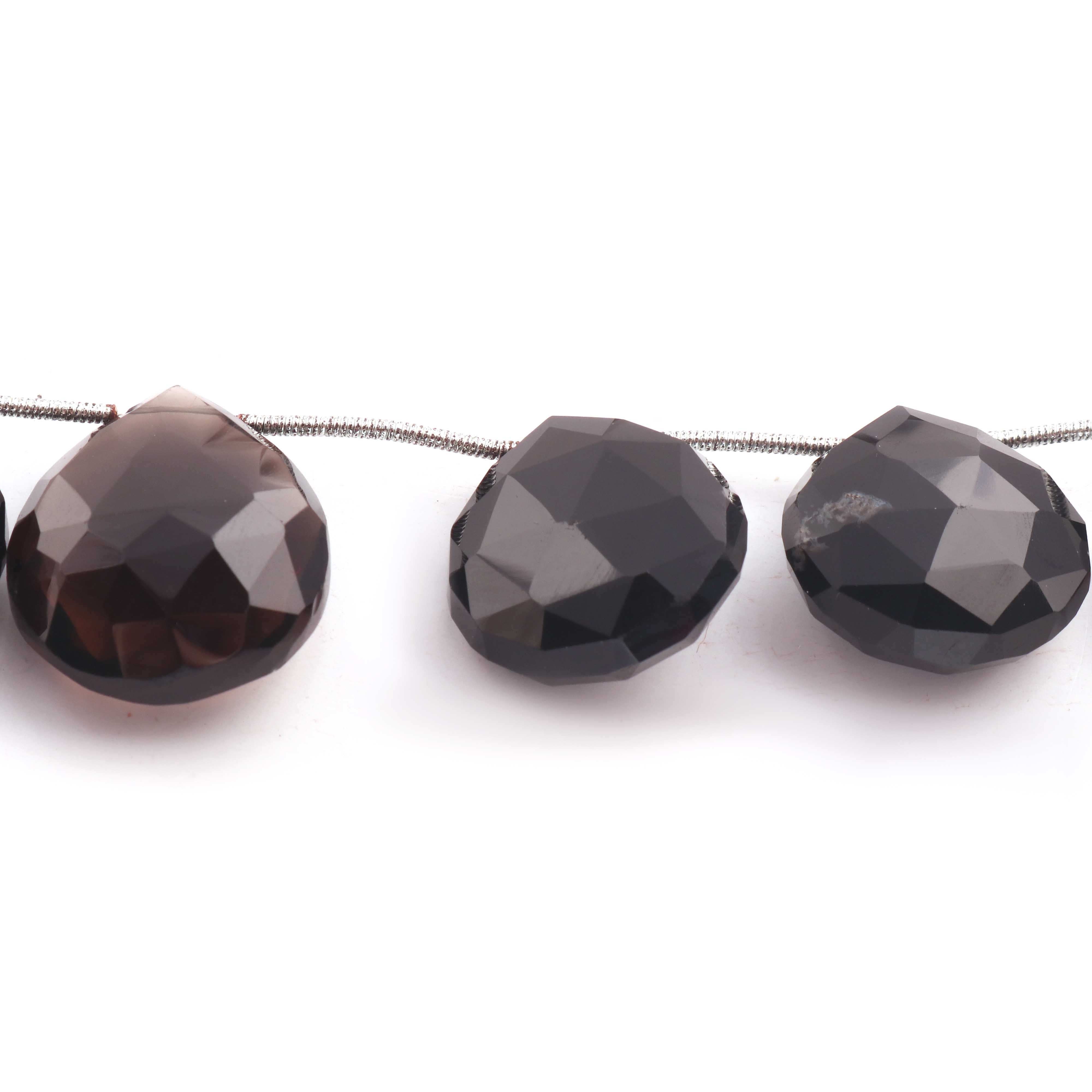 1 Strand Smoky Quartz Faceted Heart Shape Baeds Briolettes - Smoky Briolettes 19mmX18mm-22mmx18mm- 5 Inches BR221