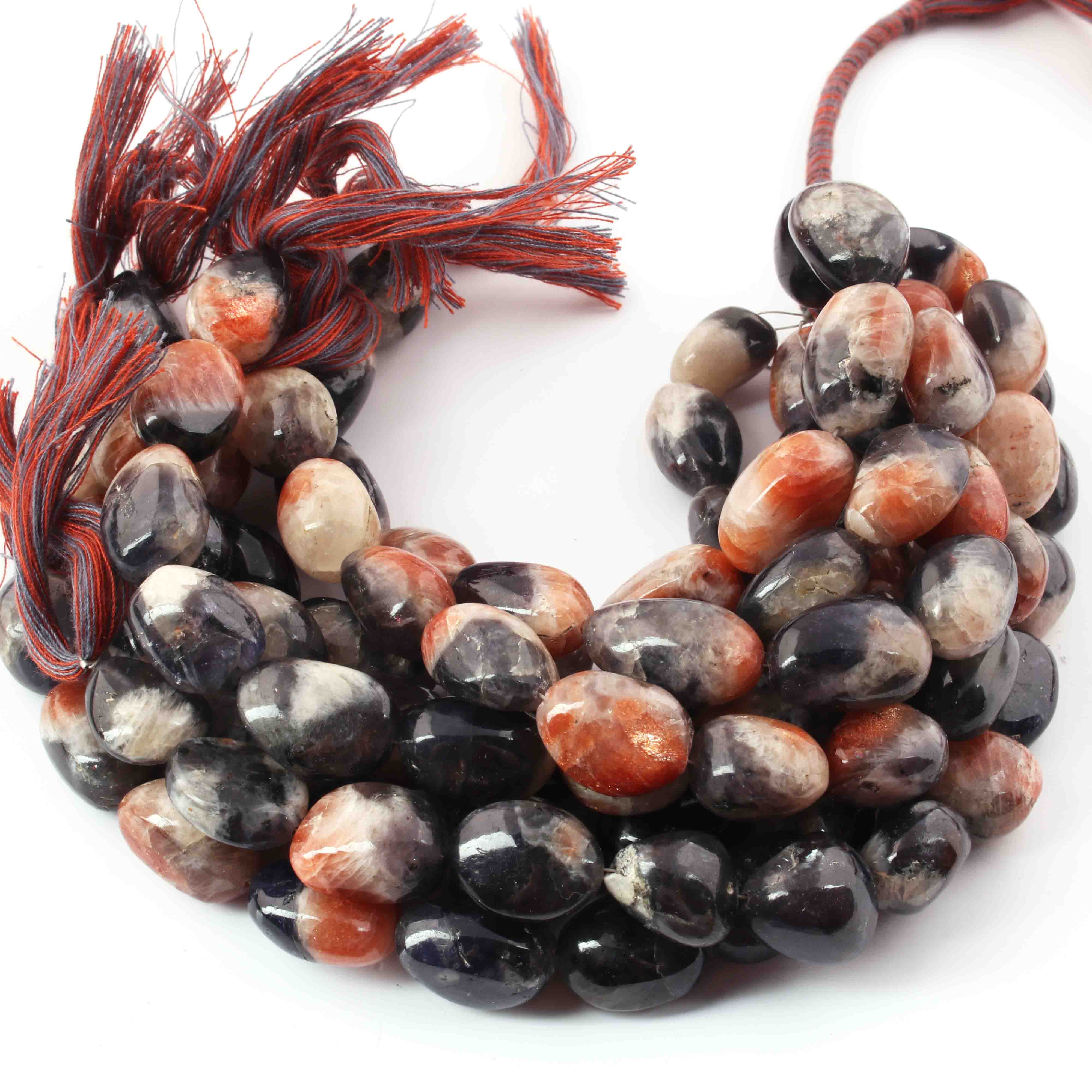 1 Strand Sunstone $ Iolite Smooth Briolettes -Tumble Shape Briolettes -16mmx14mm-20mmx14mm- 7 Inches BR01131