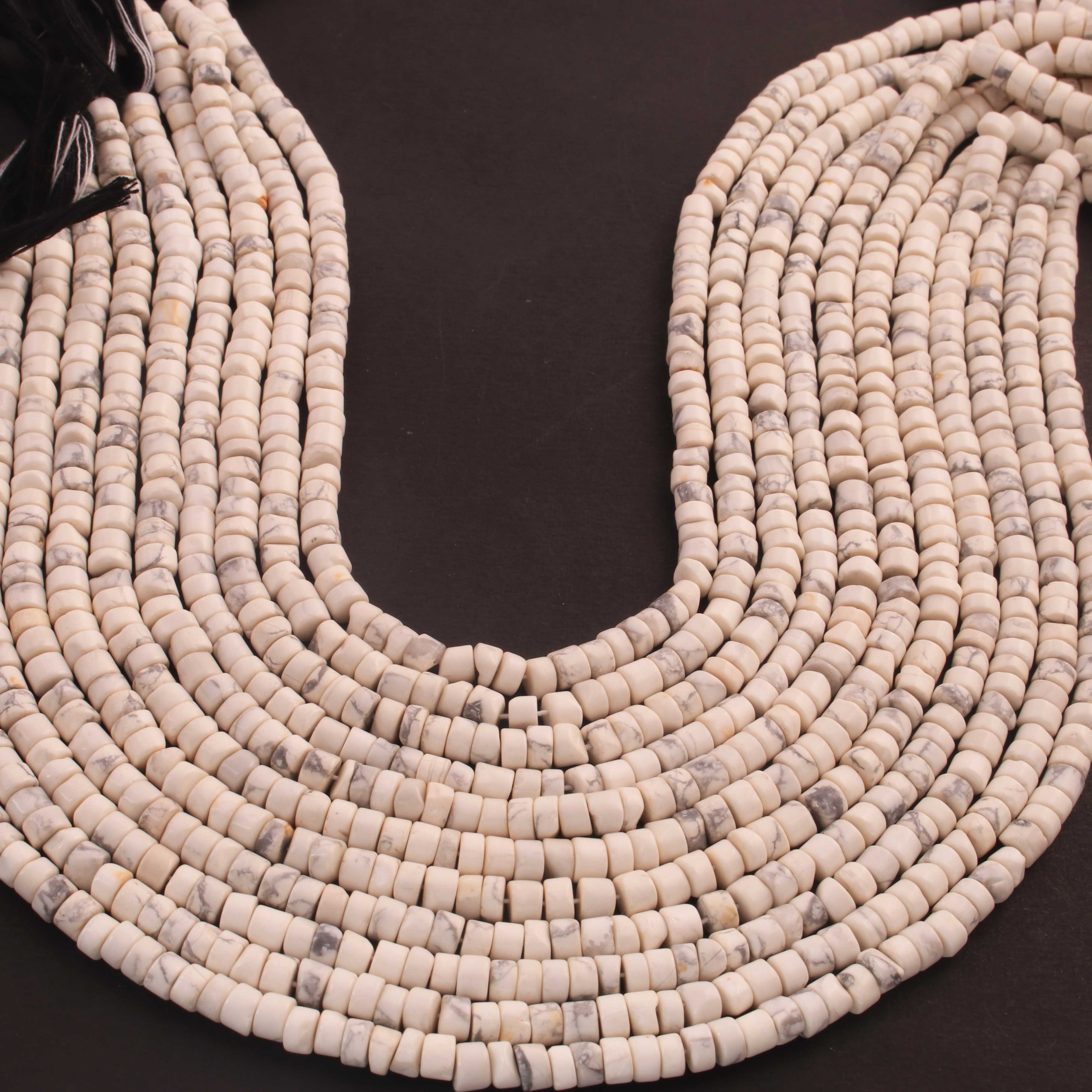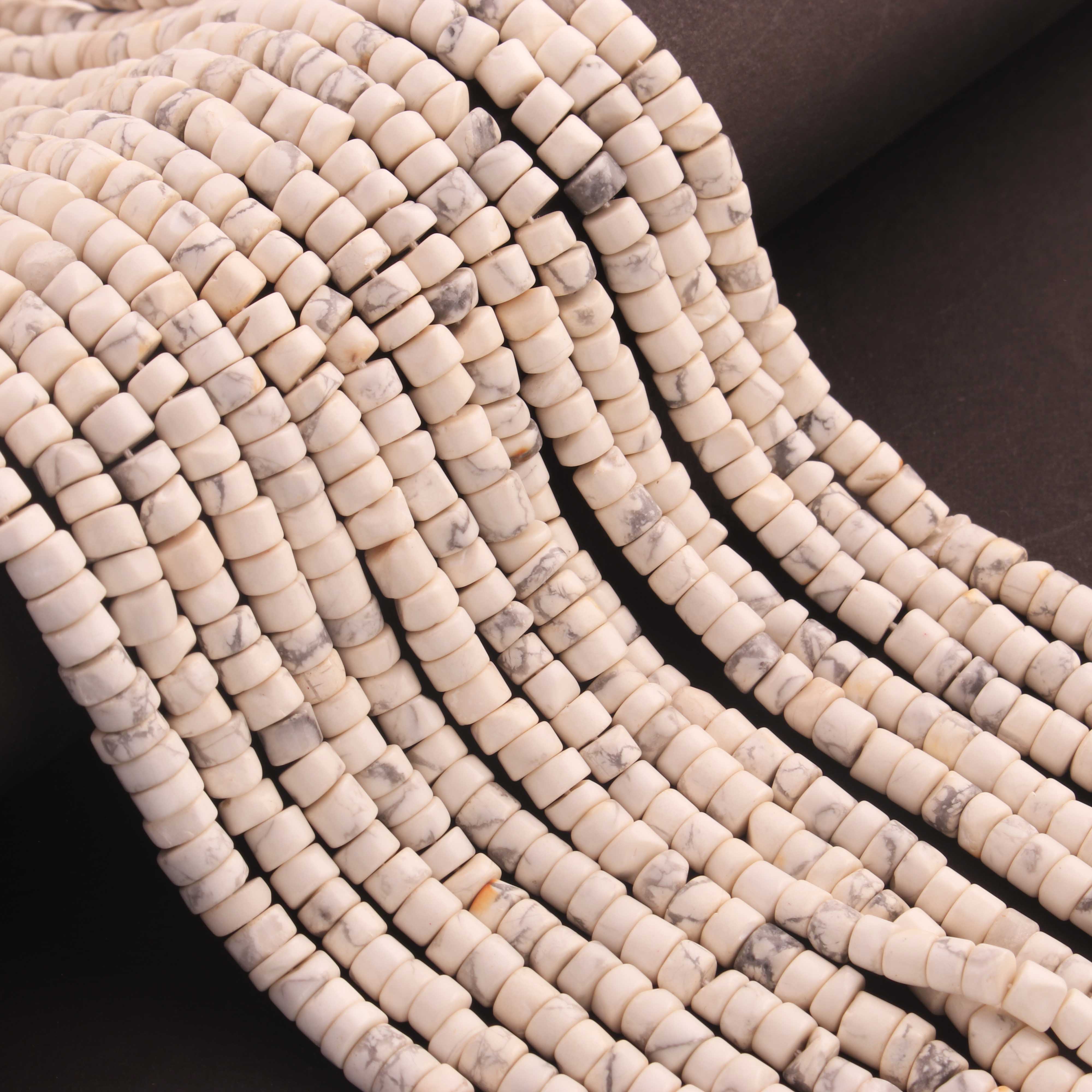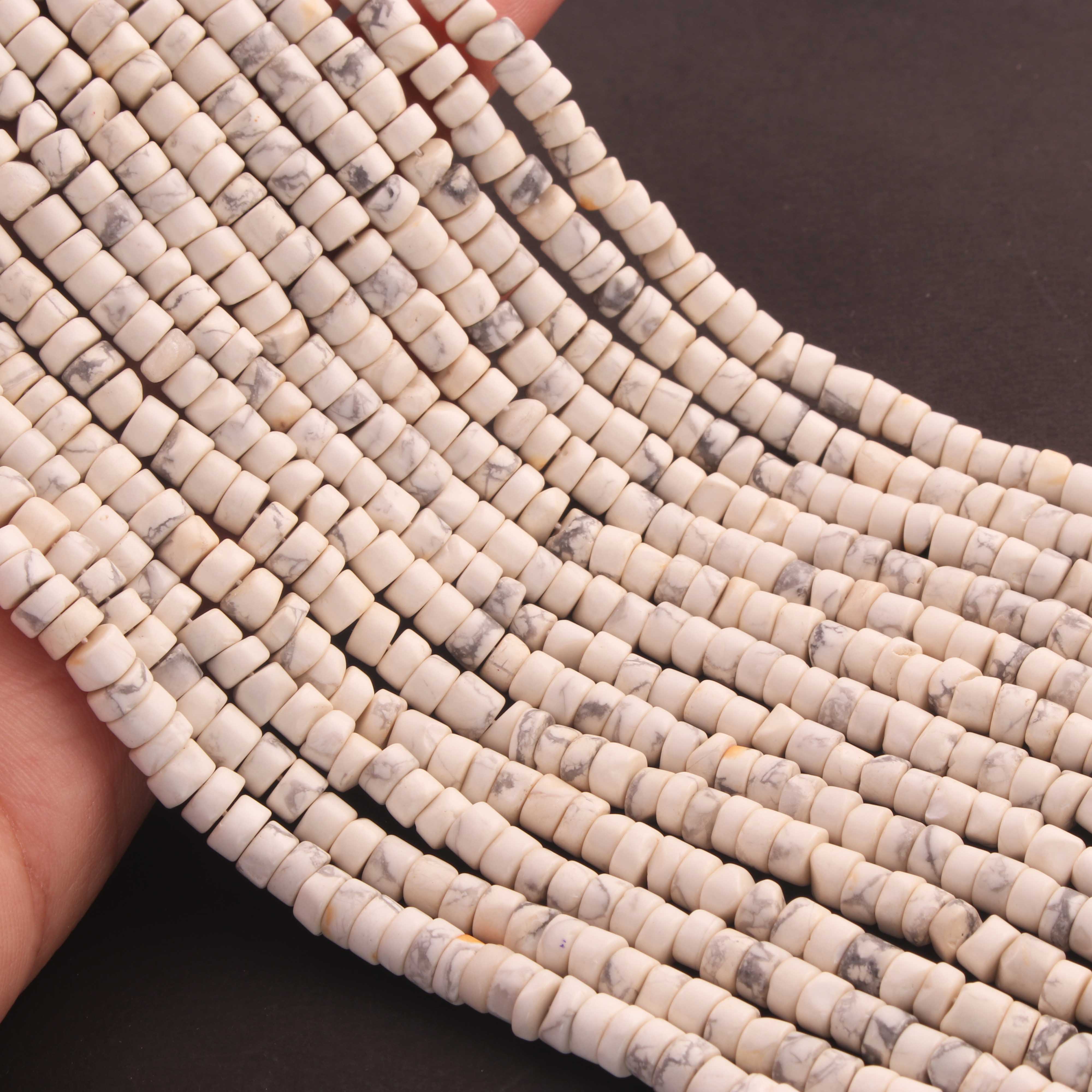 1 Strand White Howlite Smooth Heishi Wheel Briolettes - Gemstone Briolettes -4mm-5mm - 12.5 Inches BR03110