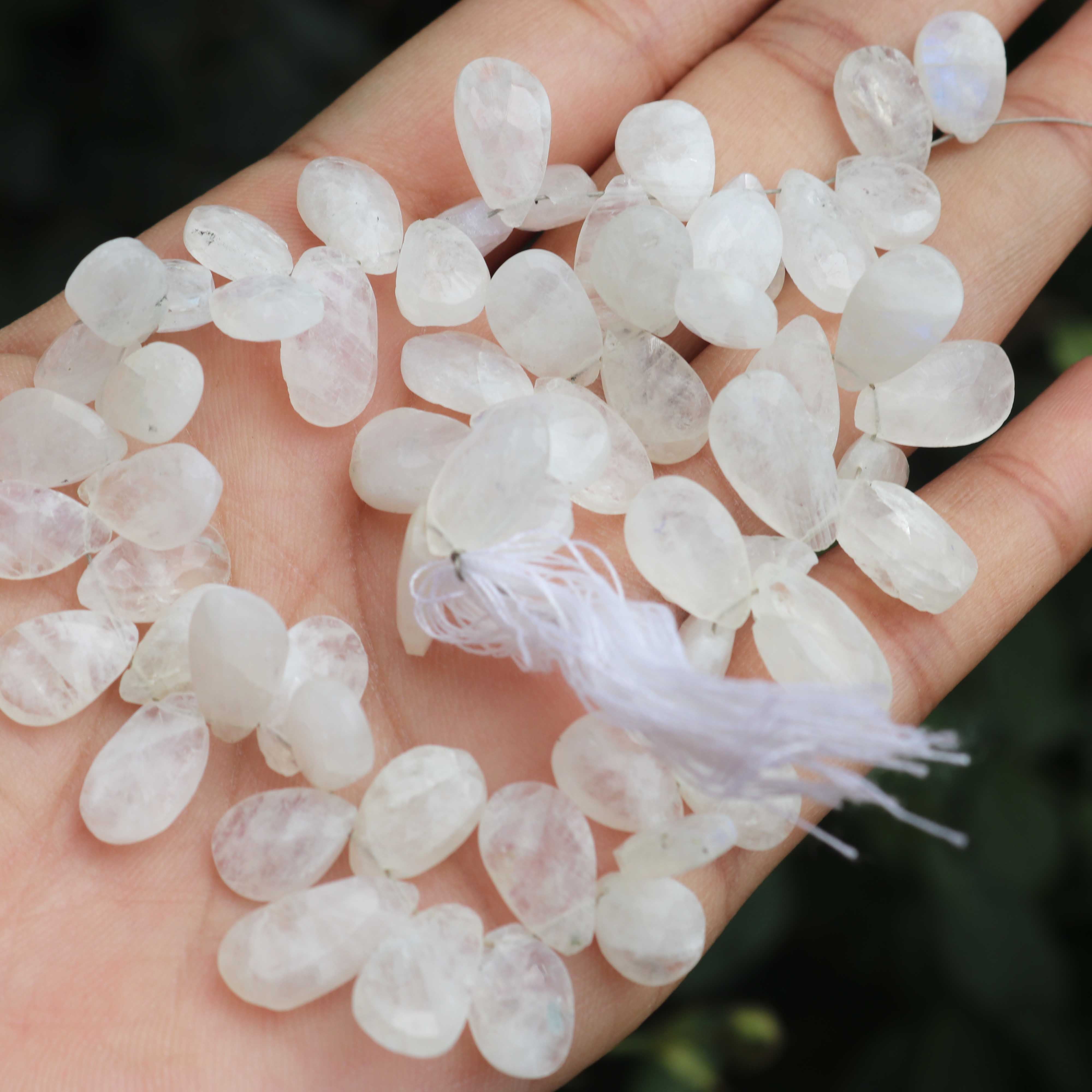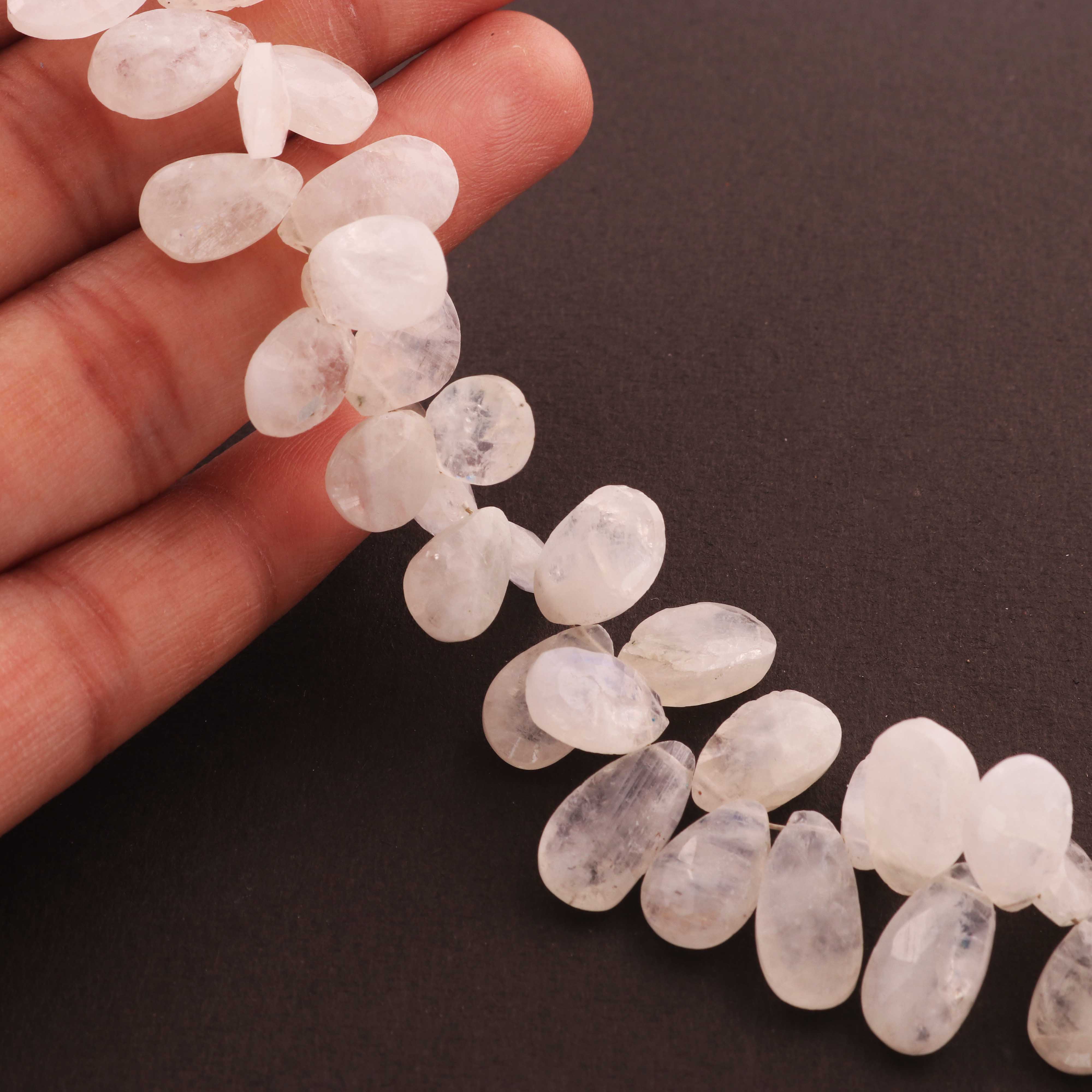 1 Strand White Rainbow Moonstone Faceted Briolettes - Pear Shape Briolettes 10mmx7mm -15mmx8mm-10 Inches BR606