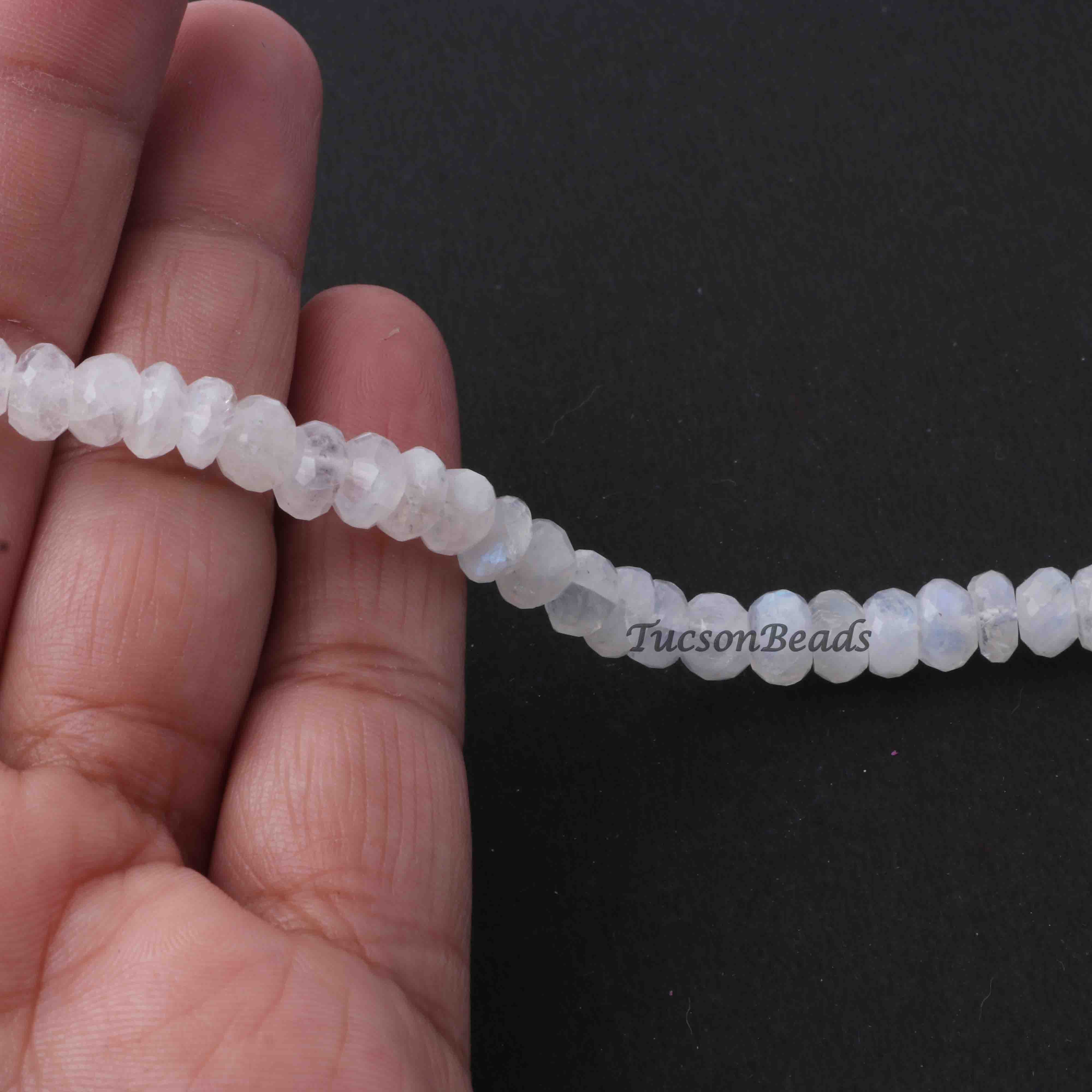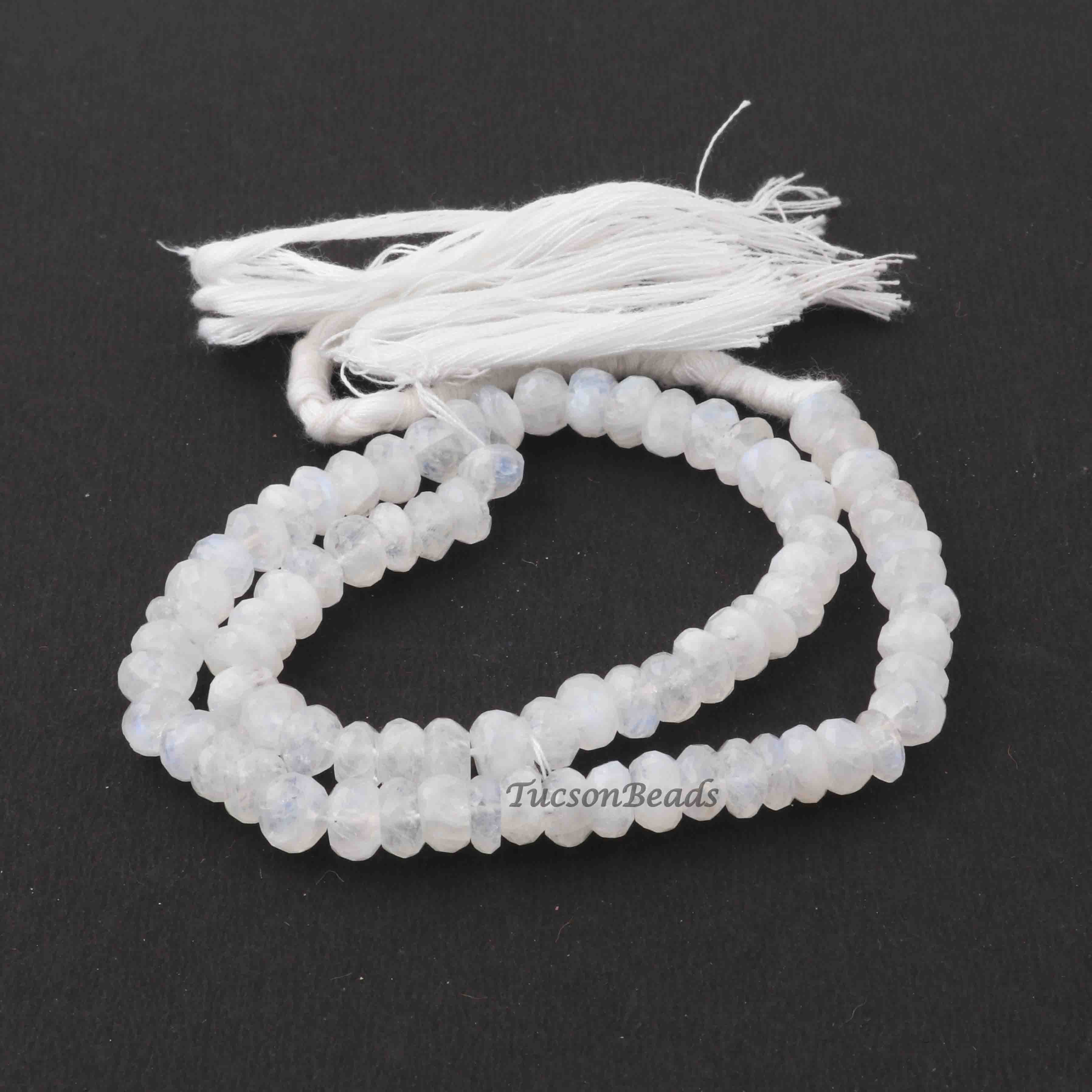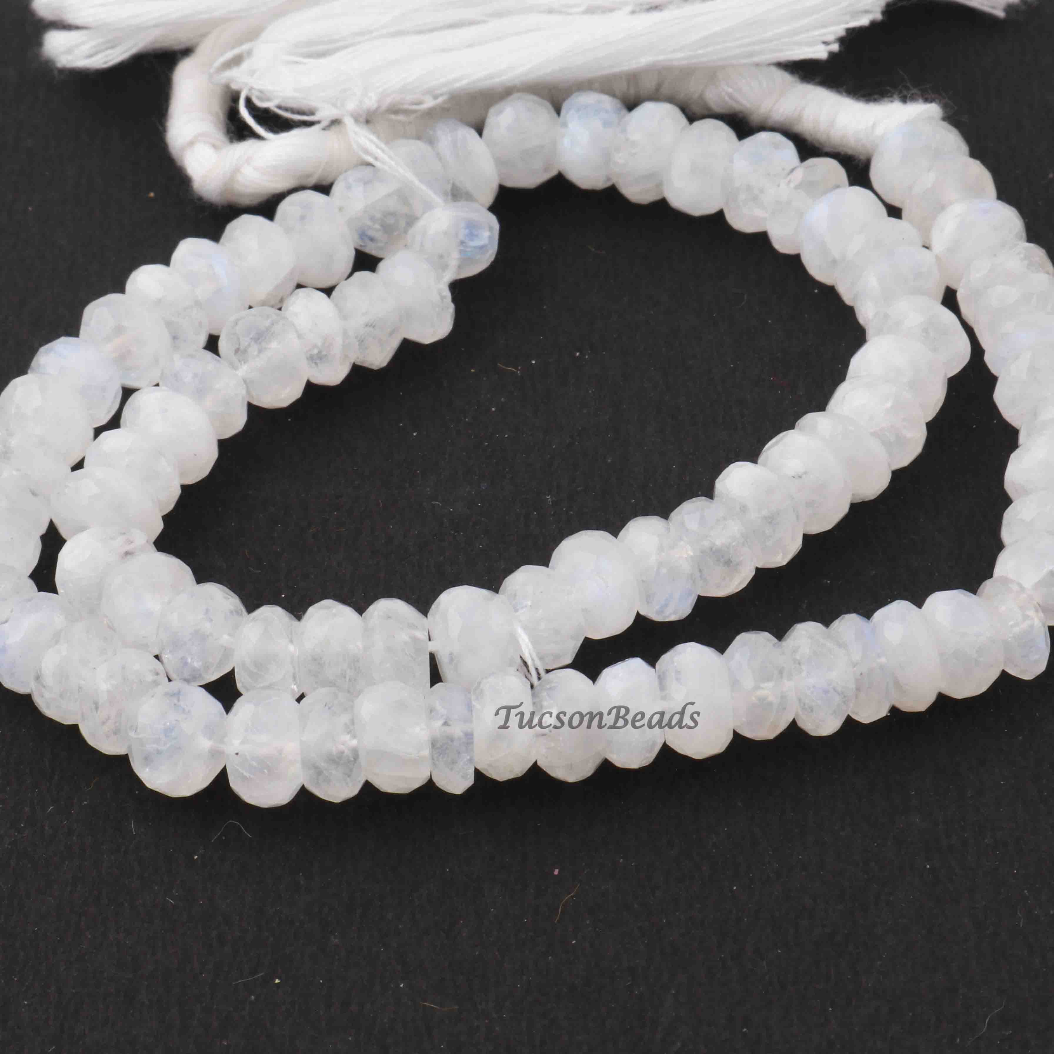 1 Strand White Rainbow Moonstone Faceted Rondelles Beads-Round Beads 6mm-8mm 12 Inches BR2815