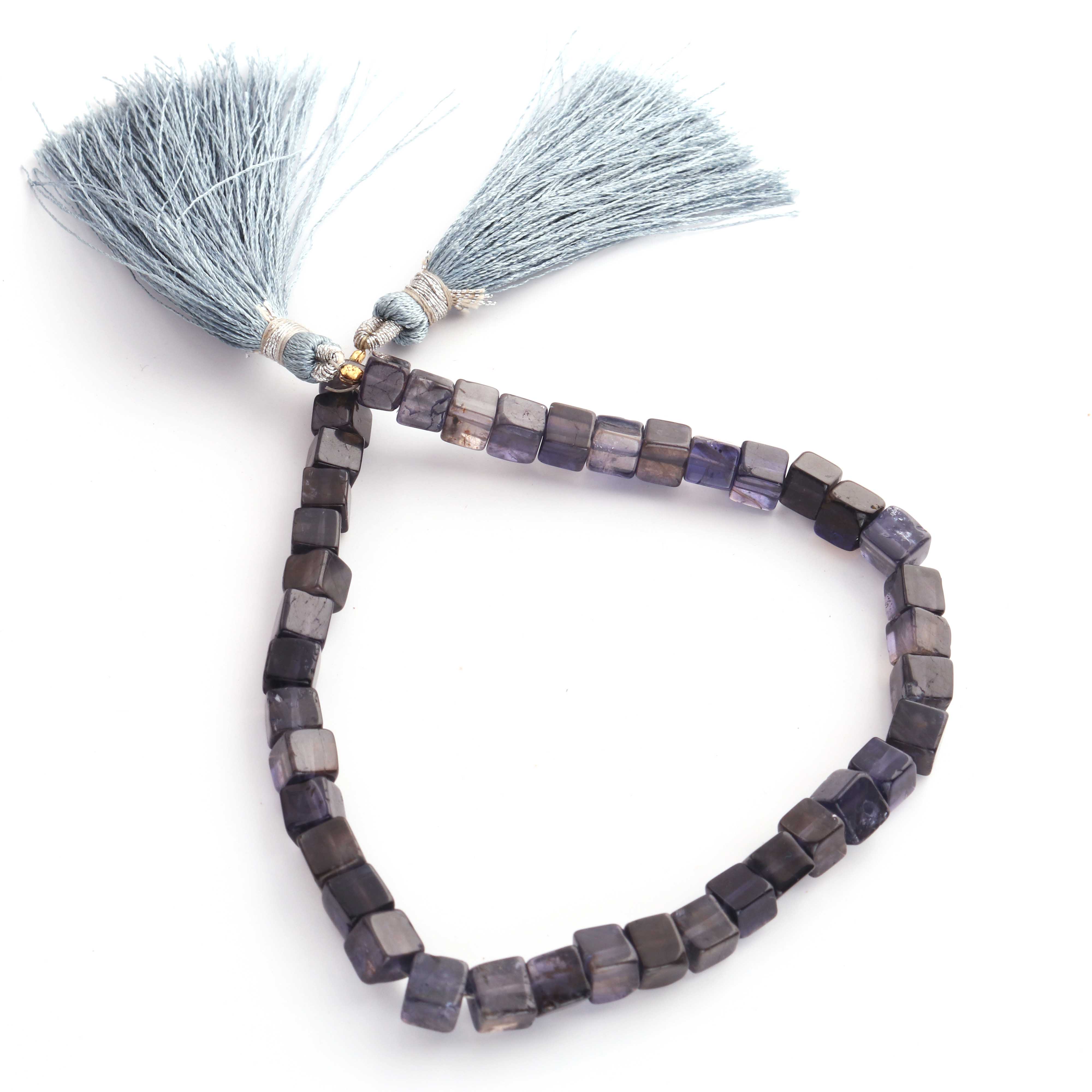 1 Strands Iolite Smooth Cube Briolettes - Iolite Plain Box Shape Beads 4mmx6mm-6mmx7mm 8 Inches BR1641