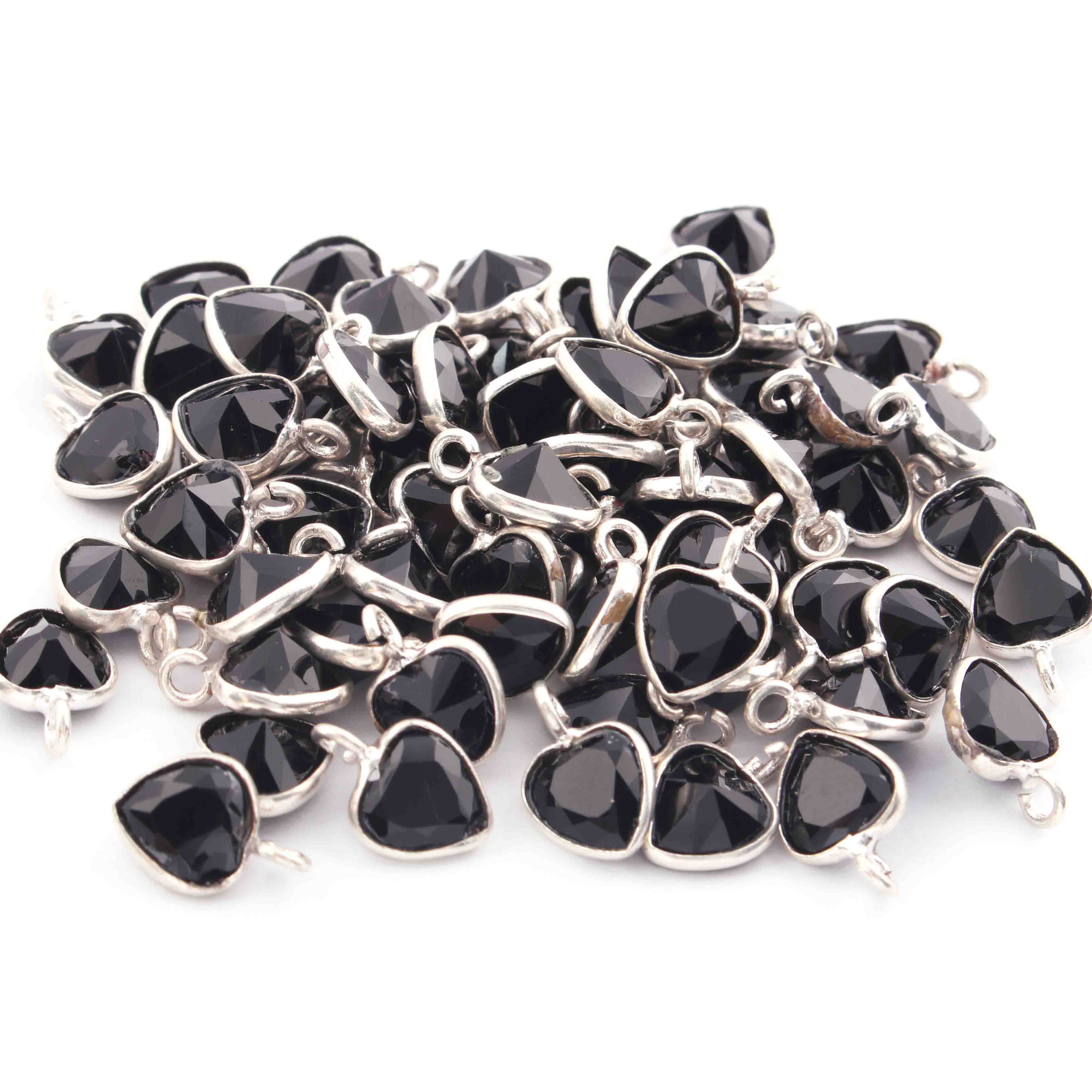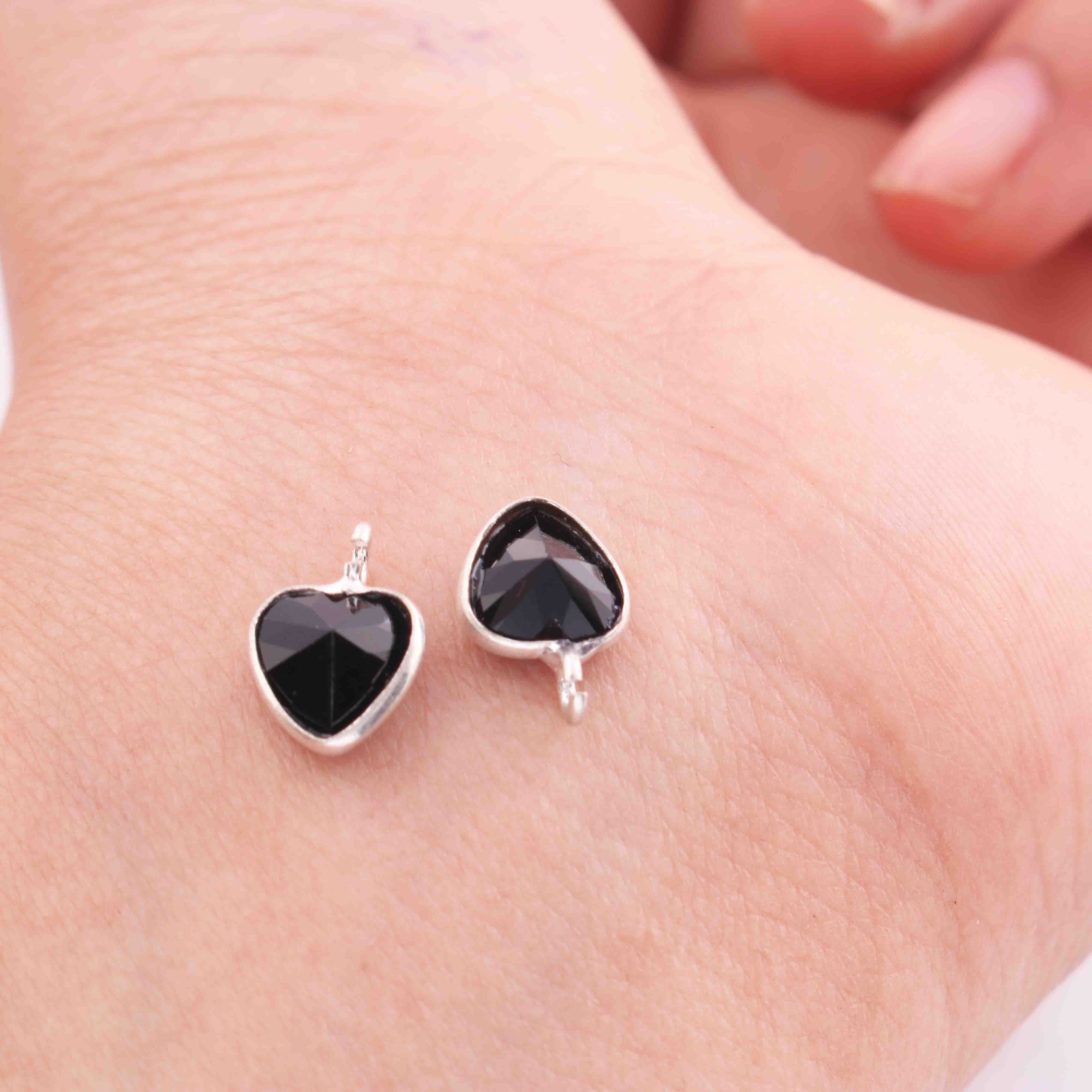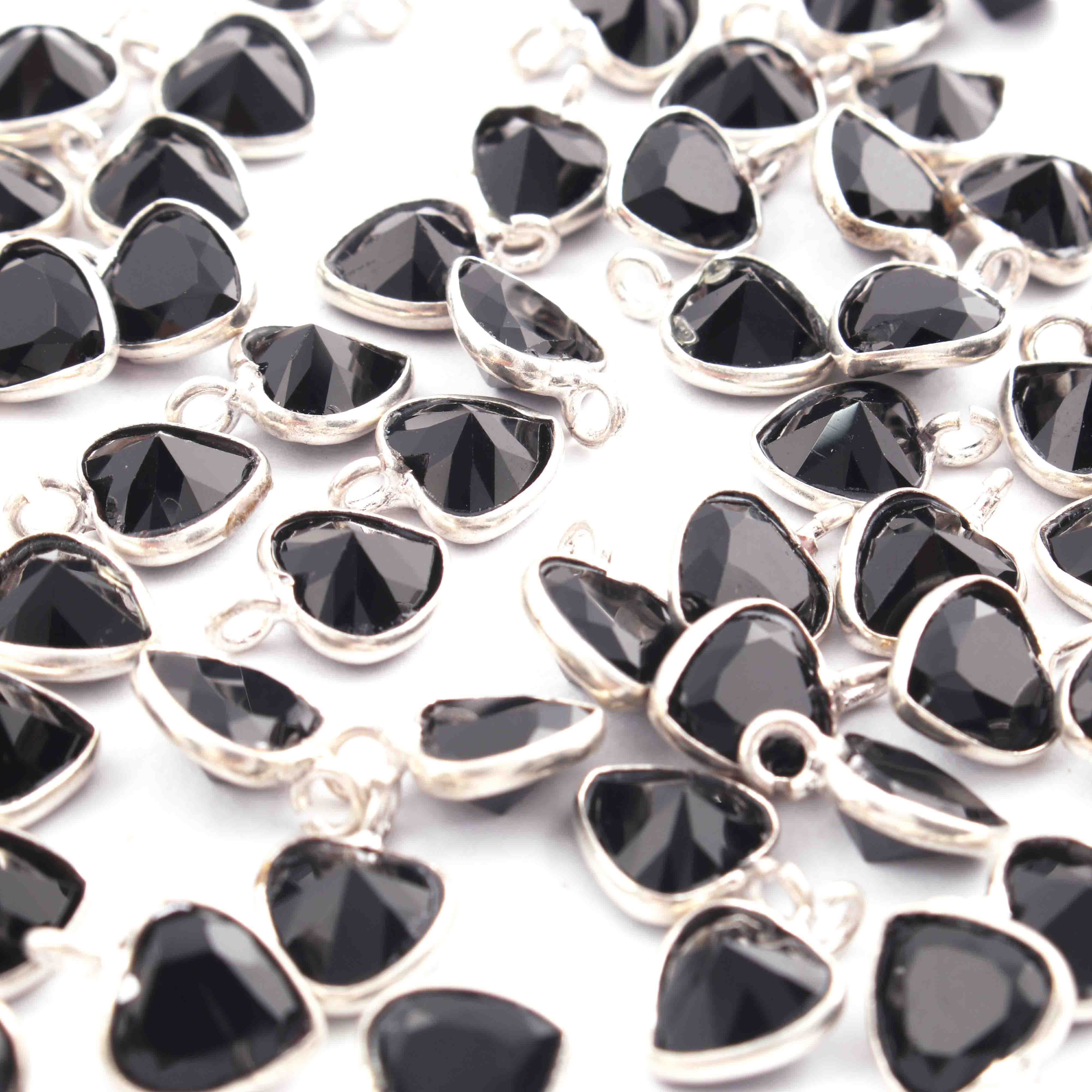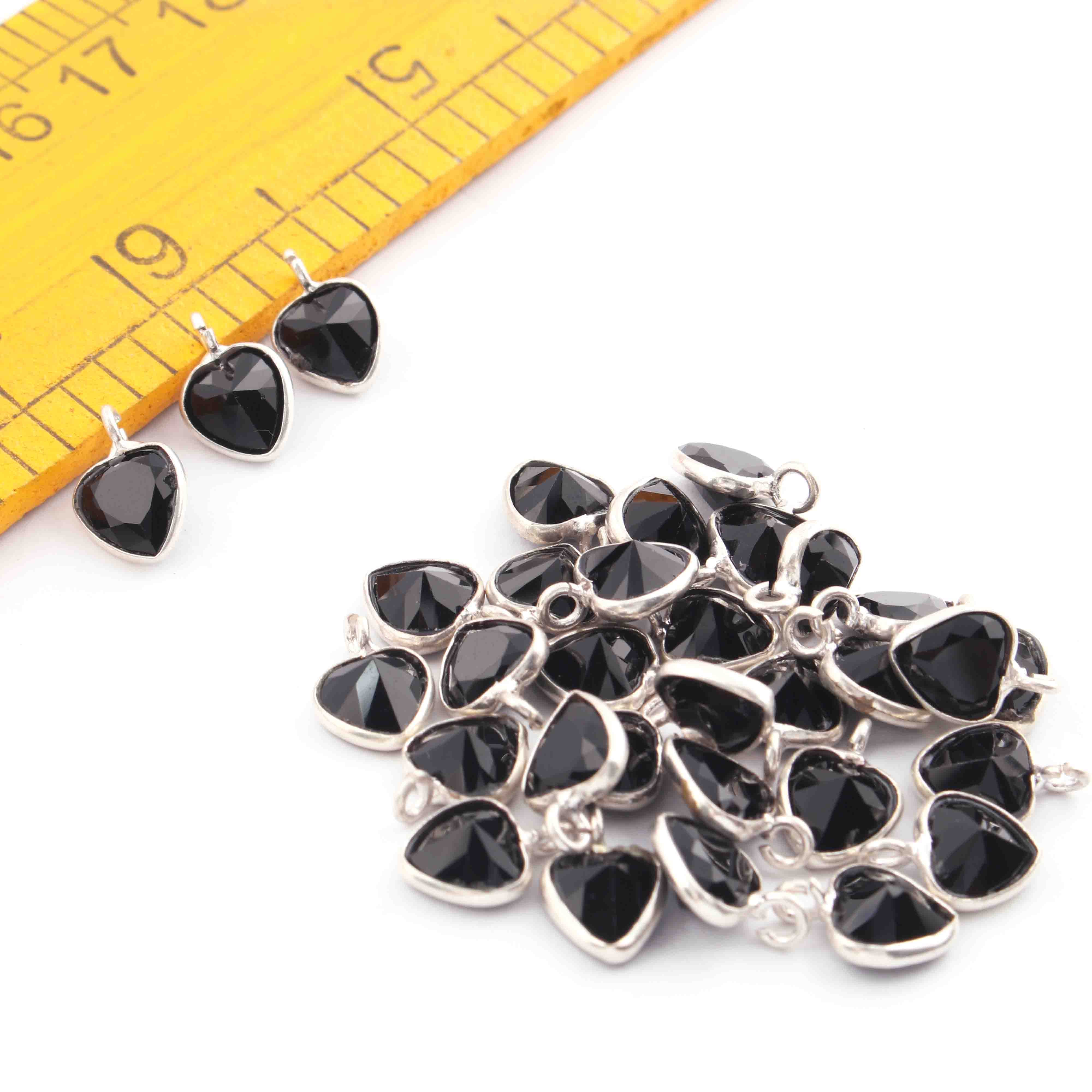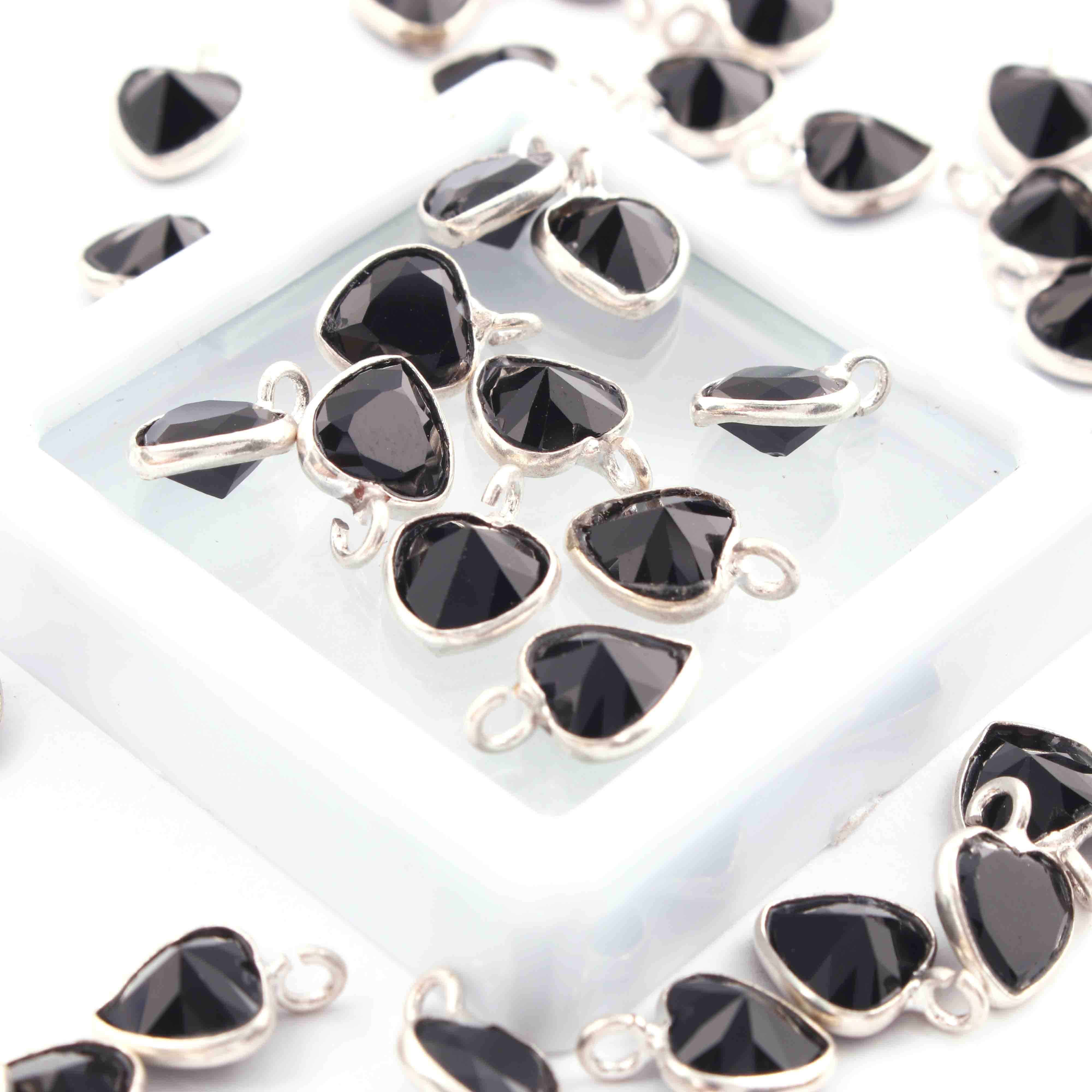 10 Pcs Black Onyx 925 Silver Plated - Heart Shape Faceted Pendant -11mmx7mm PC892