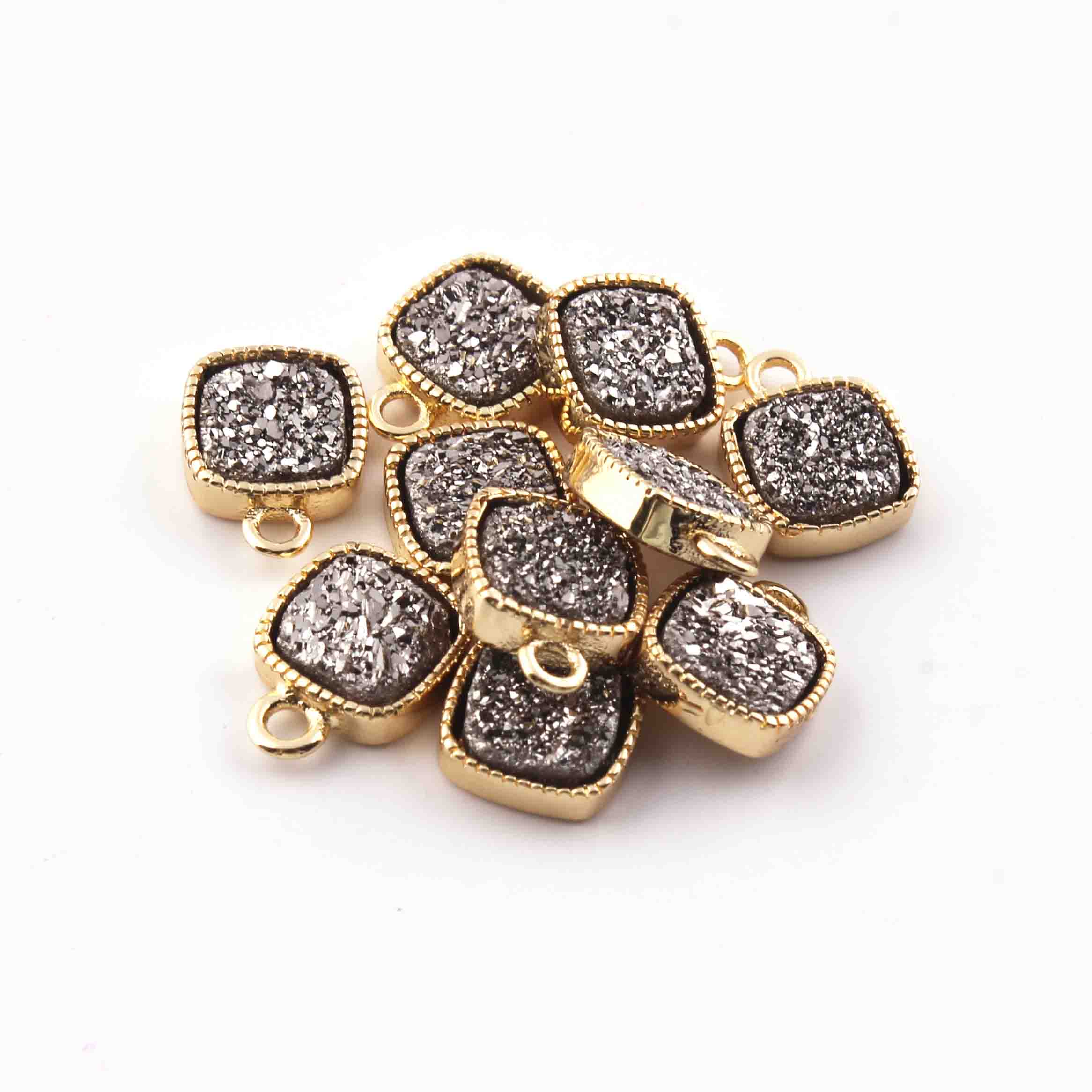 10 Pcs Mystic Druzy Square Drop Pendant, 24k Gold Plated, Titanium Pendant, Bezel Pendant 9mmX7mm PC1032