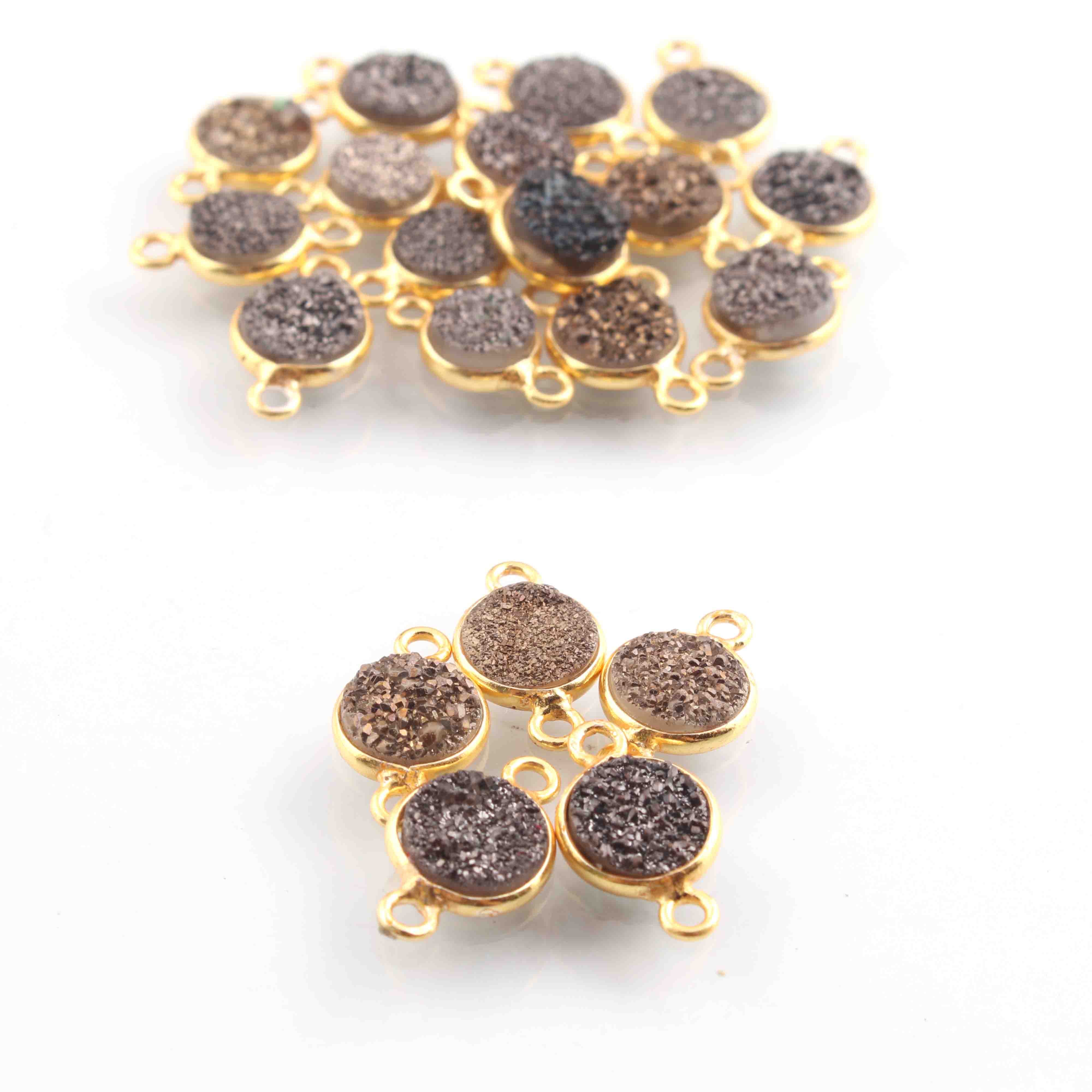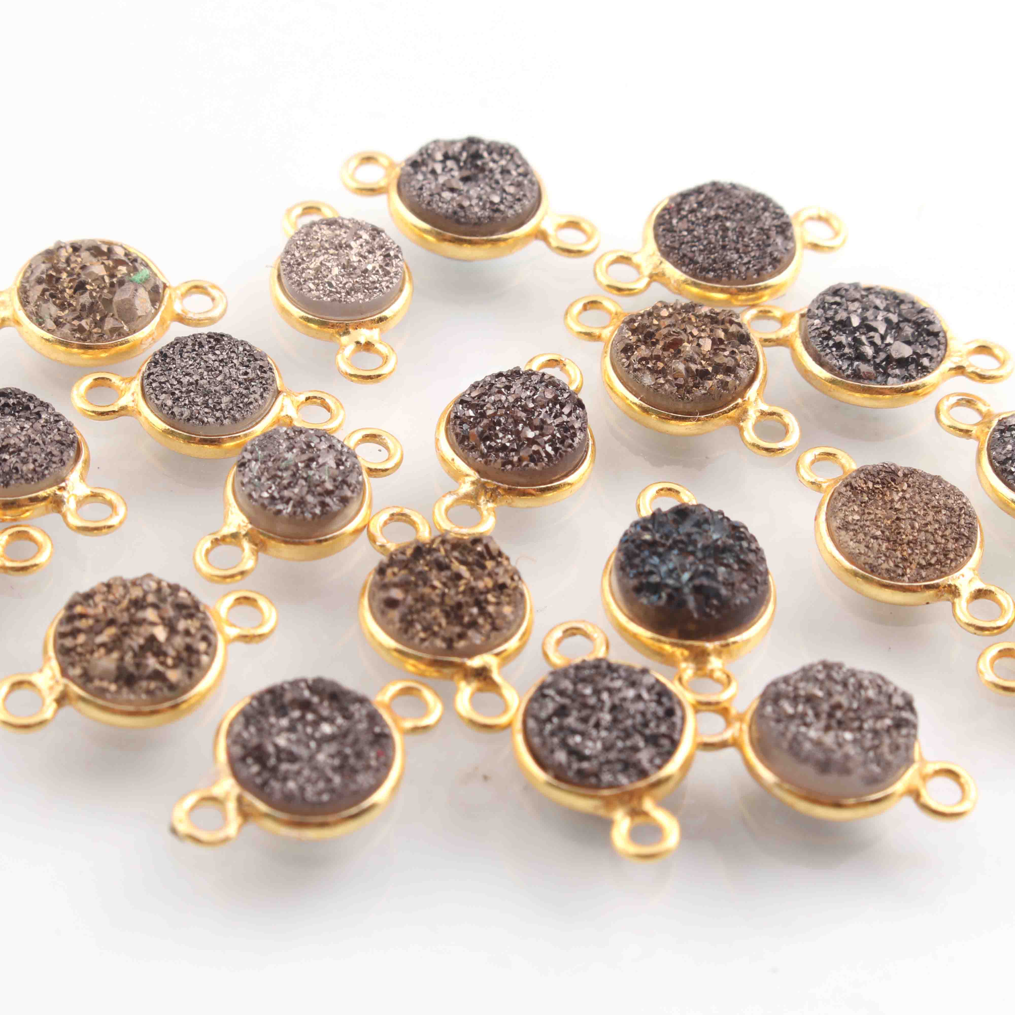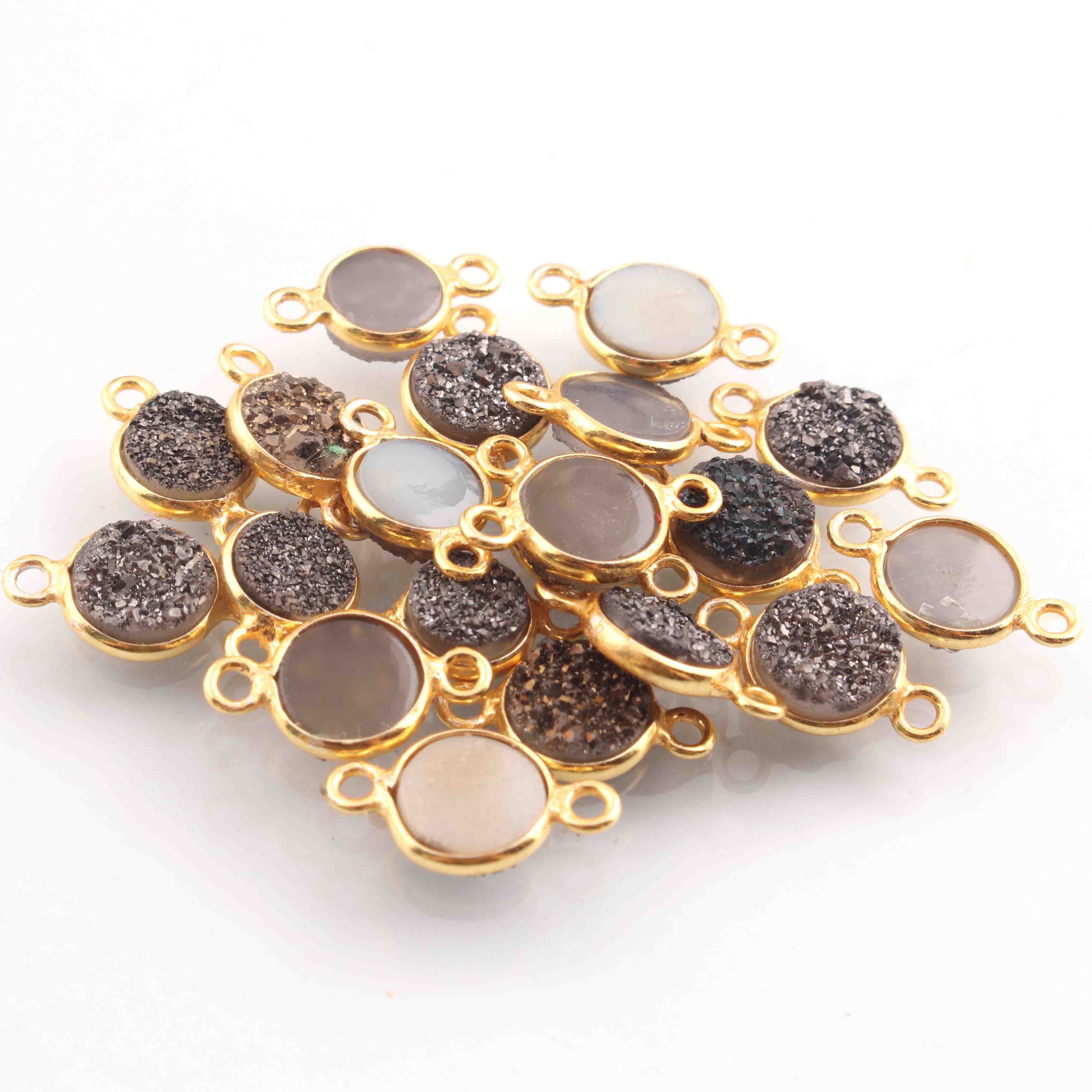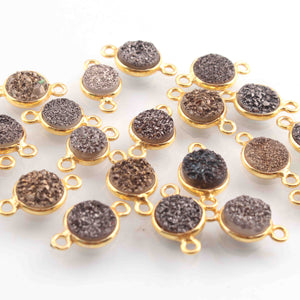 10 Pcs Mystic Mix Druzy Round 925 Sterling Vermeil Double Bail Connector - 14mmx8mm- SS1152