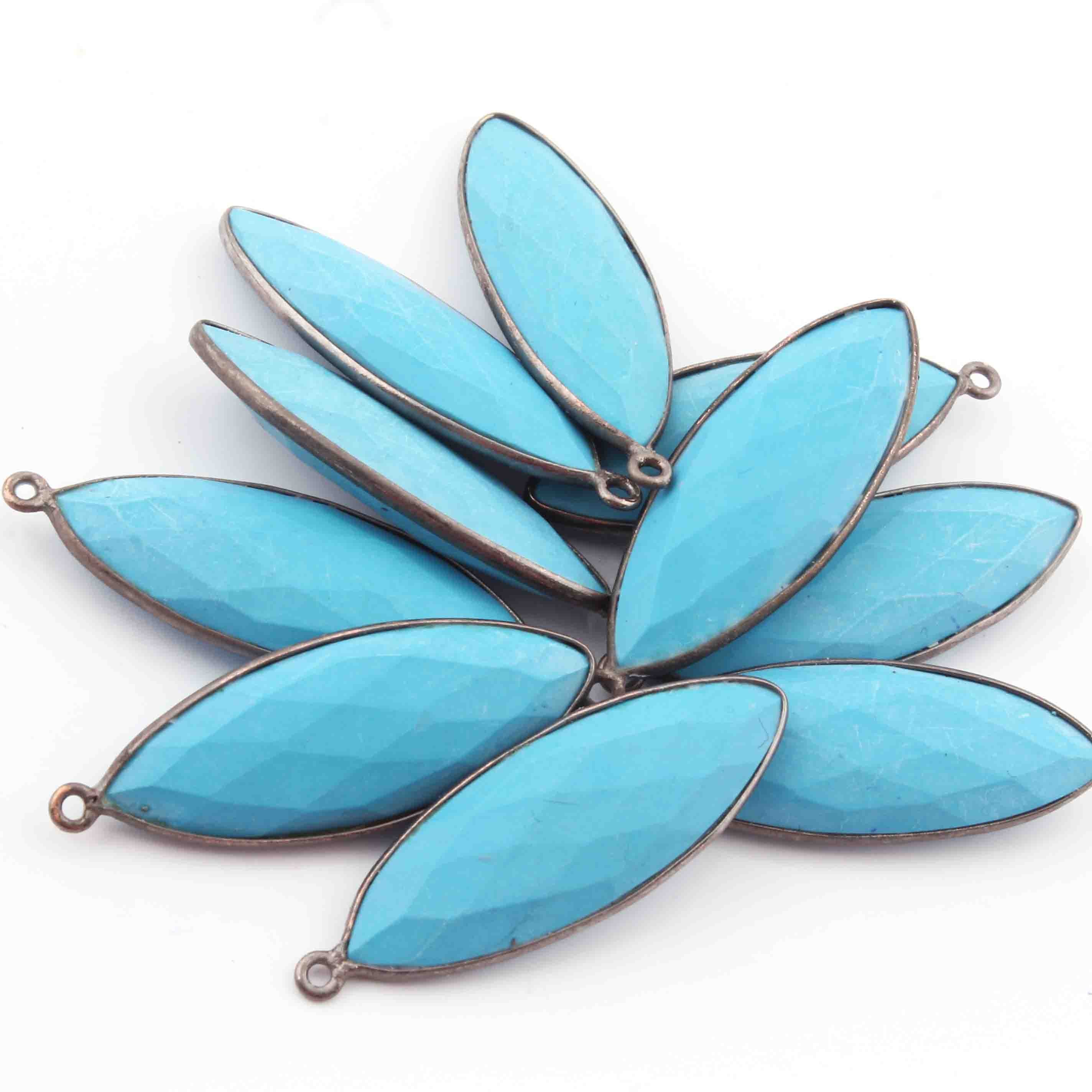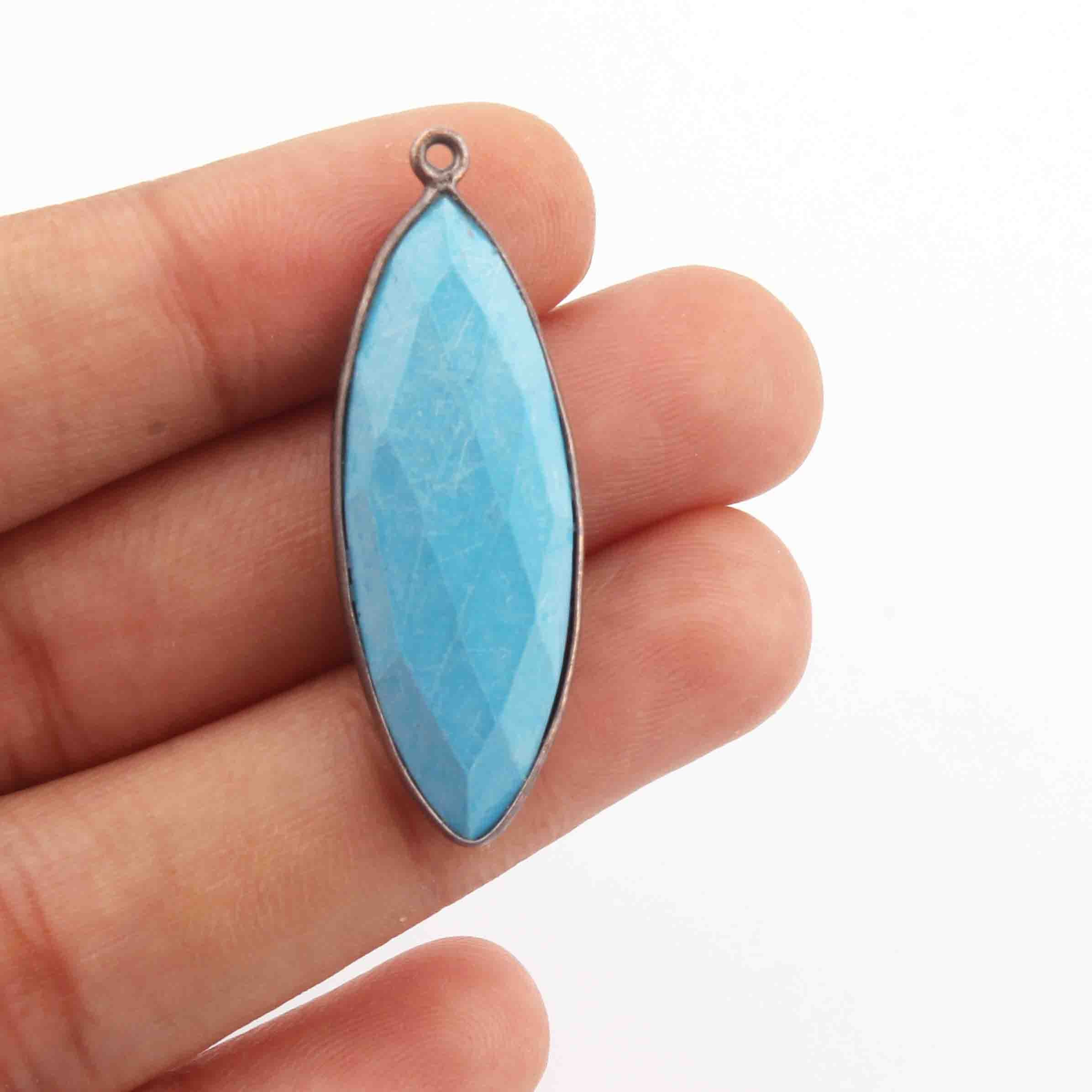 9 Pcs Turquoise Faceted Marquise Shape Oxidized Silver Plated Pendant 39mmx13mm PC111