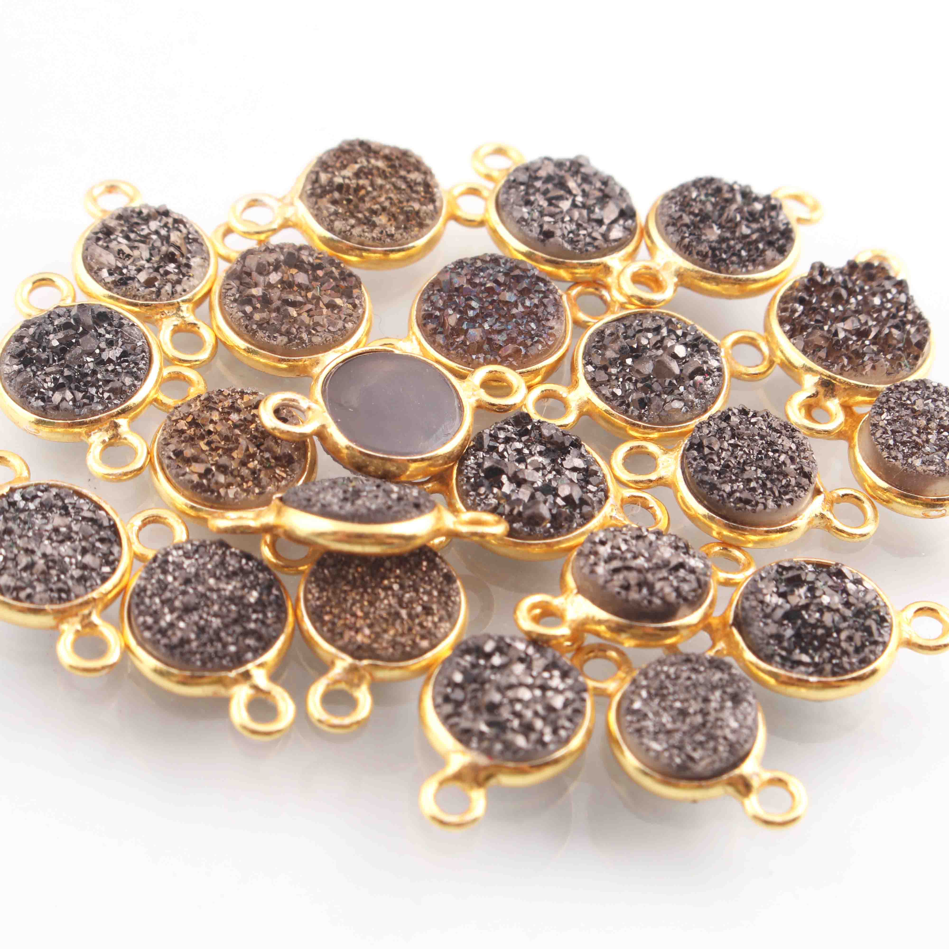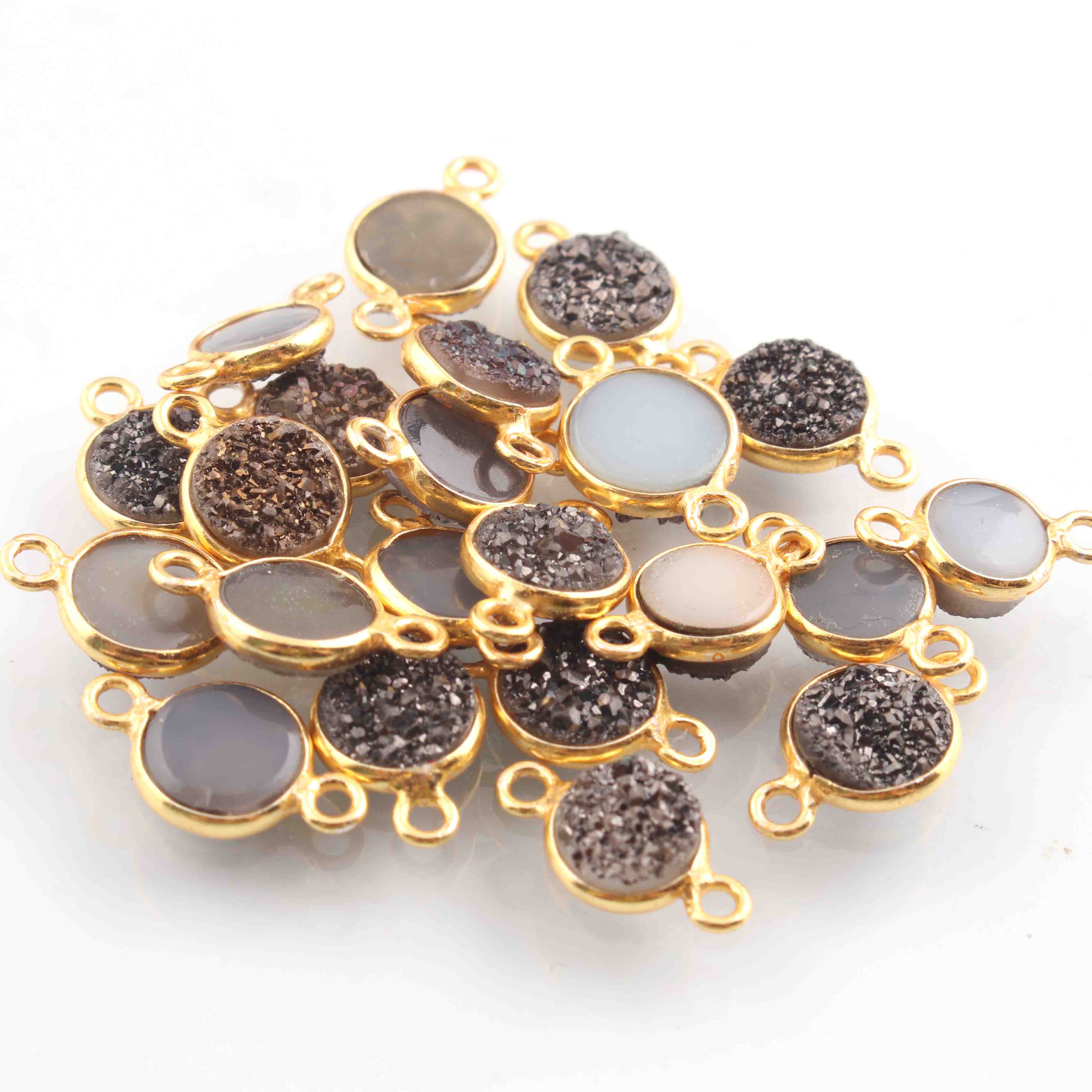 11 Pcs Mystic Gray Druzy Round 925 Sterling Vermeil Double Bail Connector - 14mmx8mm- SS1150
