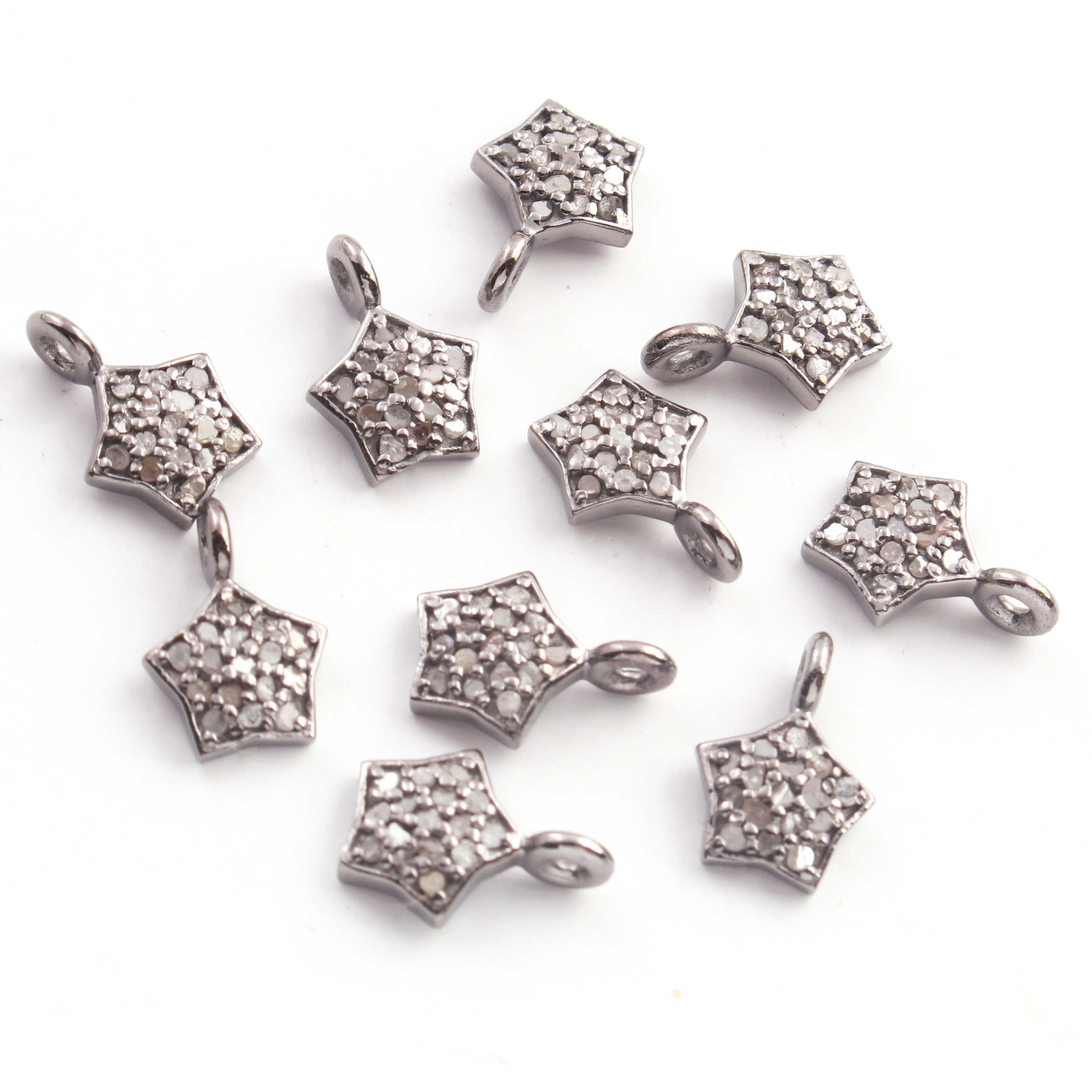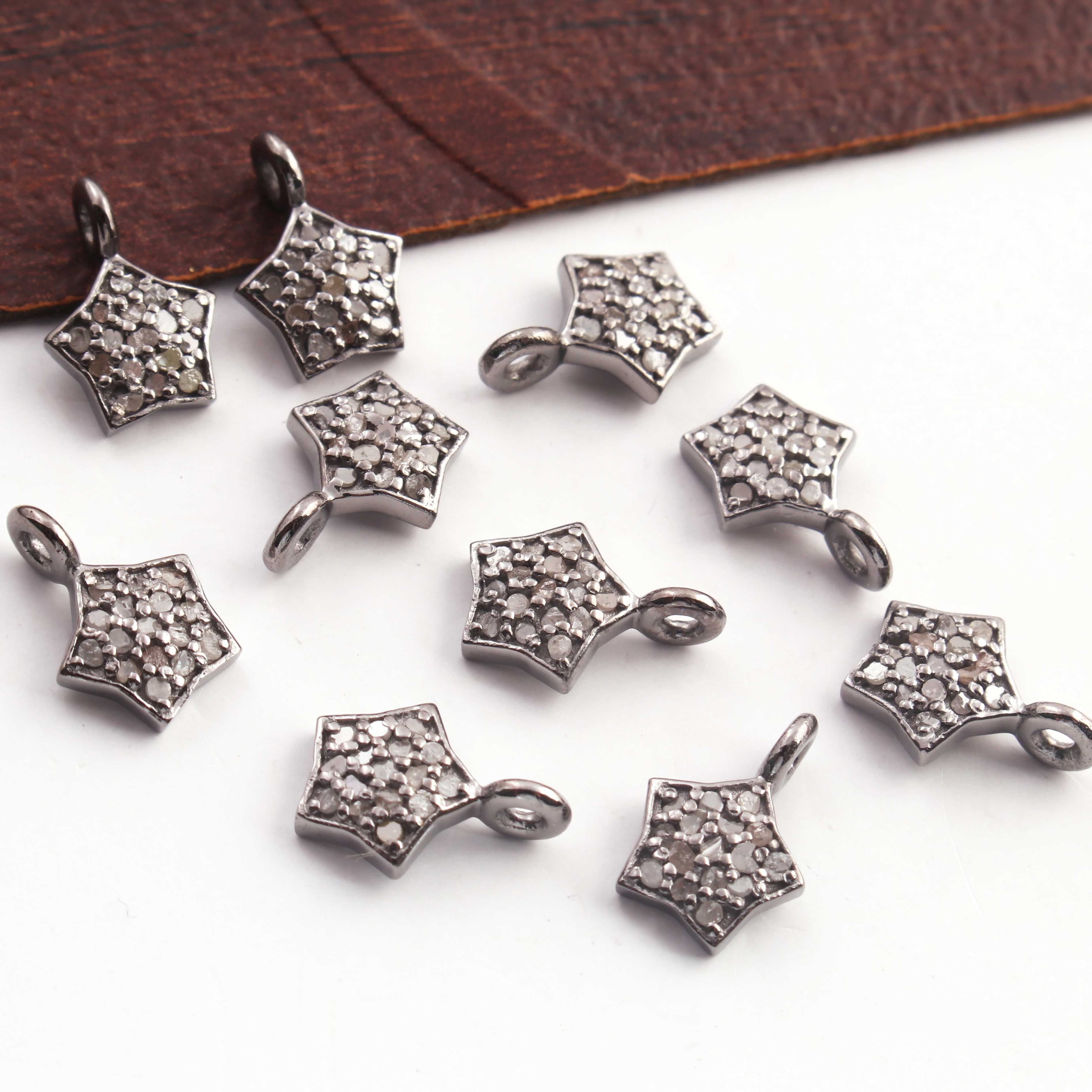 Listing Is For Two (2) Pcs Pave Diamond Star Charm 925 Sterling Silver Pendant