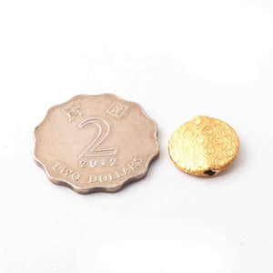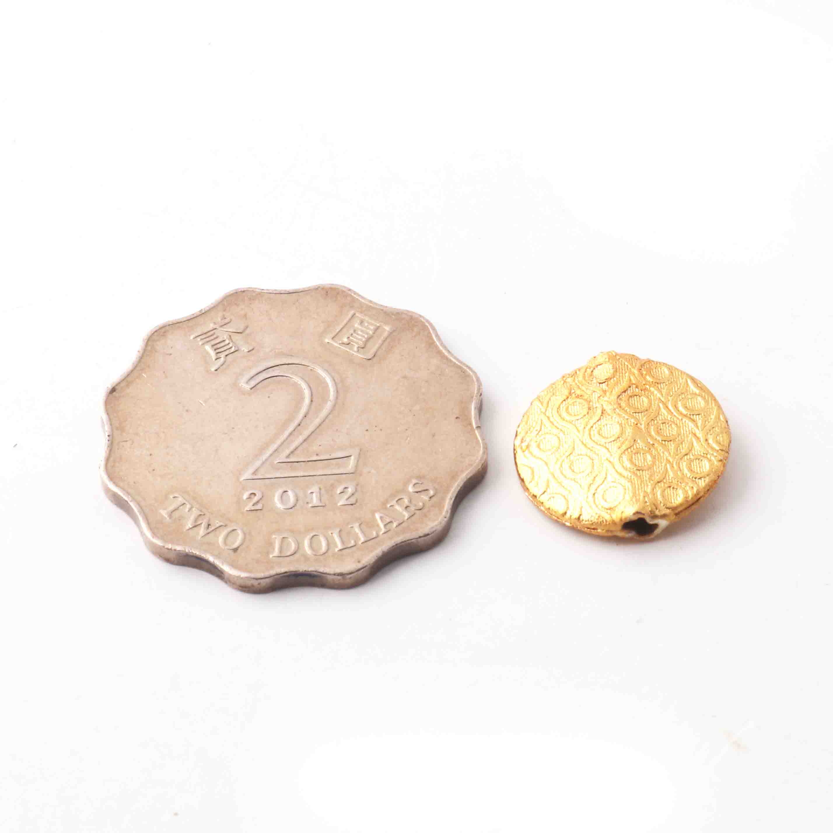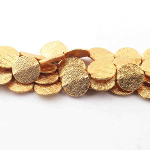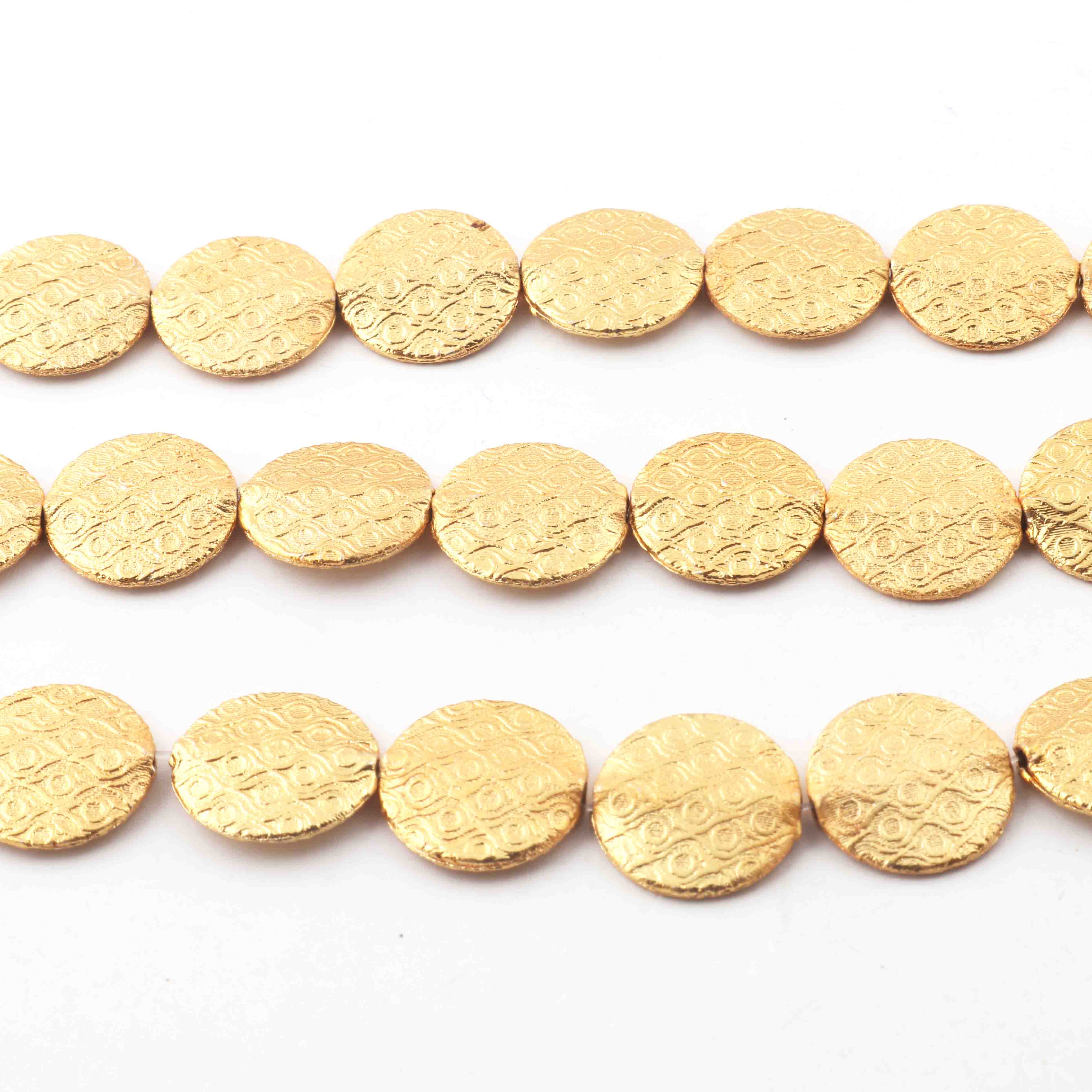 1 Strand Gold Plated Designer Copper Coin Shape Beads, Scratch Mat Finish Beads, Jewelry Supplies 15mm 8 inches Bulk Lot GPC227