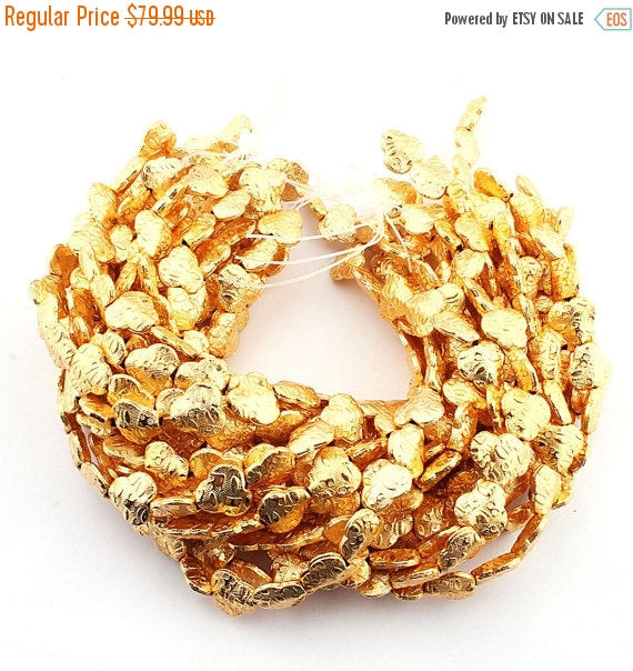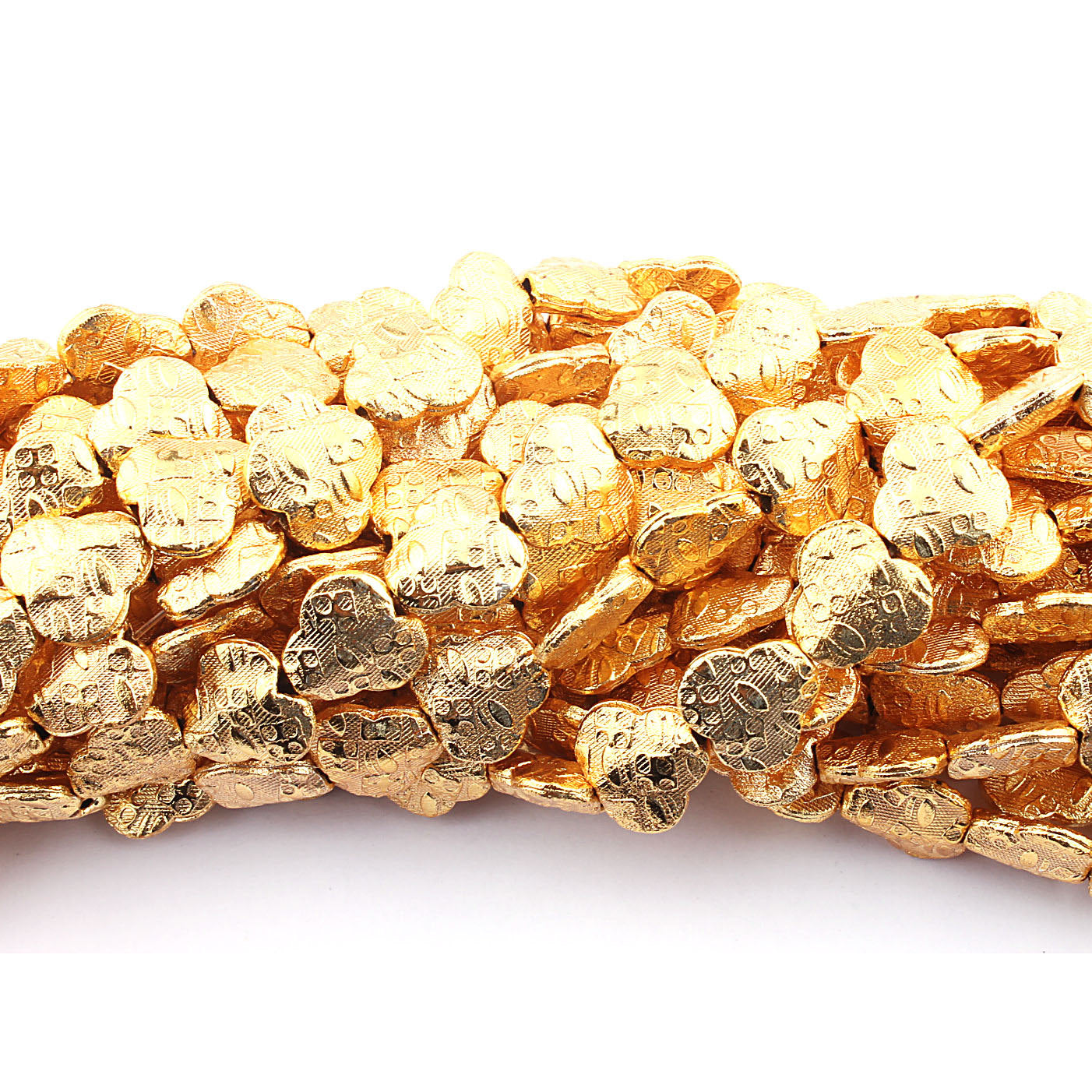 LISTING IS FOR Five (2) Strands 24k Gold Plated Clover Copper Beads Clover Stamp Copper Beads- GPC478