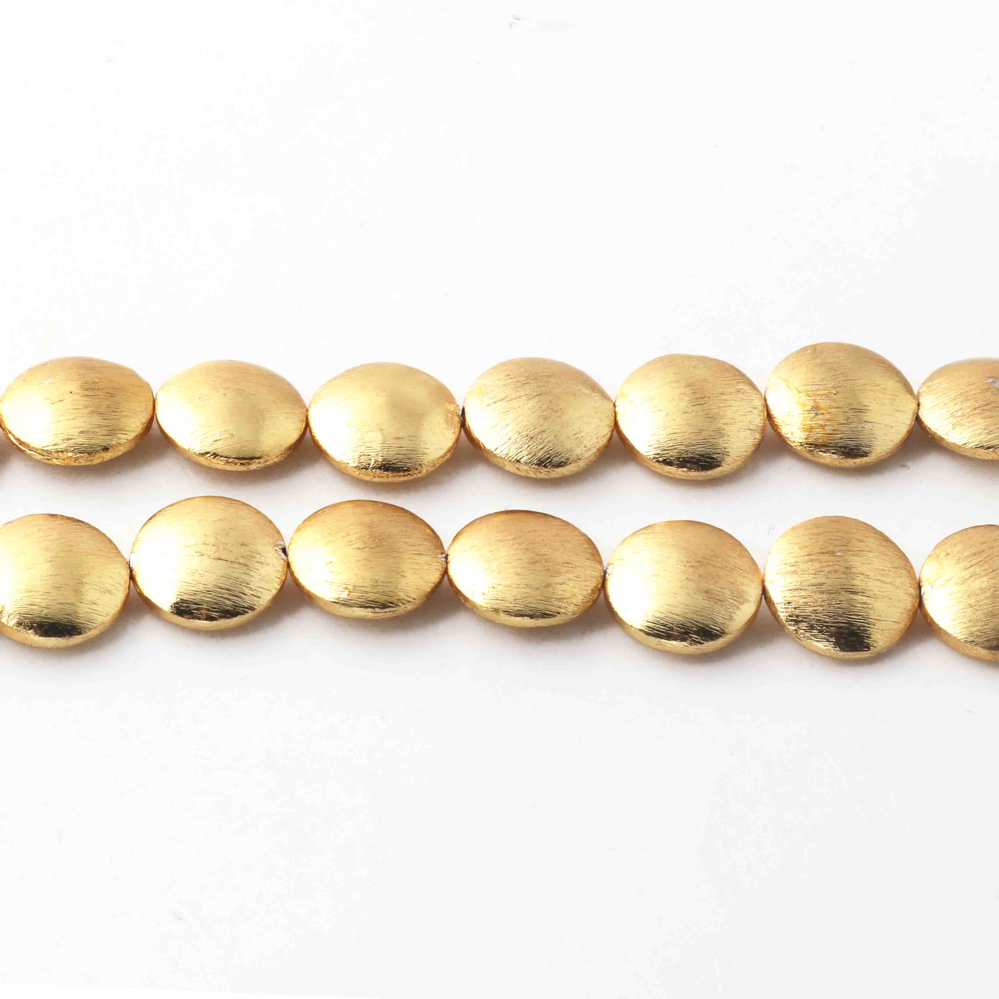 1 Strand Gold Plated Designer Copper Coin Shape Beads, Scratch Mat Finish Beads, Jewelry Supplies 20mm 8 inches Bulk Lot GPC897