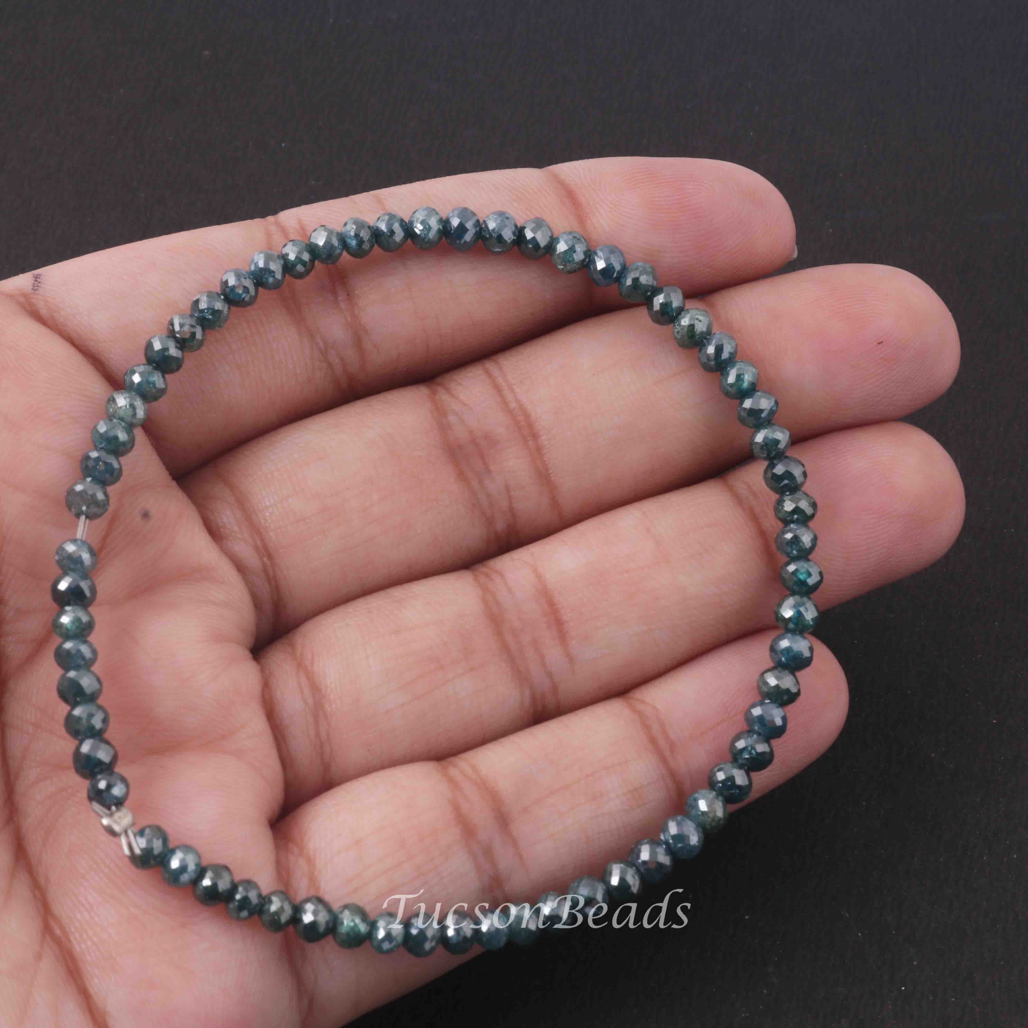 26 Ct 1 Long Strand Blue Diamond 1mm Large Big Hole Rondelles Genuine Diamond Beads 8 Inch Long BDU010