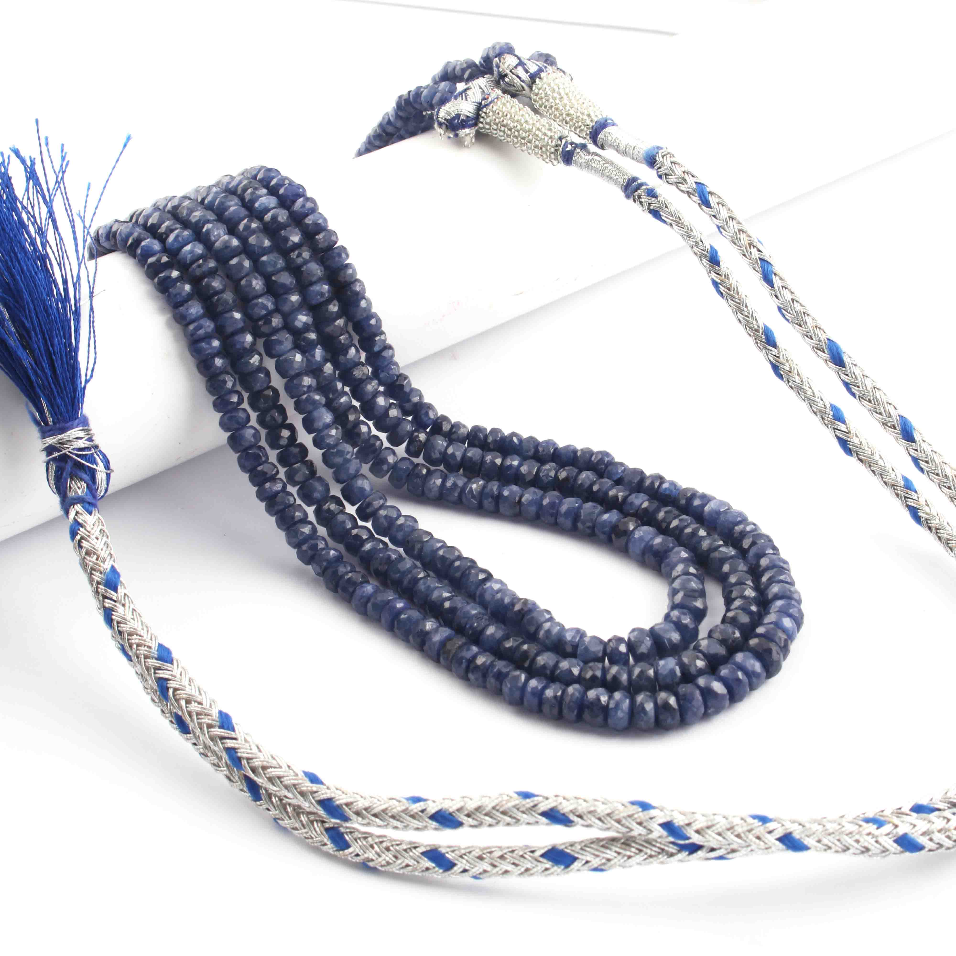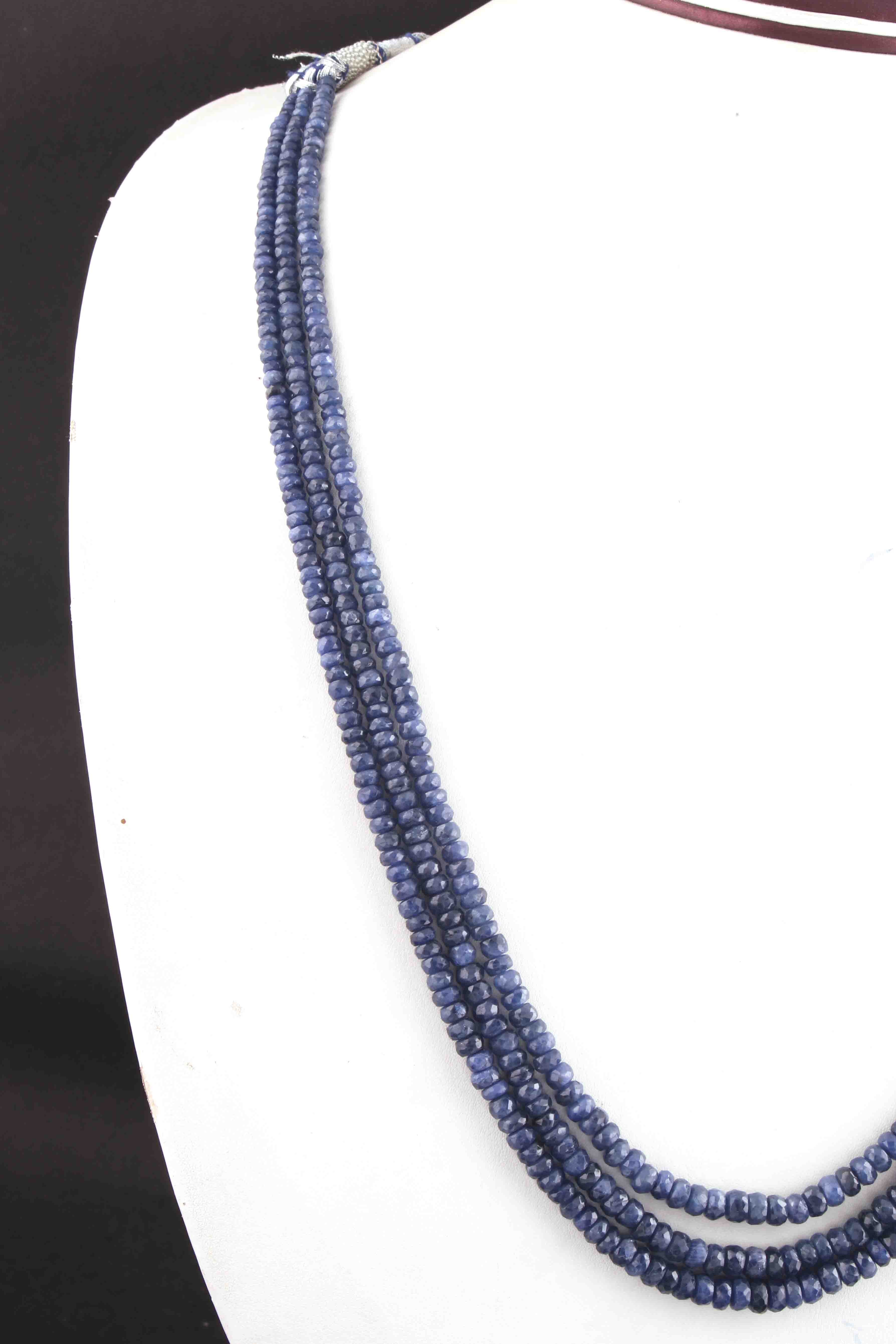 340. Ct 3 Strands Natural Burmese Blue Sapphire Necklace - Faceted Rondelle Beads - Burmese Sapphire Necklace - Stunning Elegant Necklace - SPB0113