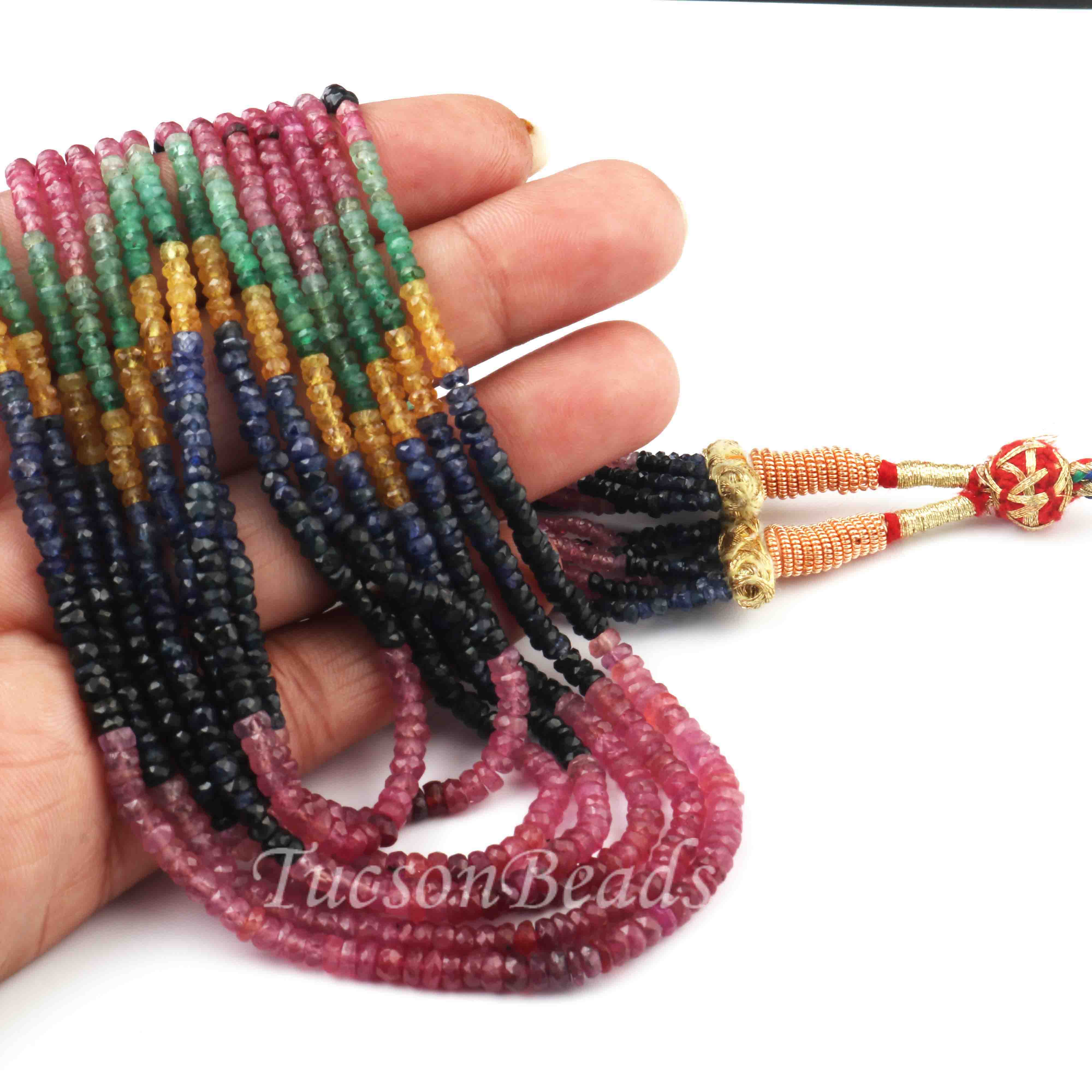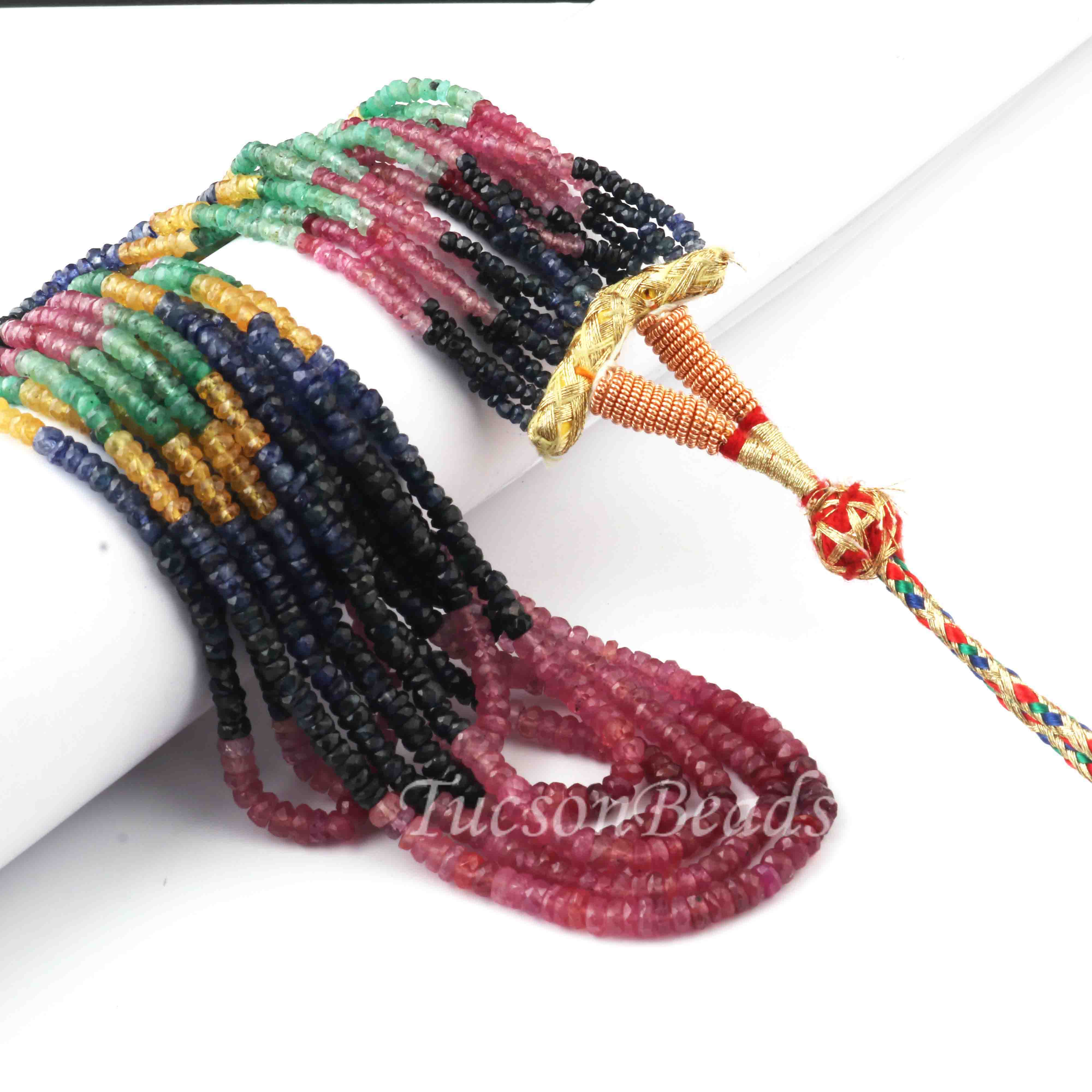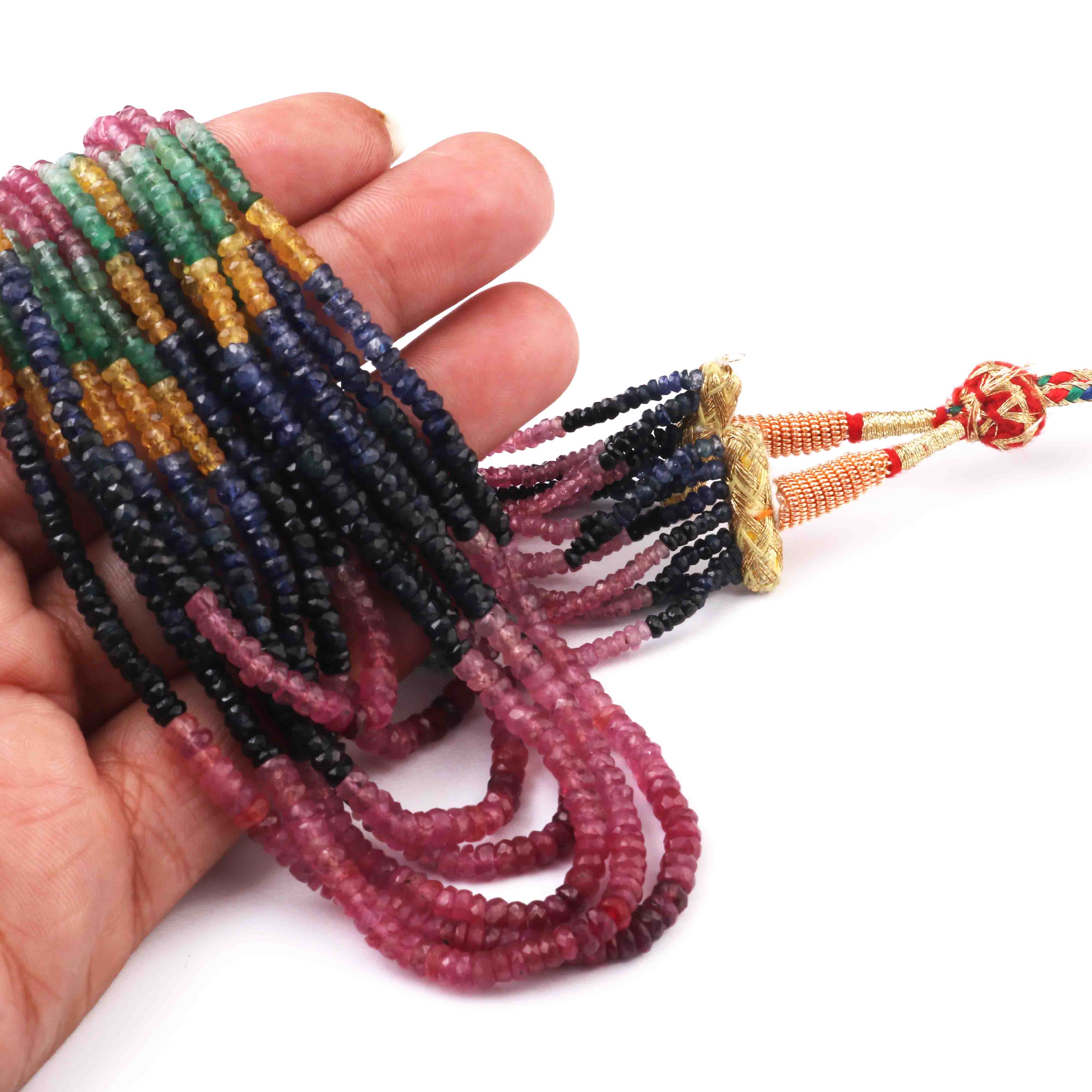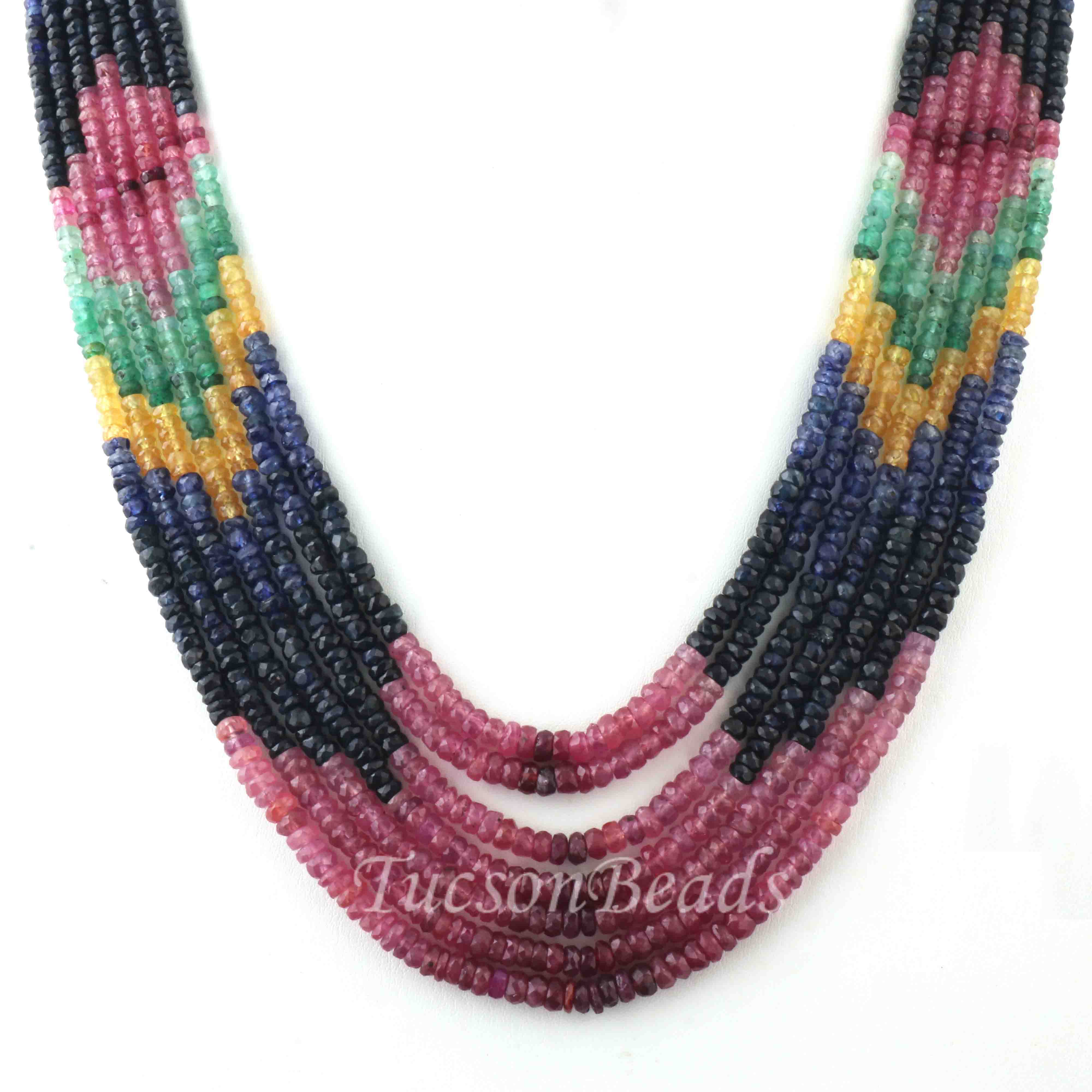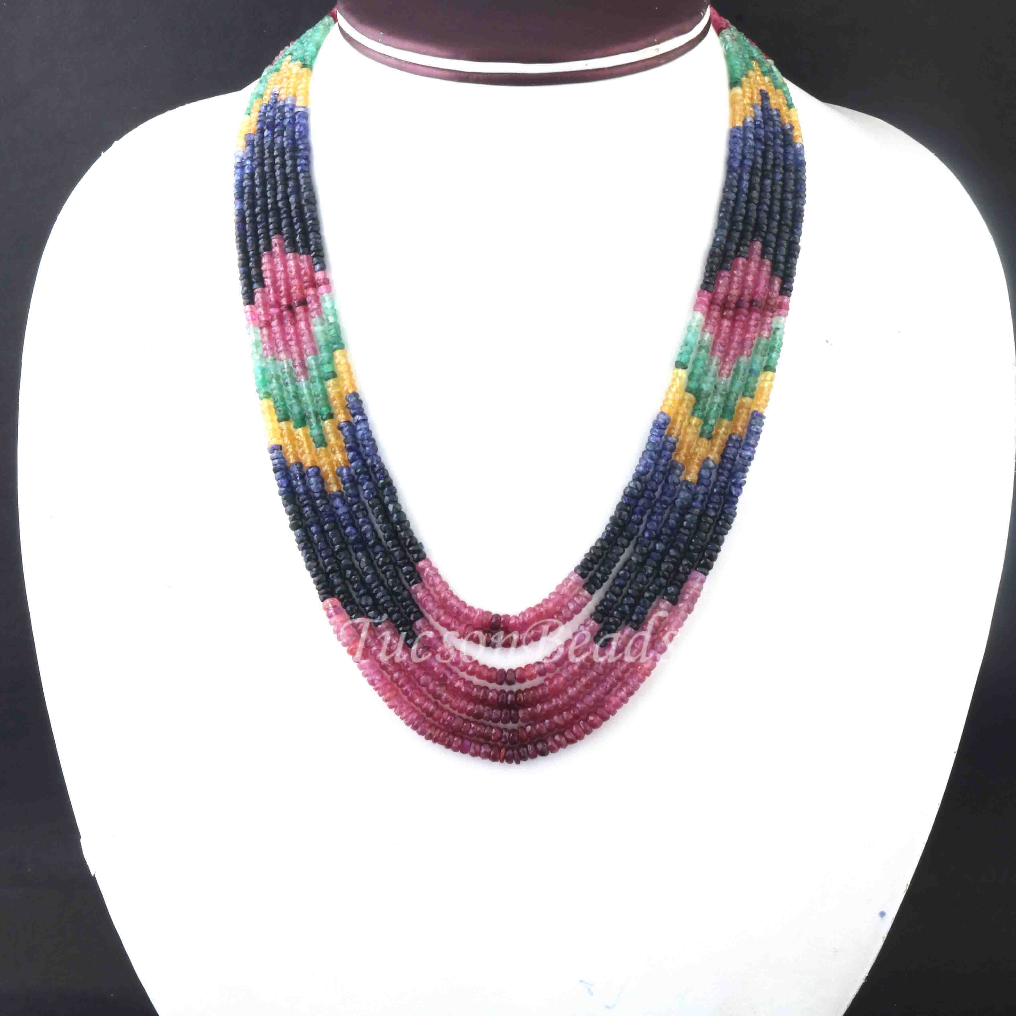 350ct. 7 Strands Of Genuine Multi Sapphire Necklace - Faceted Rondelle Beads - Rare & Natural Sapphire Necklace - Stunning Elegant Necklace - BRU023