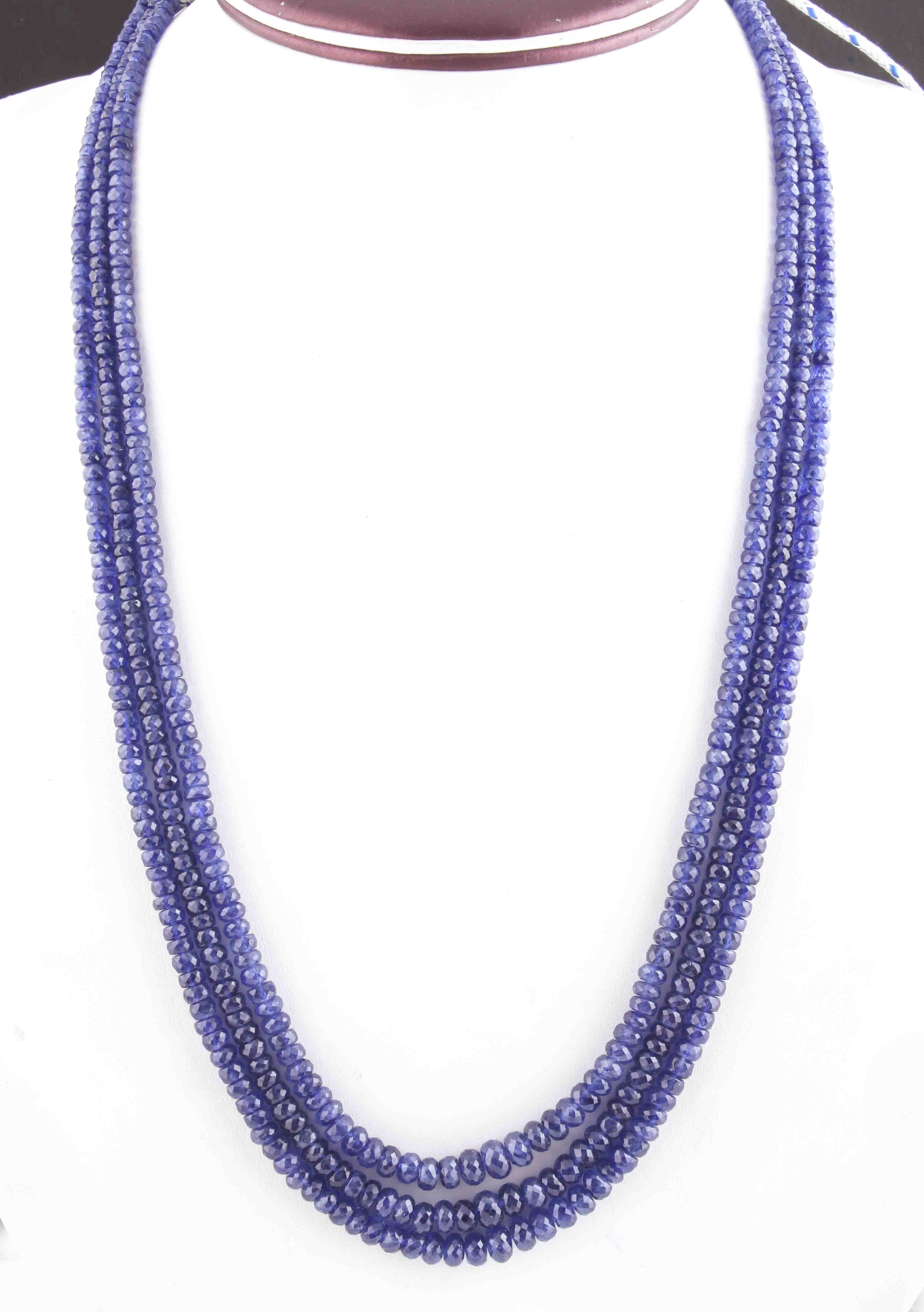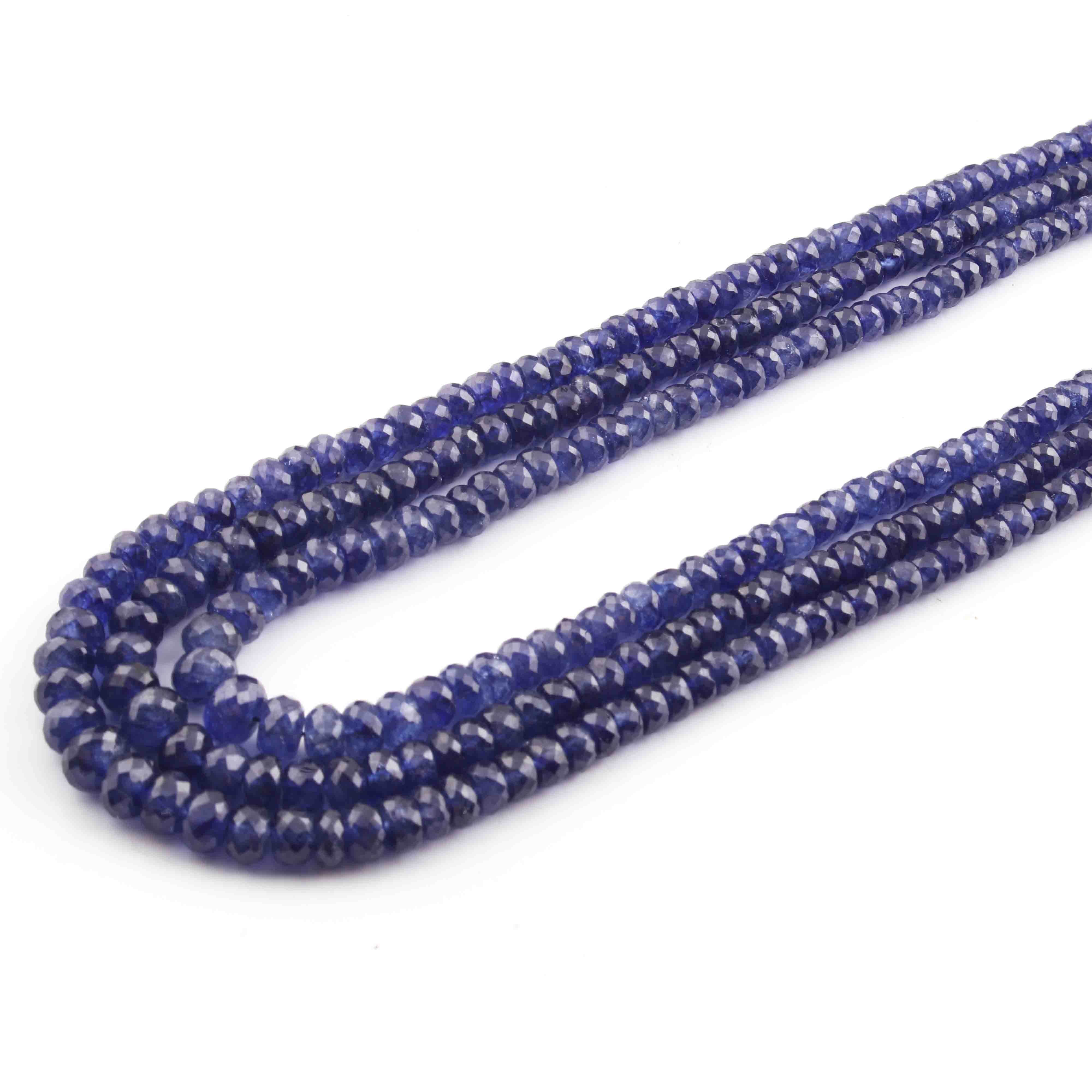 365. Ct 3 Strands Of Genuine Blue Sapphire Necklace - Faceted Rondelle Beads - Rare & Natural Sapphire Necklace - Stunning Elegant Necklace - SPB0104