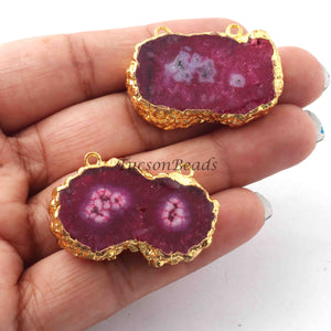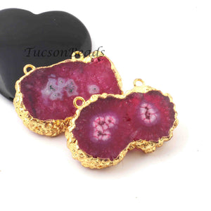 Listing is for 4 Pcs Pink Solar Druzzy Geode Raw Drusy Solar Pendant -Electroplated Gold Druzy Pendant DRZ172
