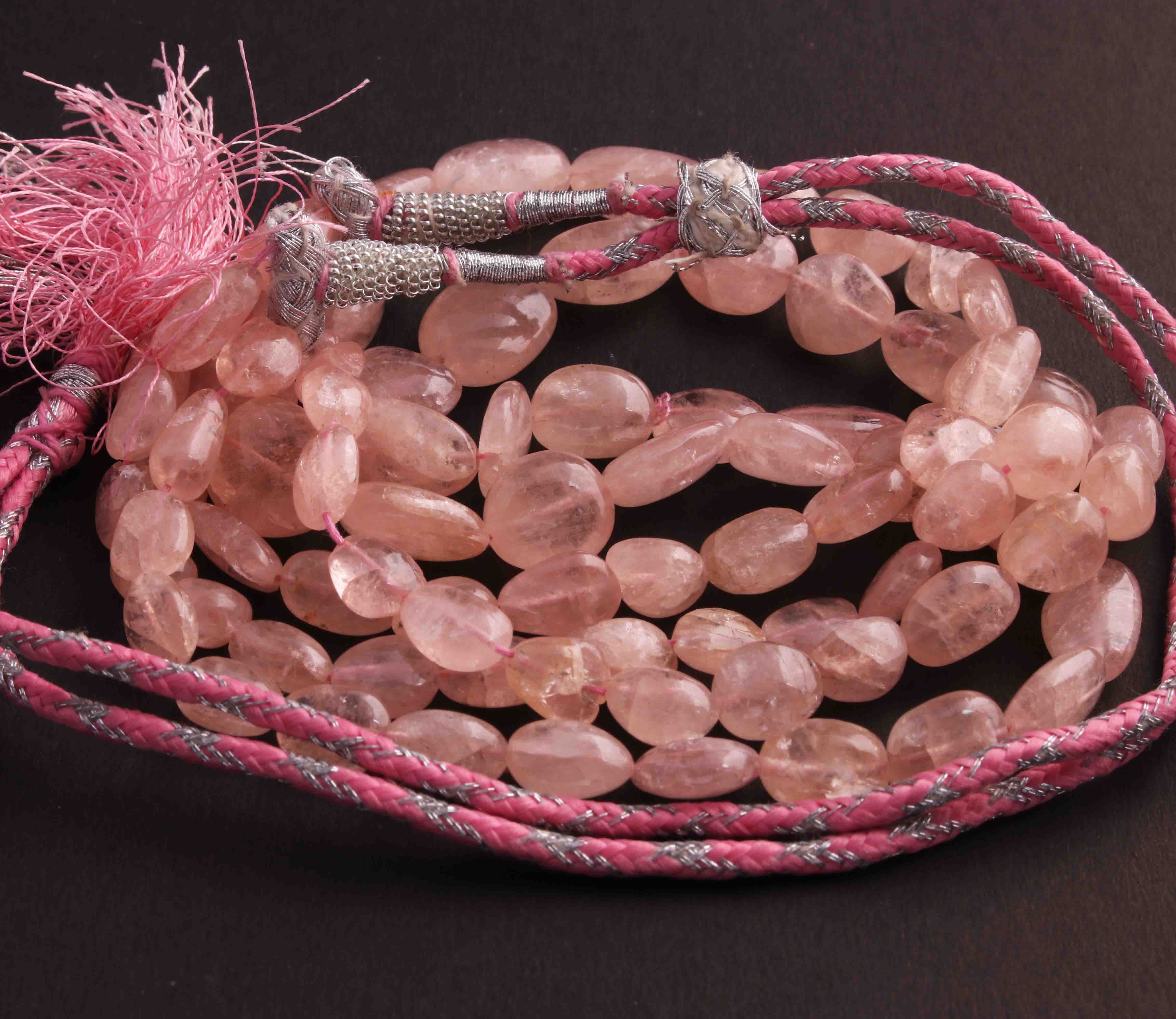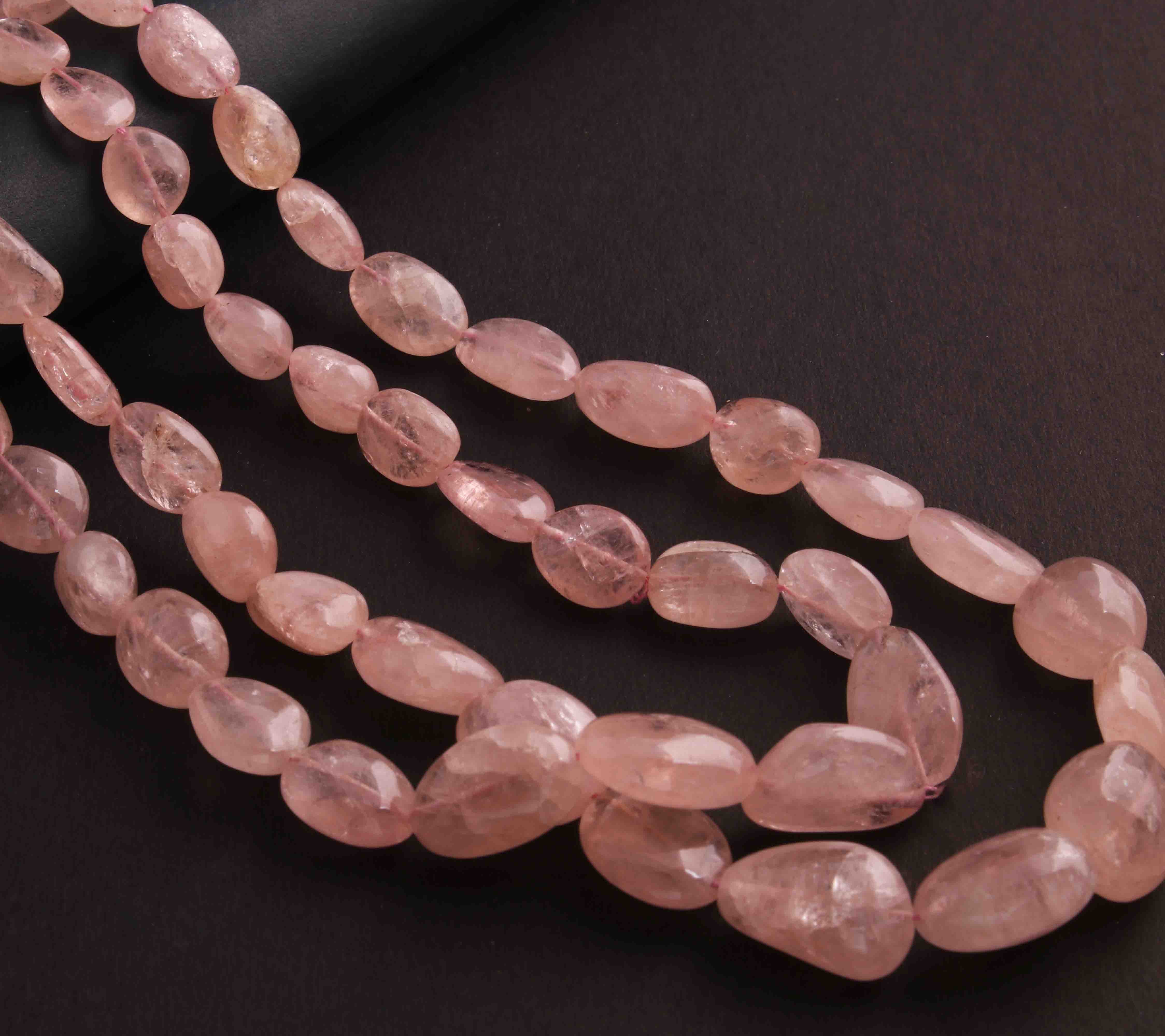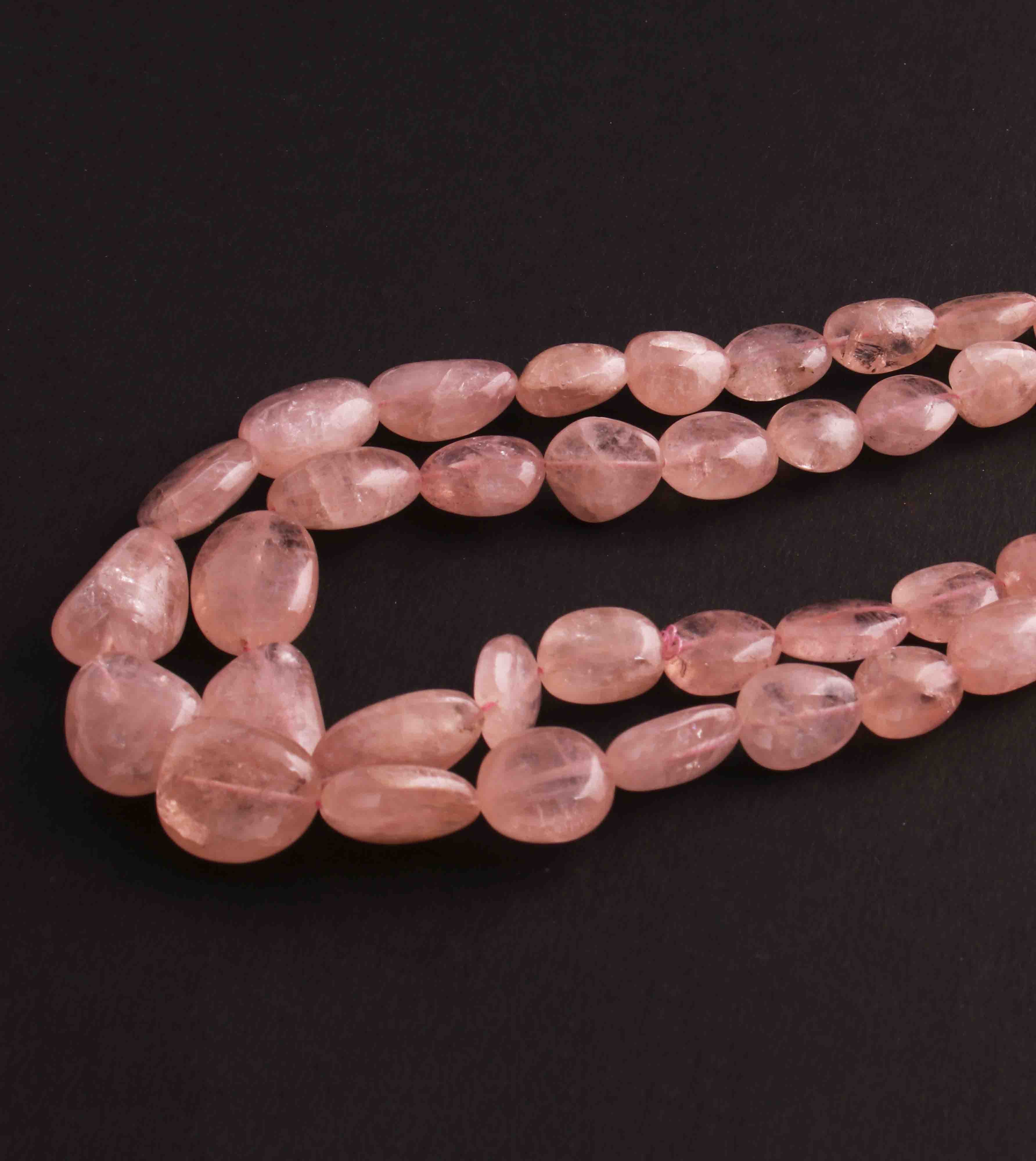 440 Carats 2 Strands Of Precious Genuine Morganite Necklace - Smooth oval Beads - Rare & Natural Necklace - Stunning Elegant Necklace BRU183