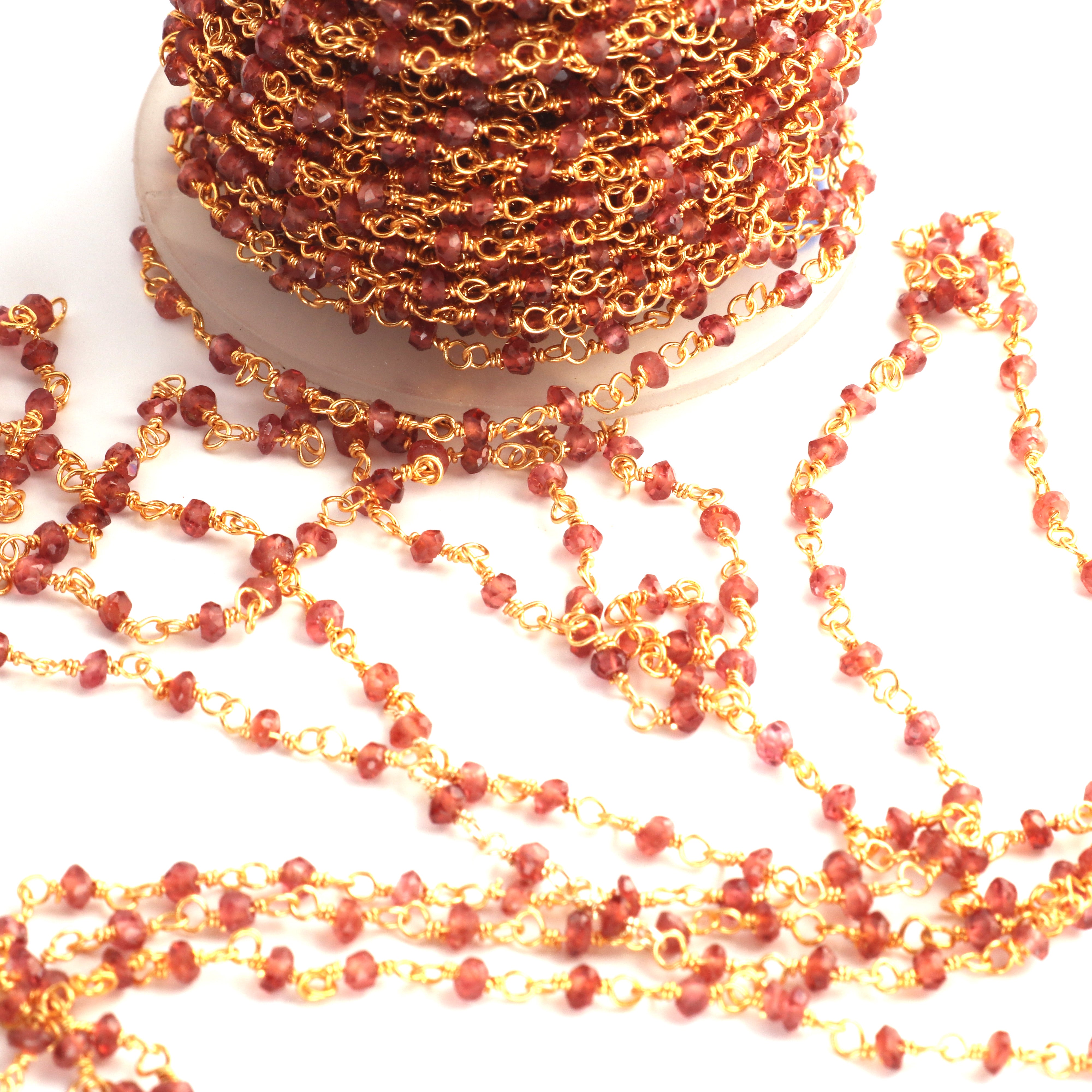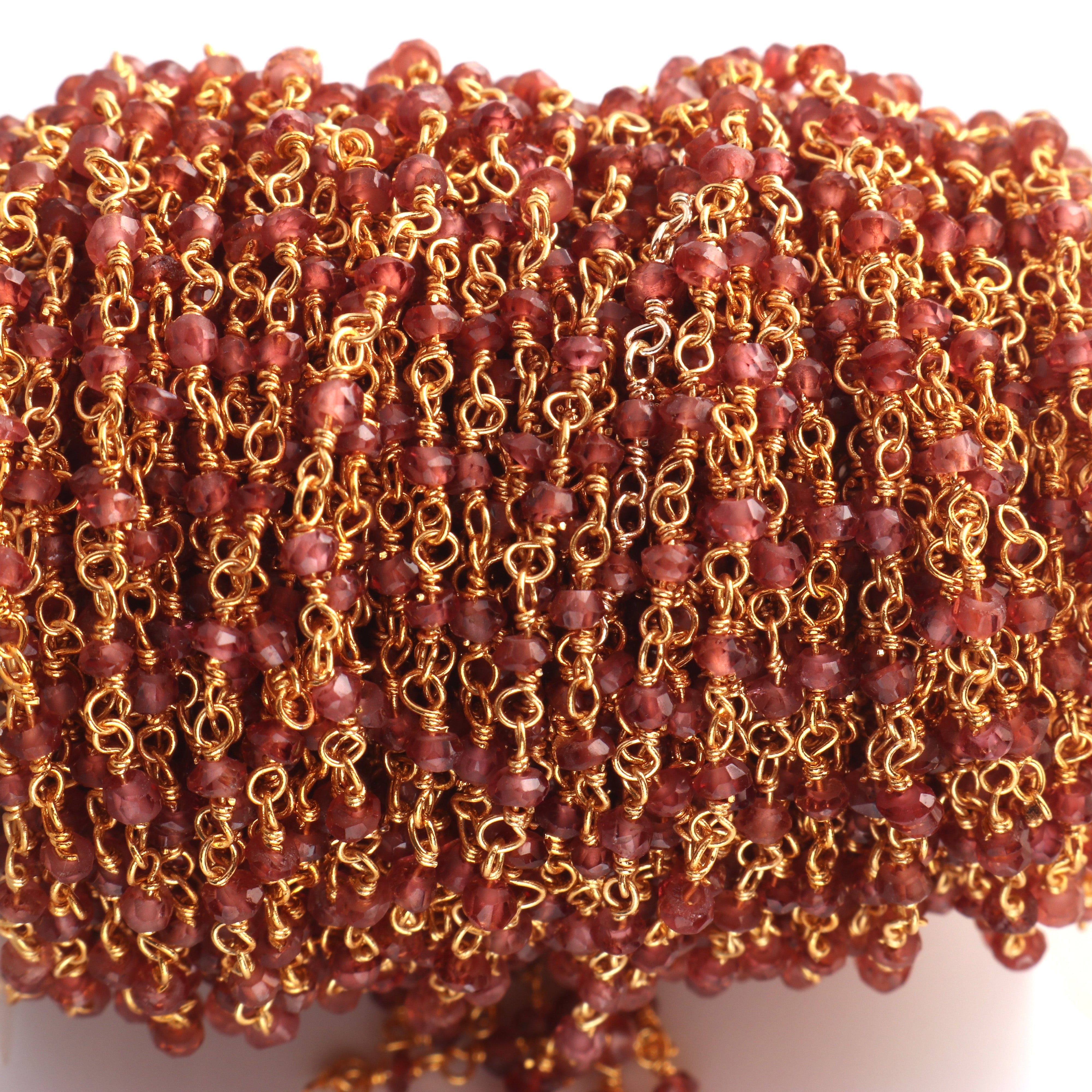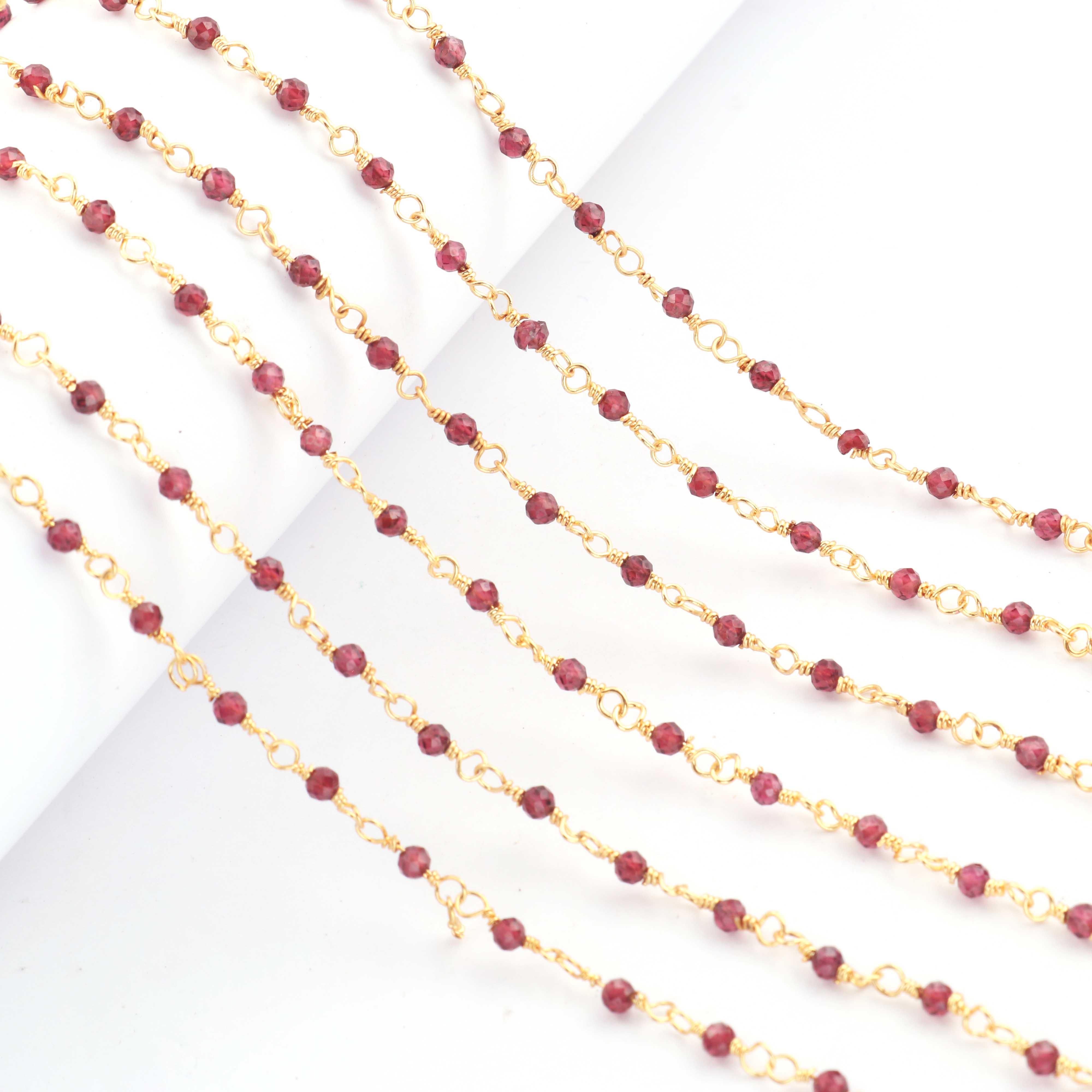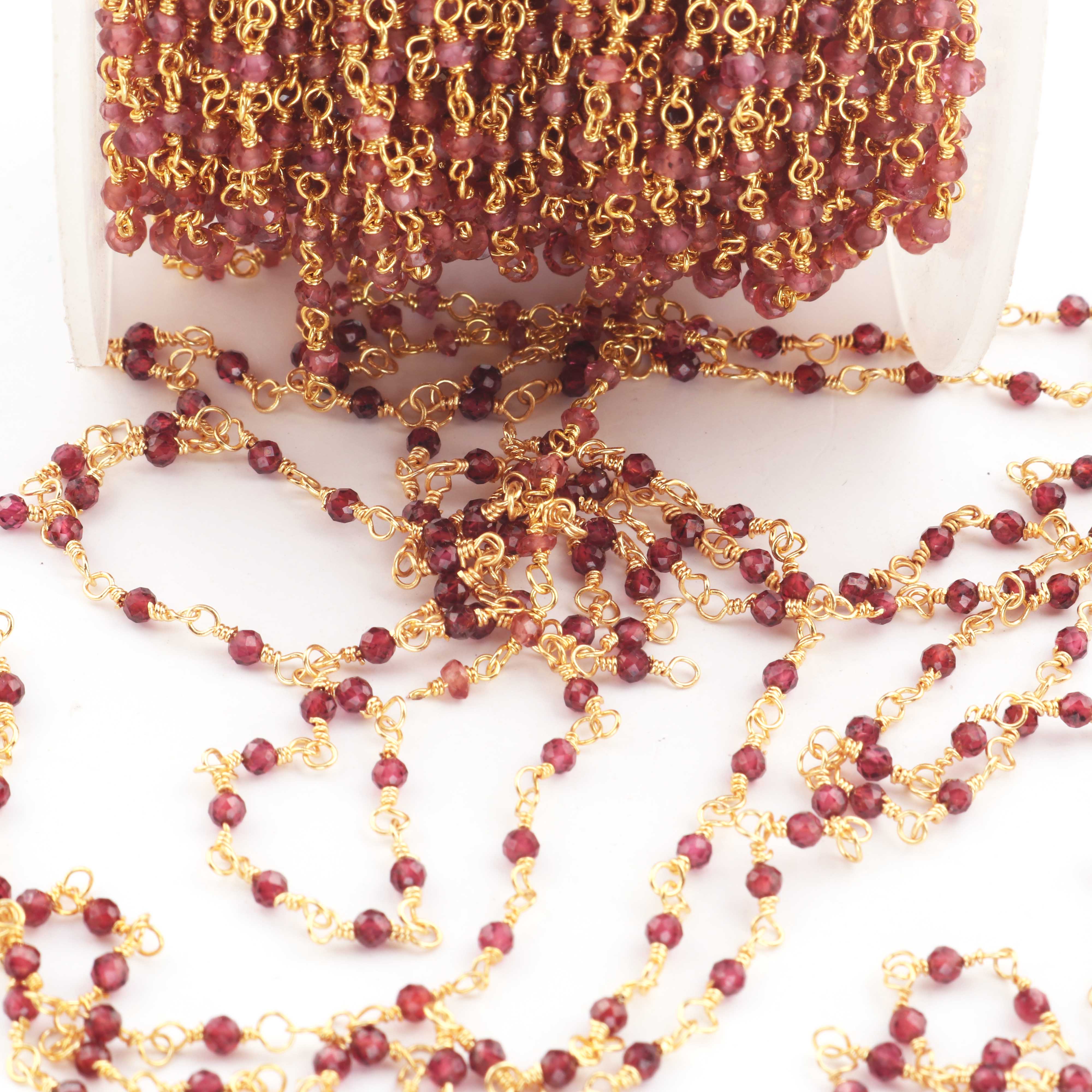 5 Feet Garnet 2mm`Rosary Style Beaded Chain -Garnet 24k gold Plated Wire Wrapped Chain BDG077