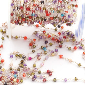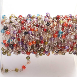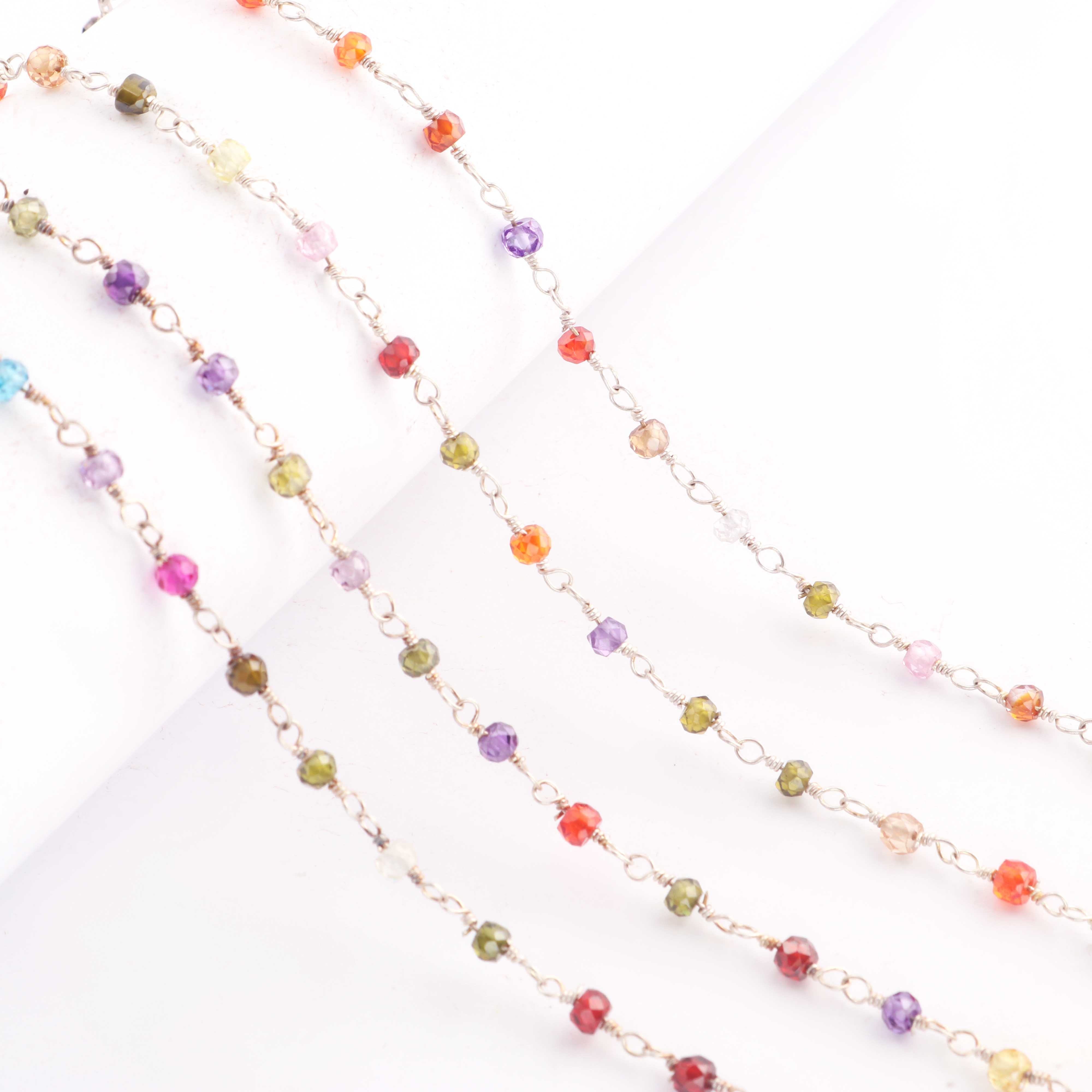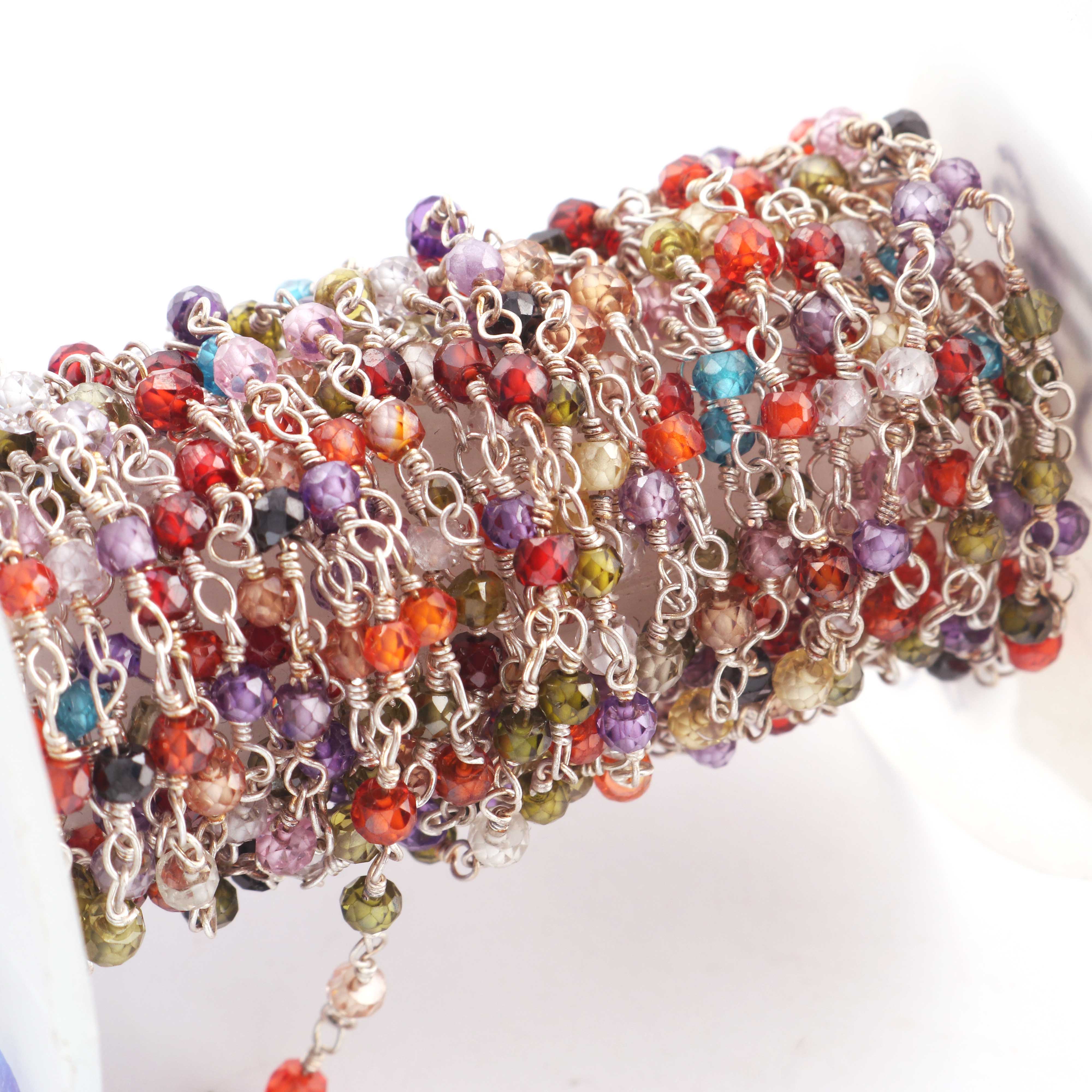 5 Feet Mix Zircon 3mm 925 Silver Plated Rosary Beaded Chain- Mix Zircon Beaded Chain- BDG141