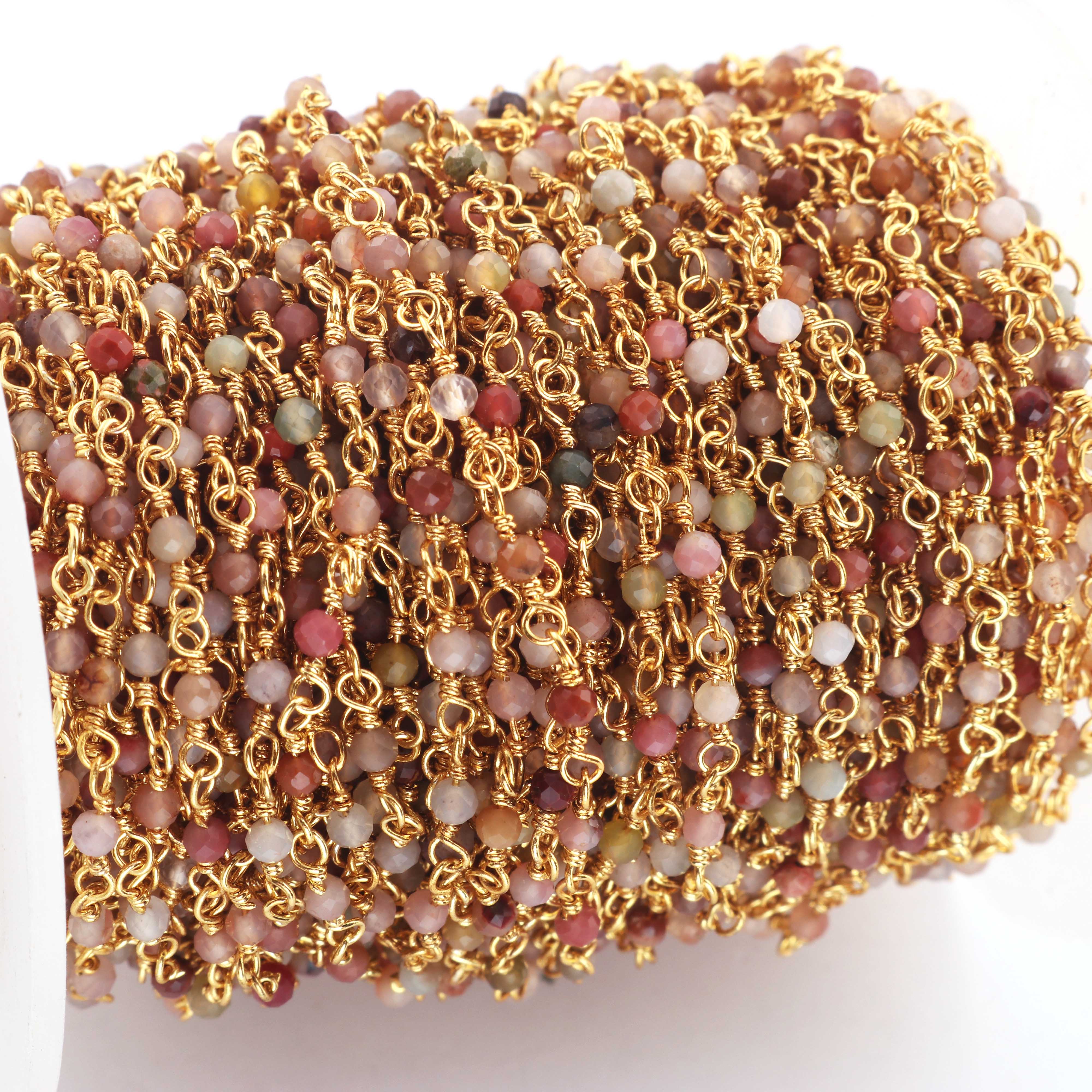 5 Feet Mookaite Rosary Style Beaded Chain 2mm Mookaite Beads Wire Wrapped 24Gold Plated Chain BDG130