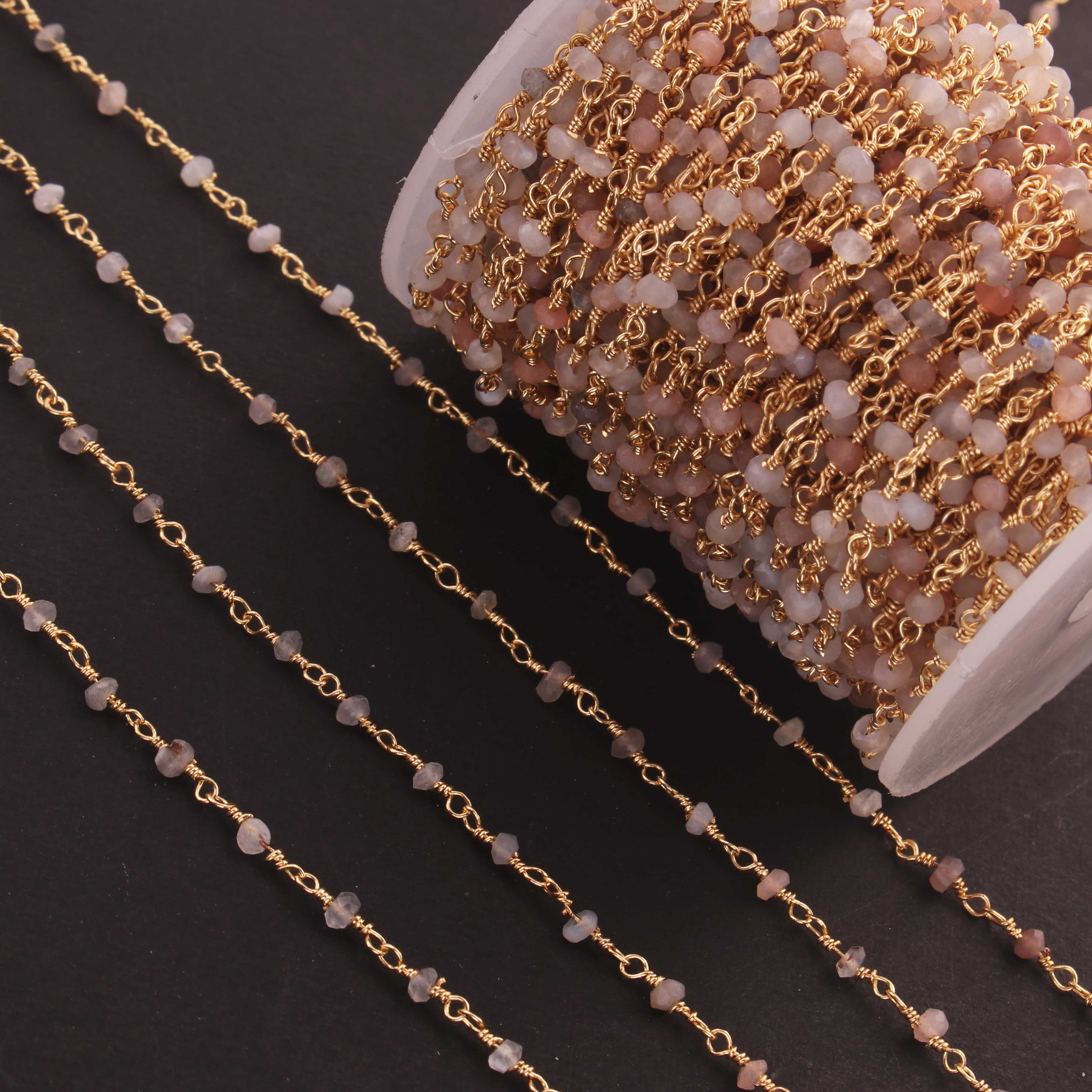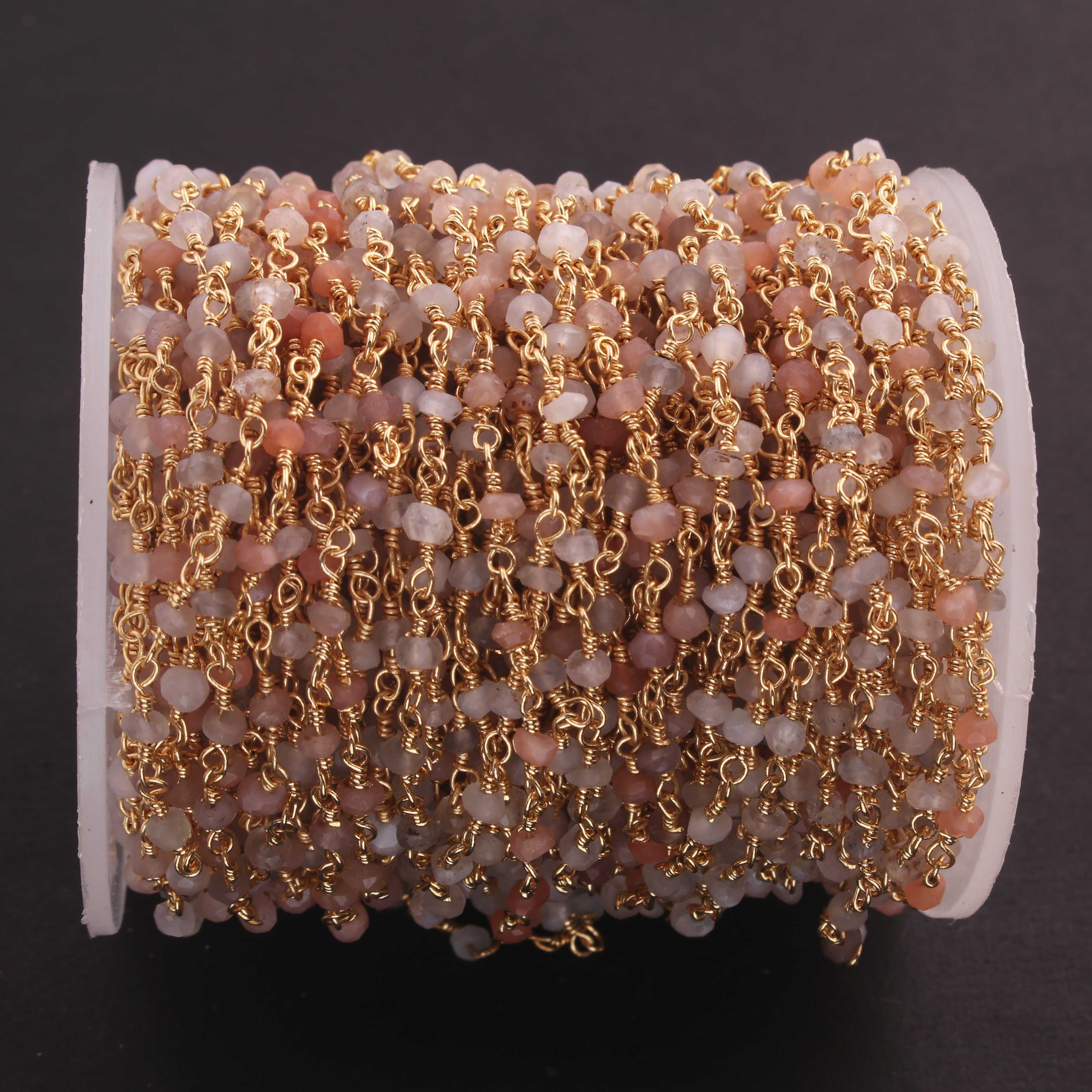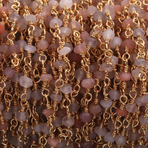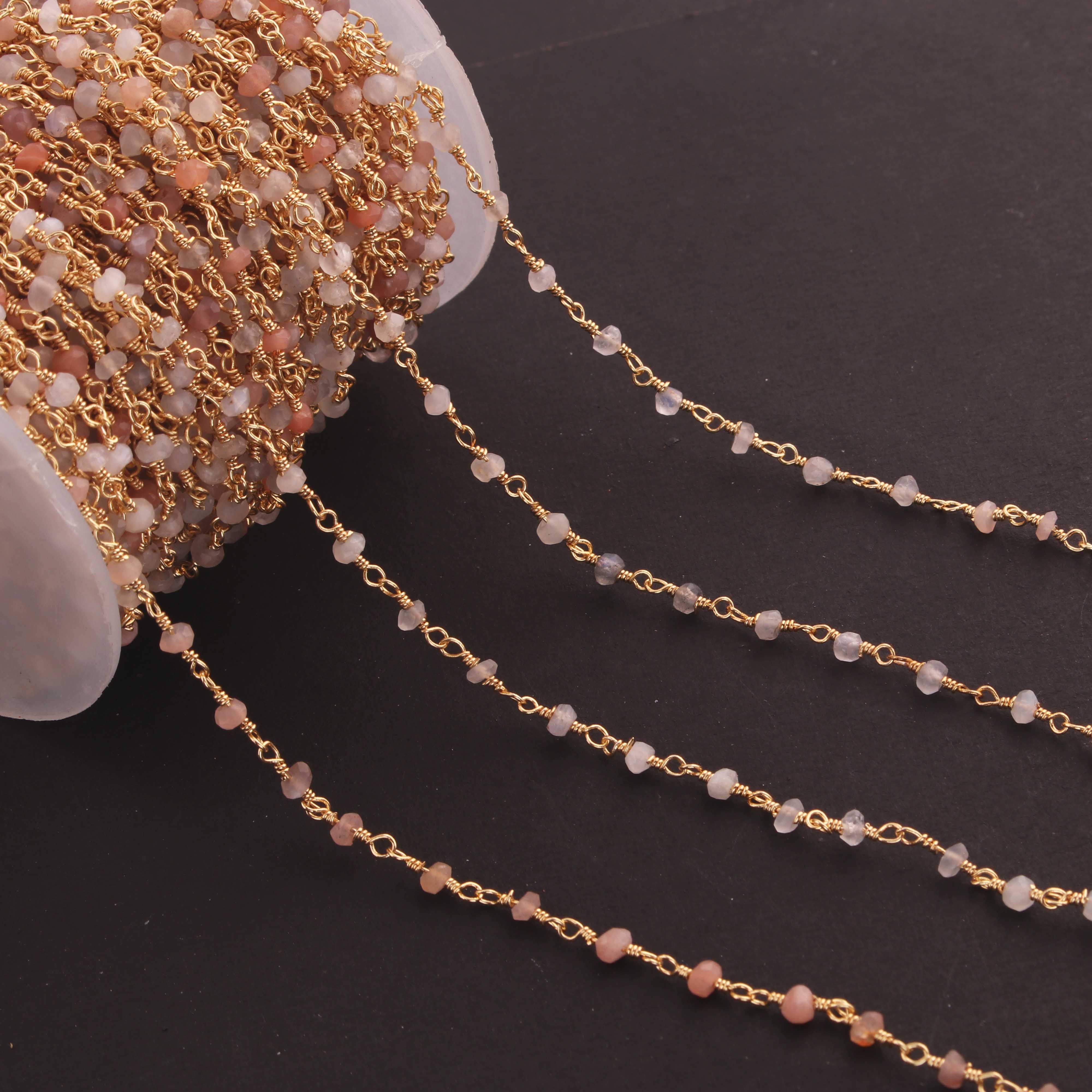 5 Feet Multi Moonstone 3mm 24k Gold Plated Rosary Beaded Chain- Moonstone Beaded Chain- BD020