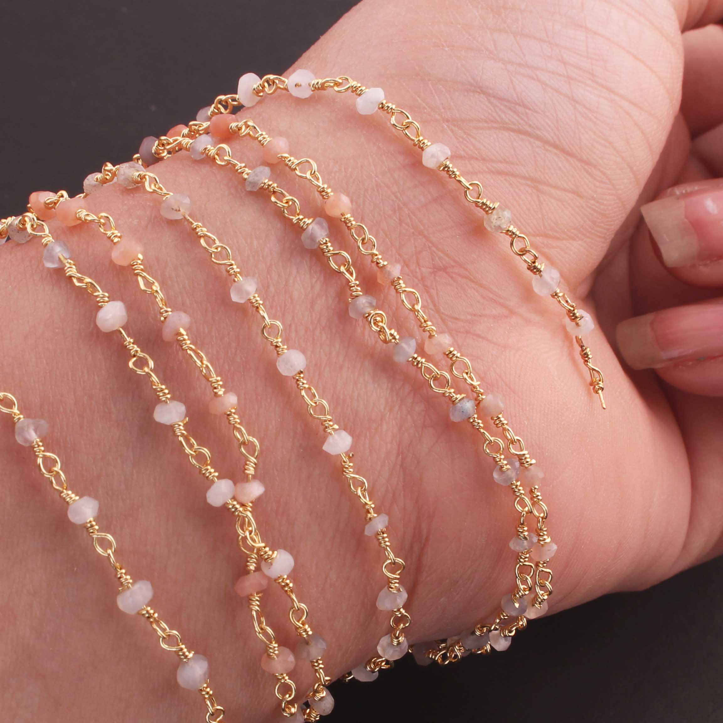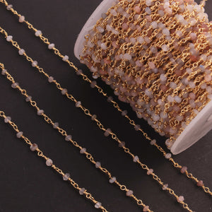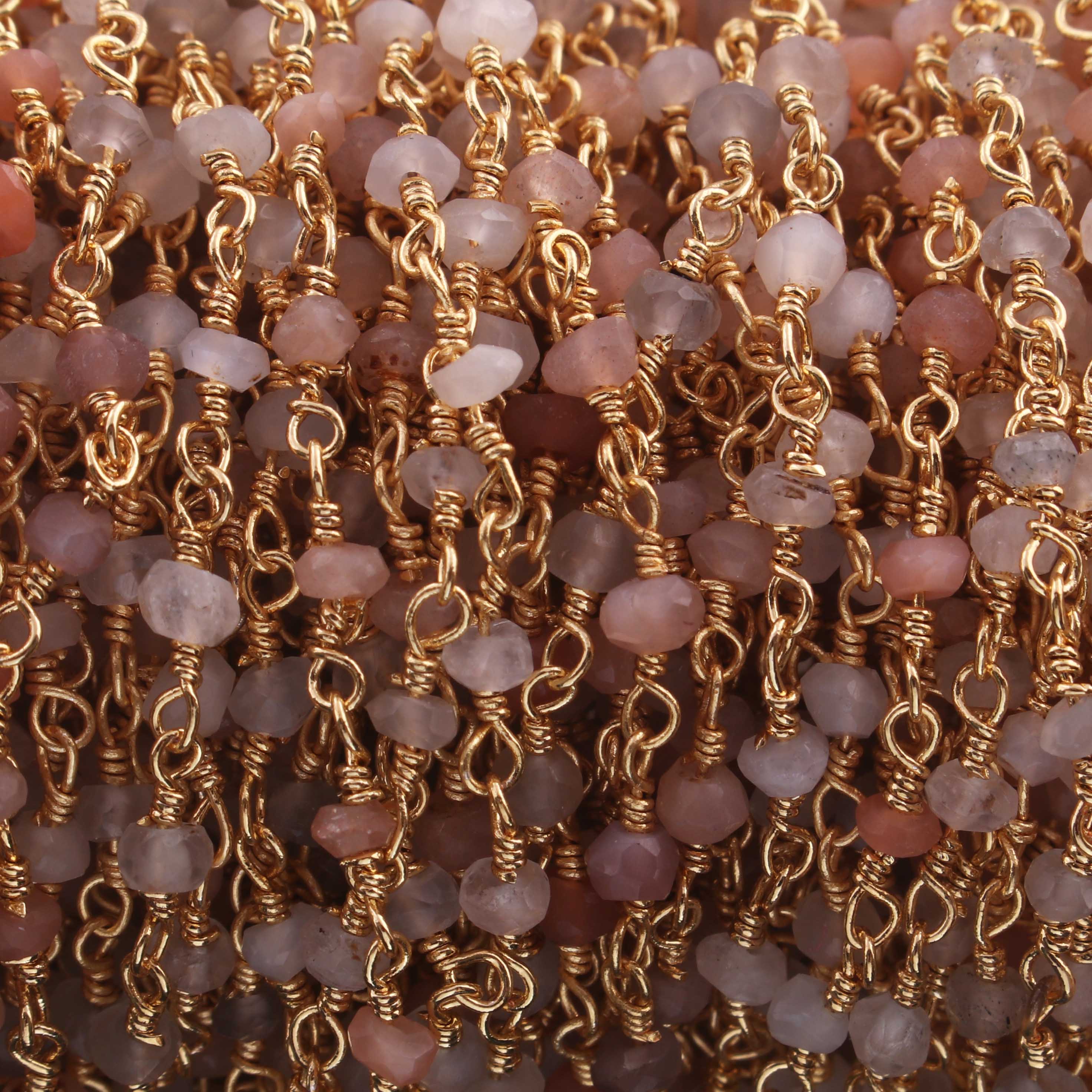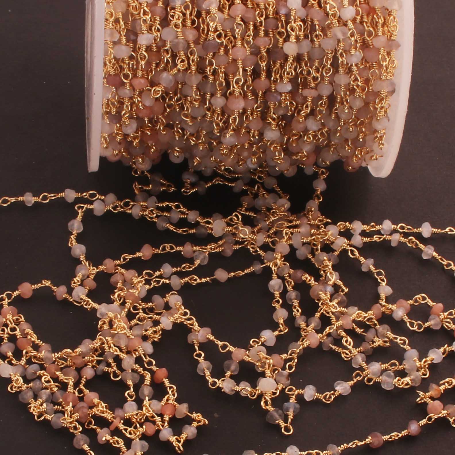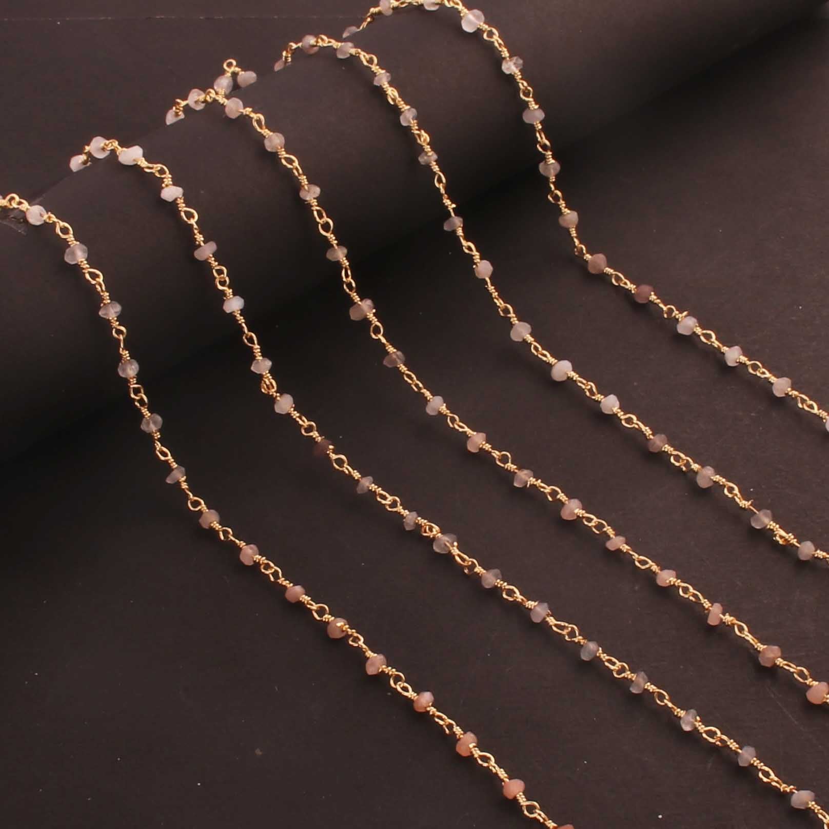 5 Feet Multi Moonstone 3mm 24k Gold Plated Rosary Beaded Chain- Moonstone Beaded Chain- BD020