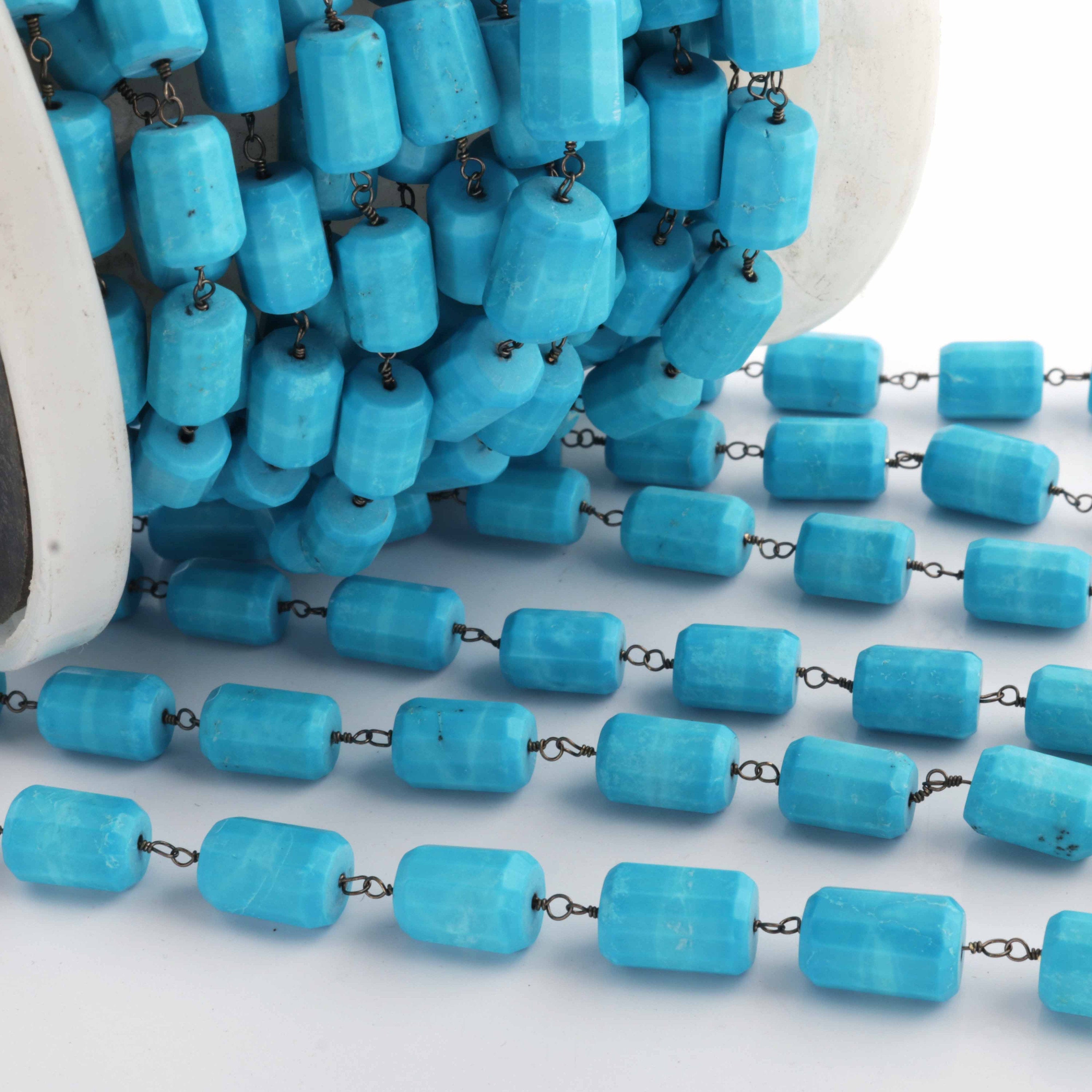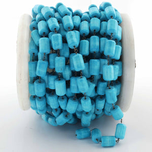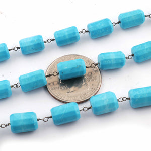 1 Feet Turquoise Nuggets Shape 8mmx6mm-10mmx7mm Oxidized Silver Plated Rosary Beaded Chain - wire wrapped chain SC259