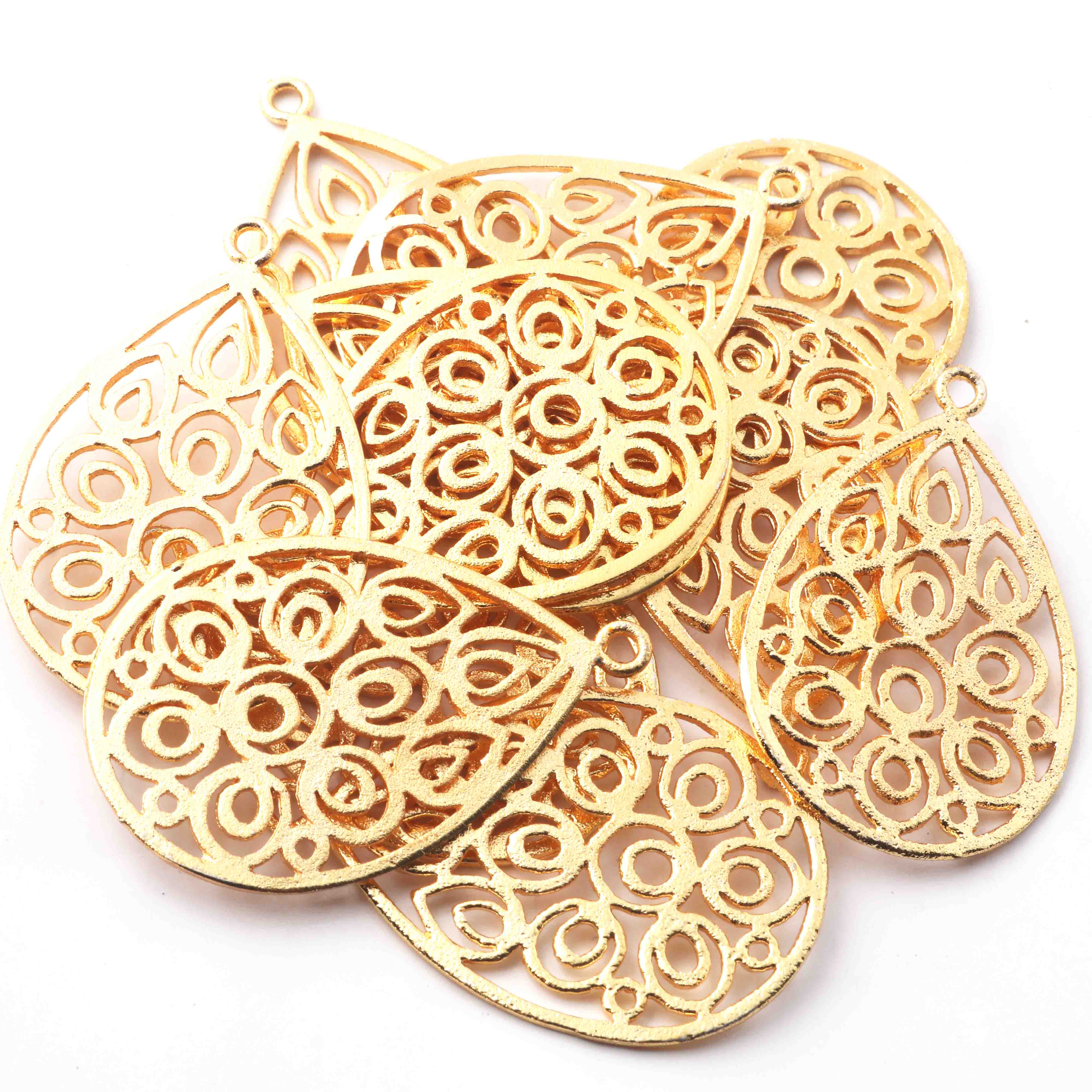 5 Pcs 24k Gold Plated Copper Pear Pendant, Copper Designer Pendant, Jewelry Making Tools, 48mmx35mm, gpc1109