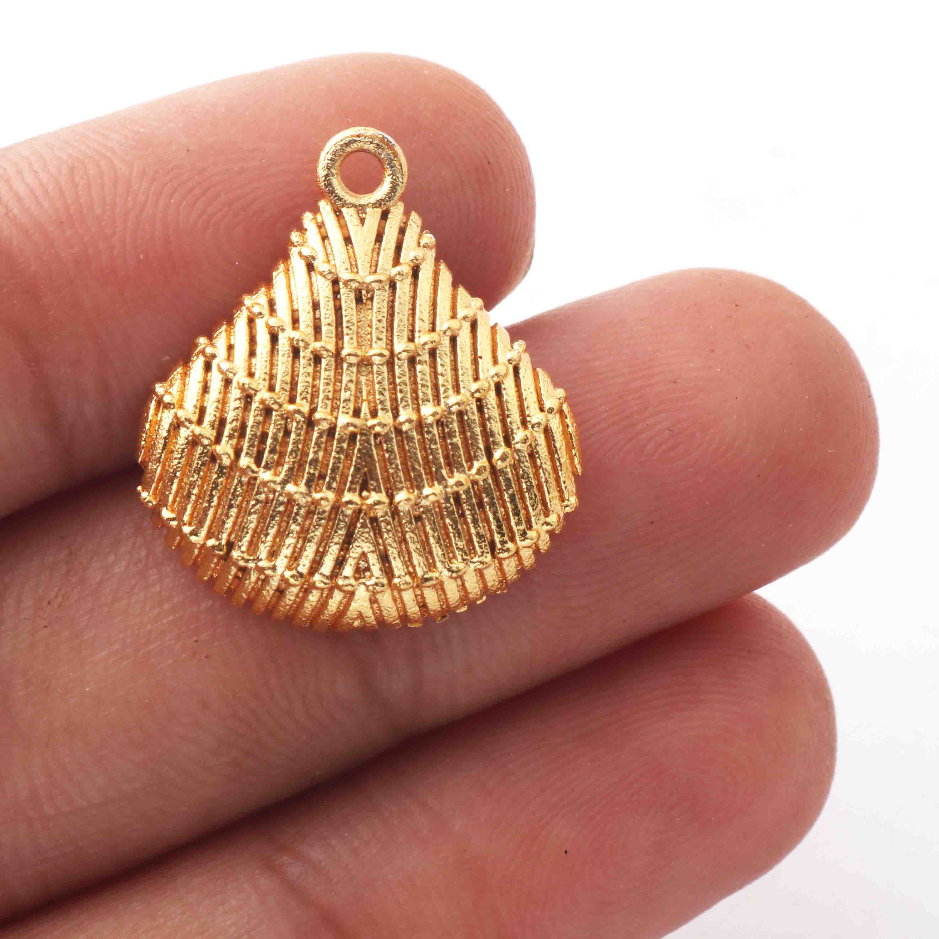 5 Pcs 24k Gold Plated Copper Fancy Pendant, Designer Heart Charm Pendant, Jewelry Making Tools, 20mmx19mm, gpc1136