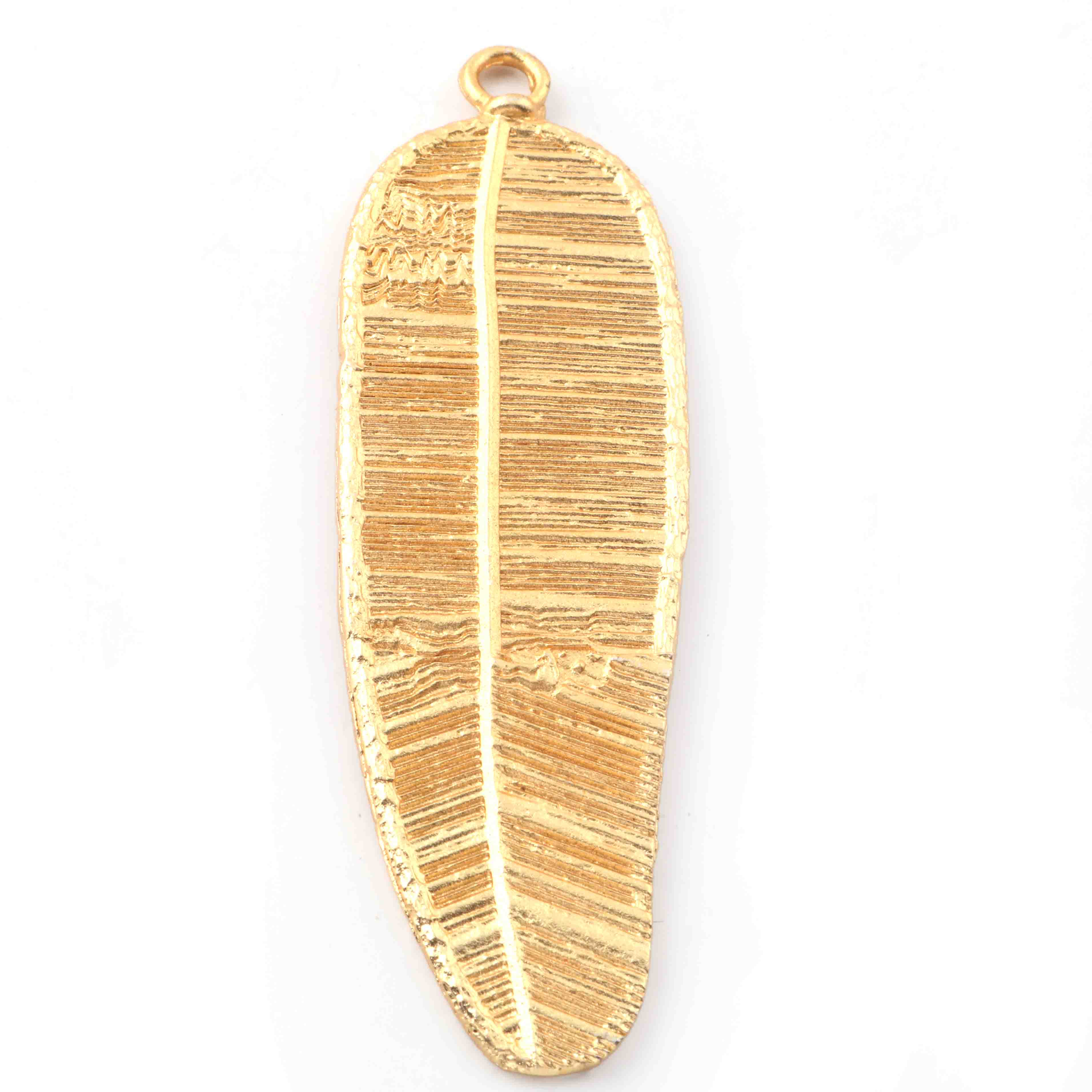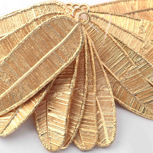 5 Pcs 24k Gold Plated Copper Feather Pendant, Feather Shape Pendant, Casting Copper, Jewelry Making Tools, 68mmx21mm gpc1111