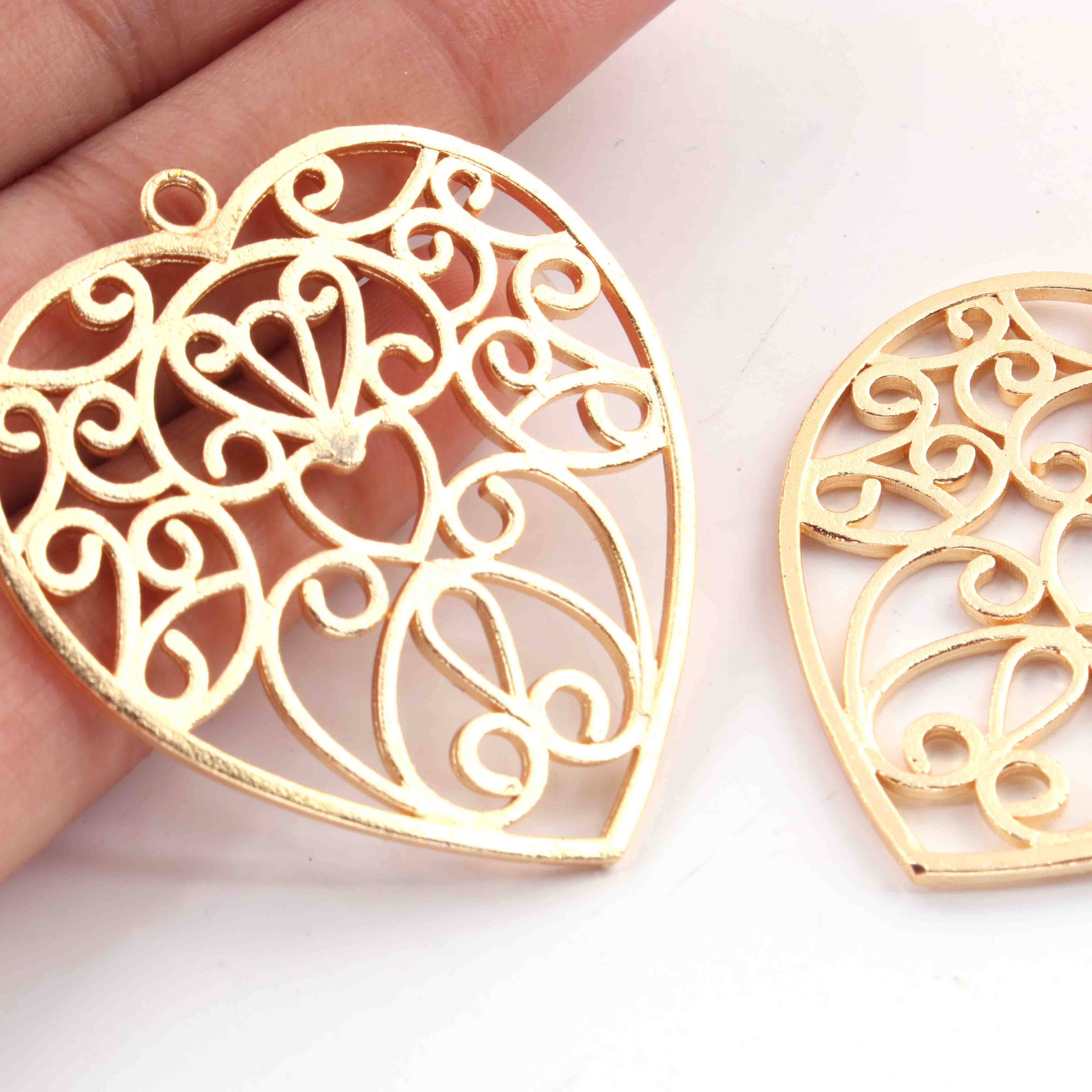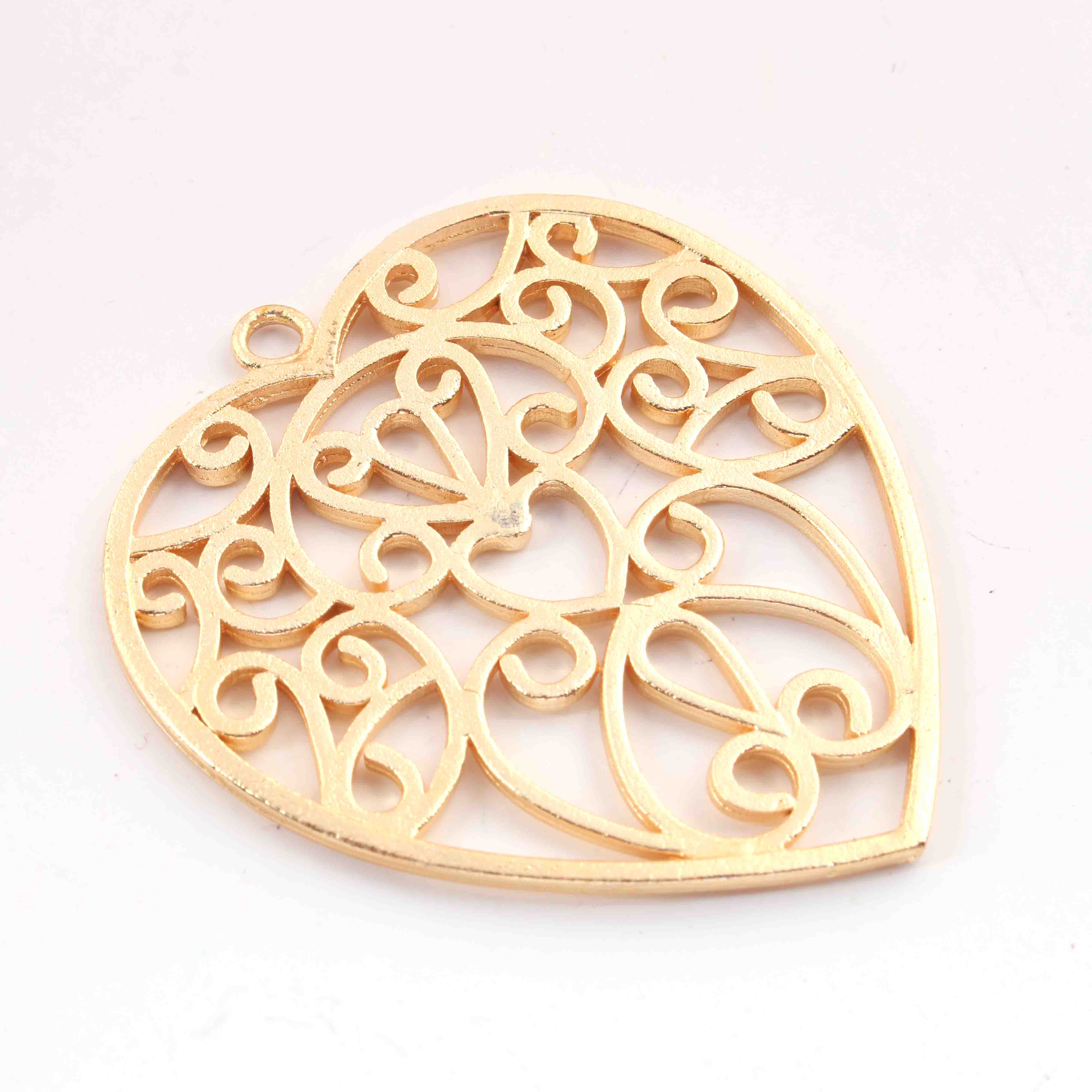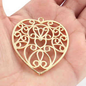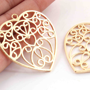 5 Pcs 24k Gold Plated Copper Pendant, Copper Heart Pendant, Jewelry Making Tools, 46mmx43mm, GPC1120