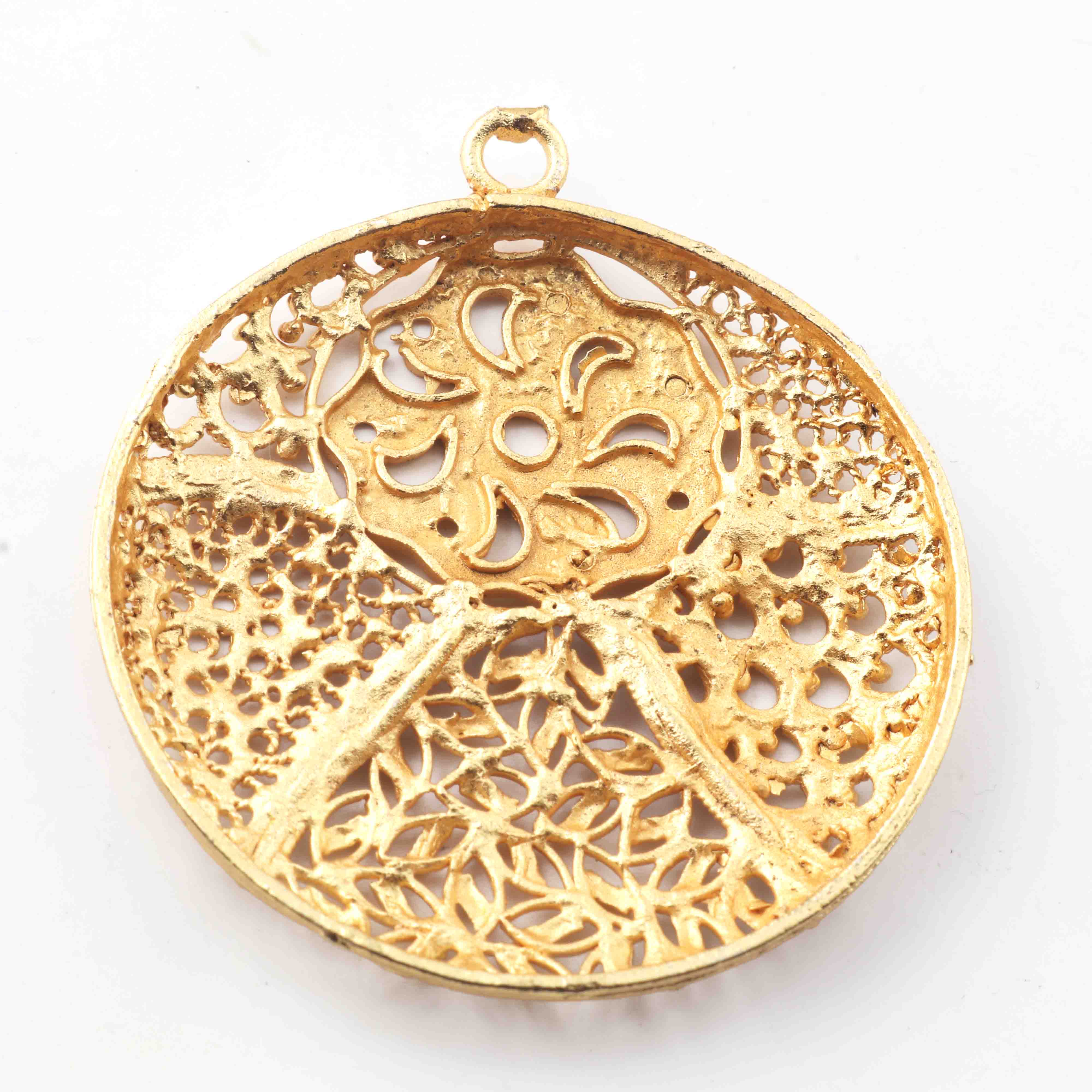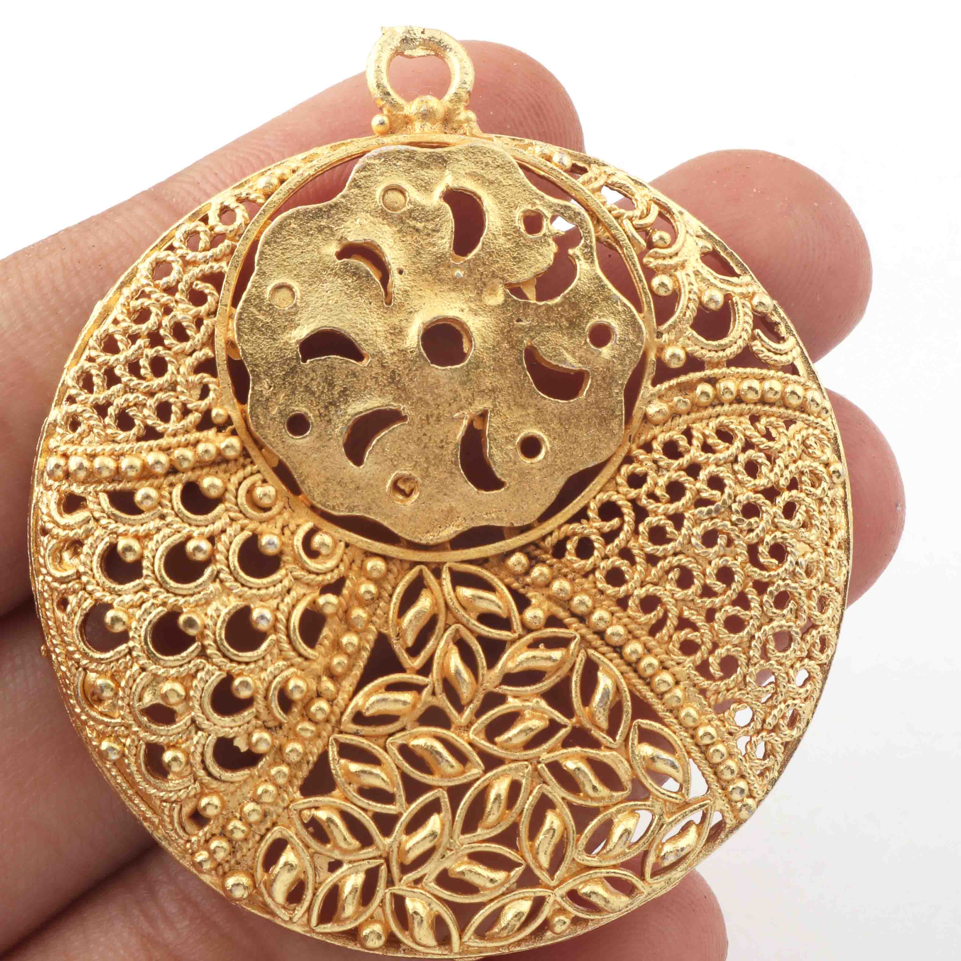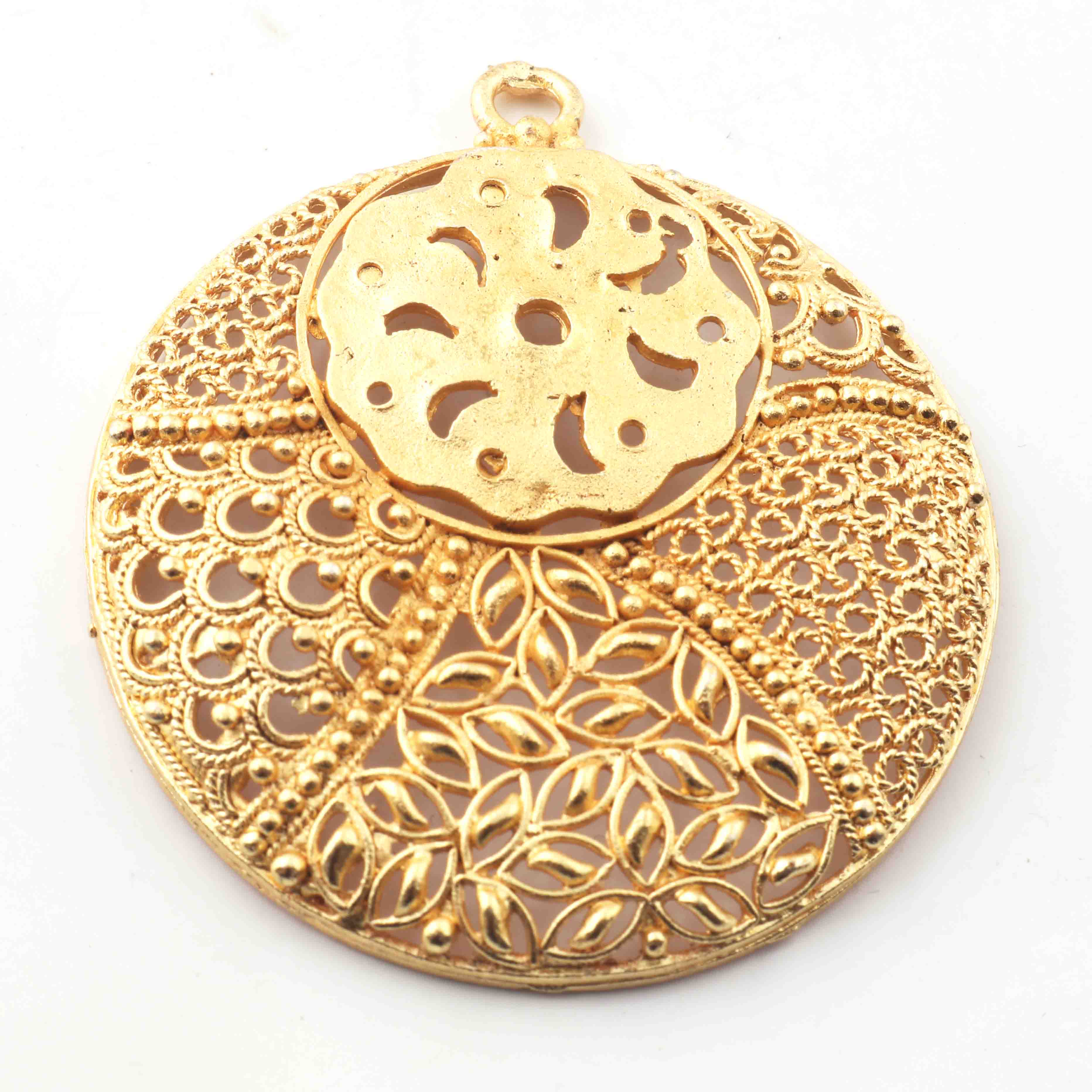 5 Pcs 24k Gold Plated Copper Pendant, Copper Round Pendant, Jewelry Making Tools, 52mmx46mm, gpc1137