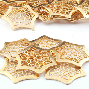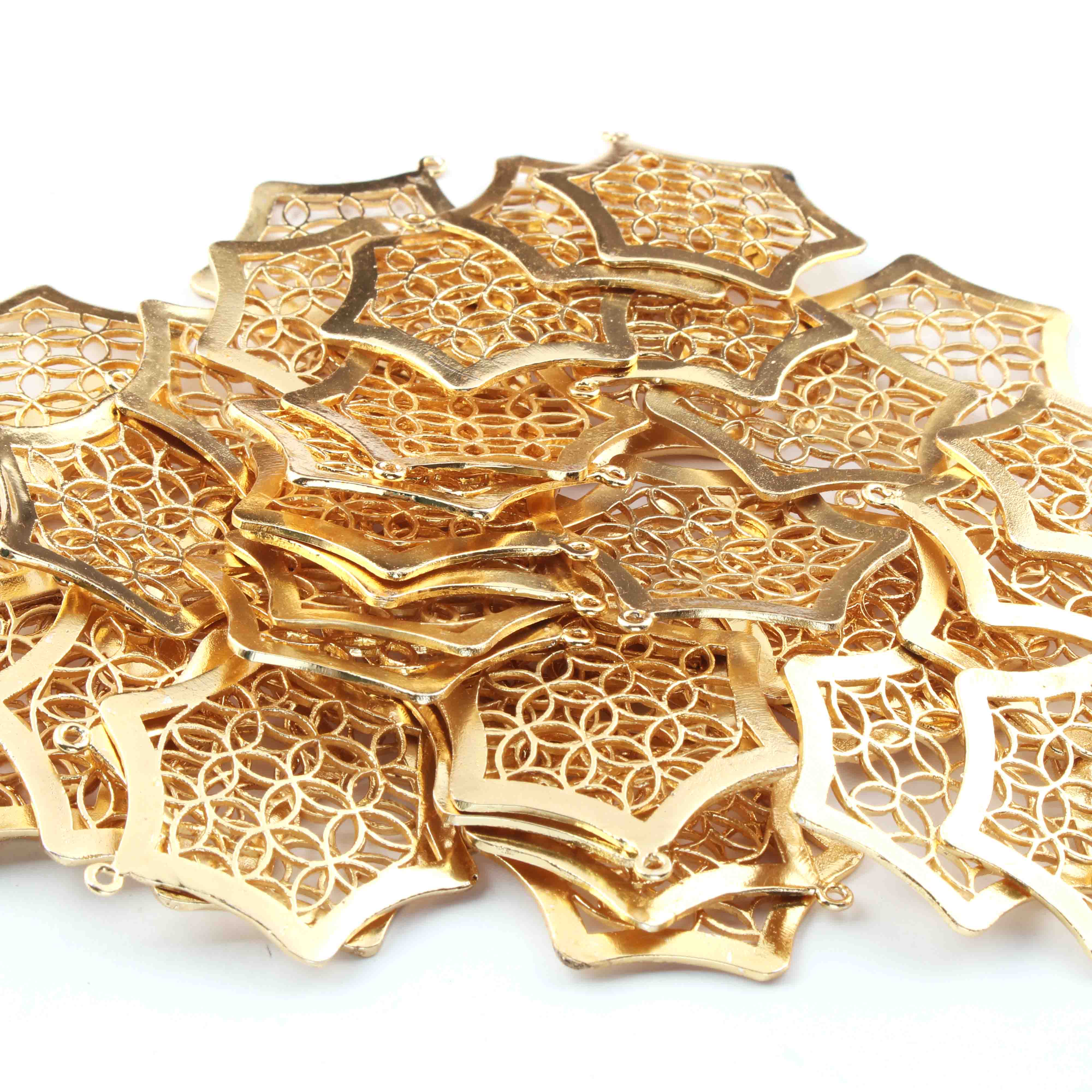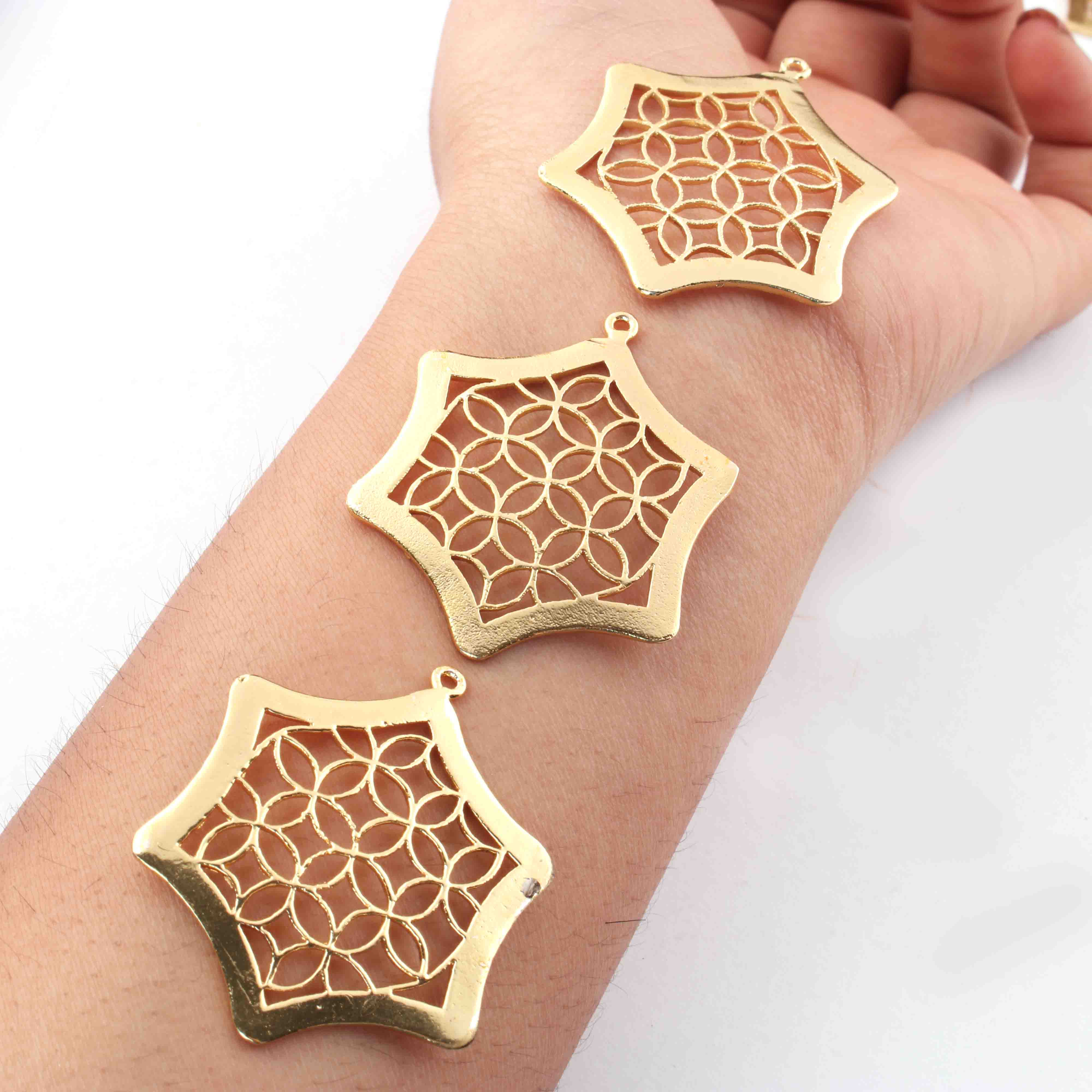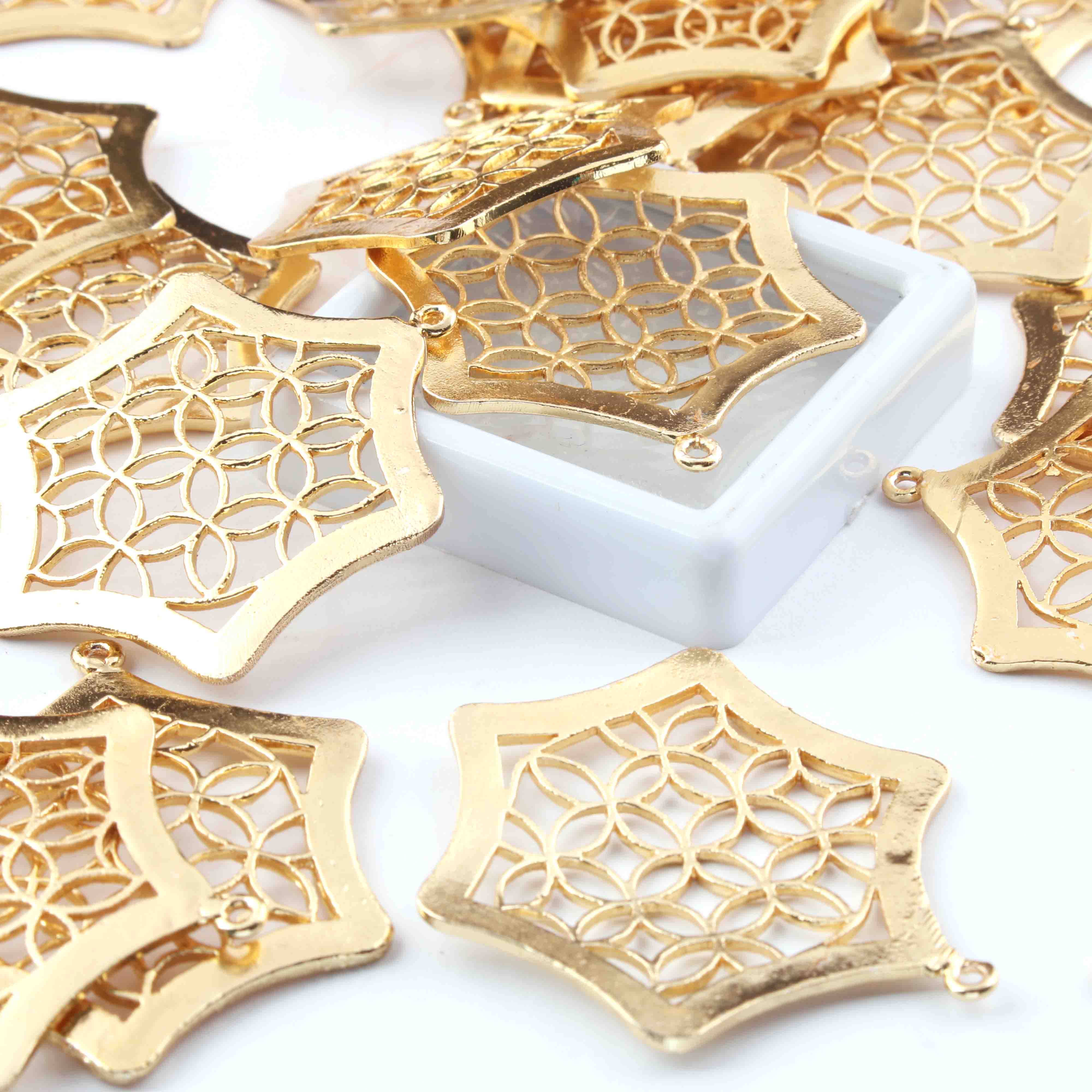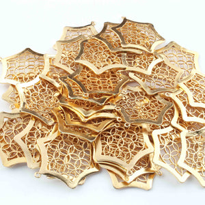 5 Pcs 24k Gold Plated Flower Copper Charm Pandent, Designer Flower Charm, Jewelry Making Tools, 42mmx30mm GPC1456