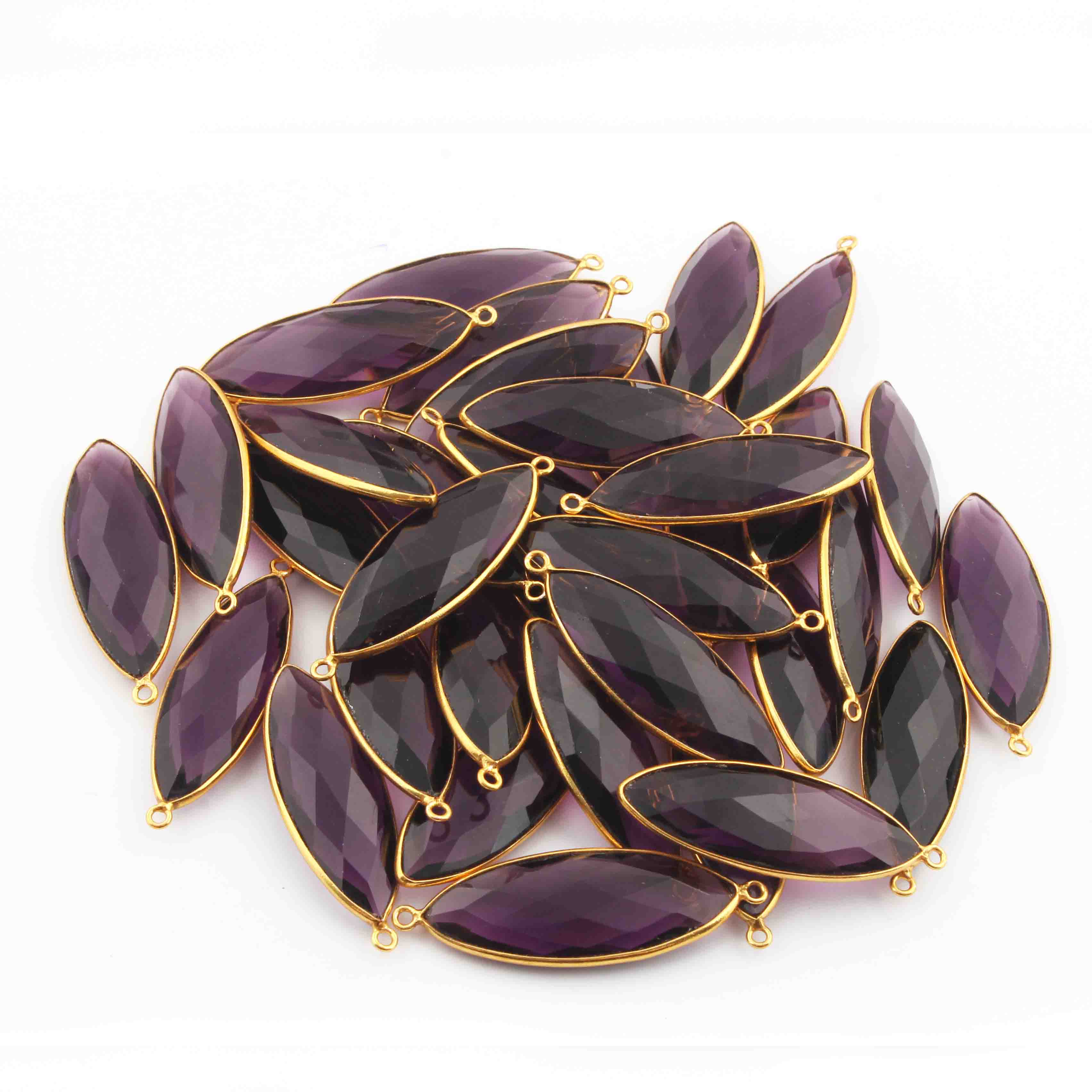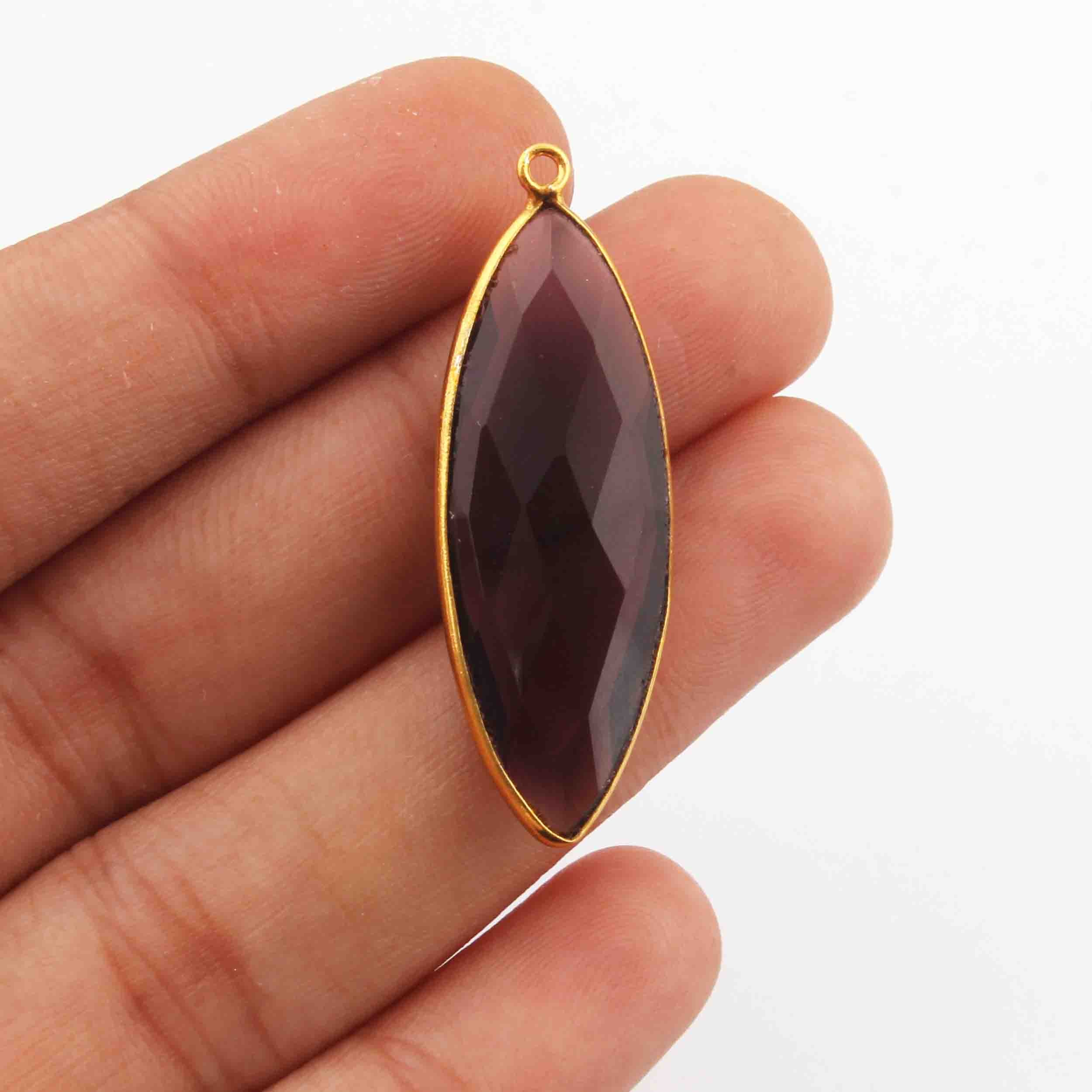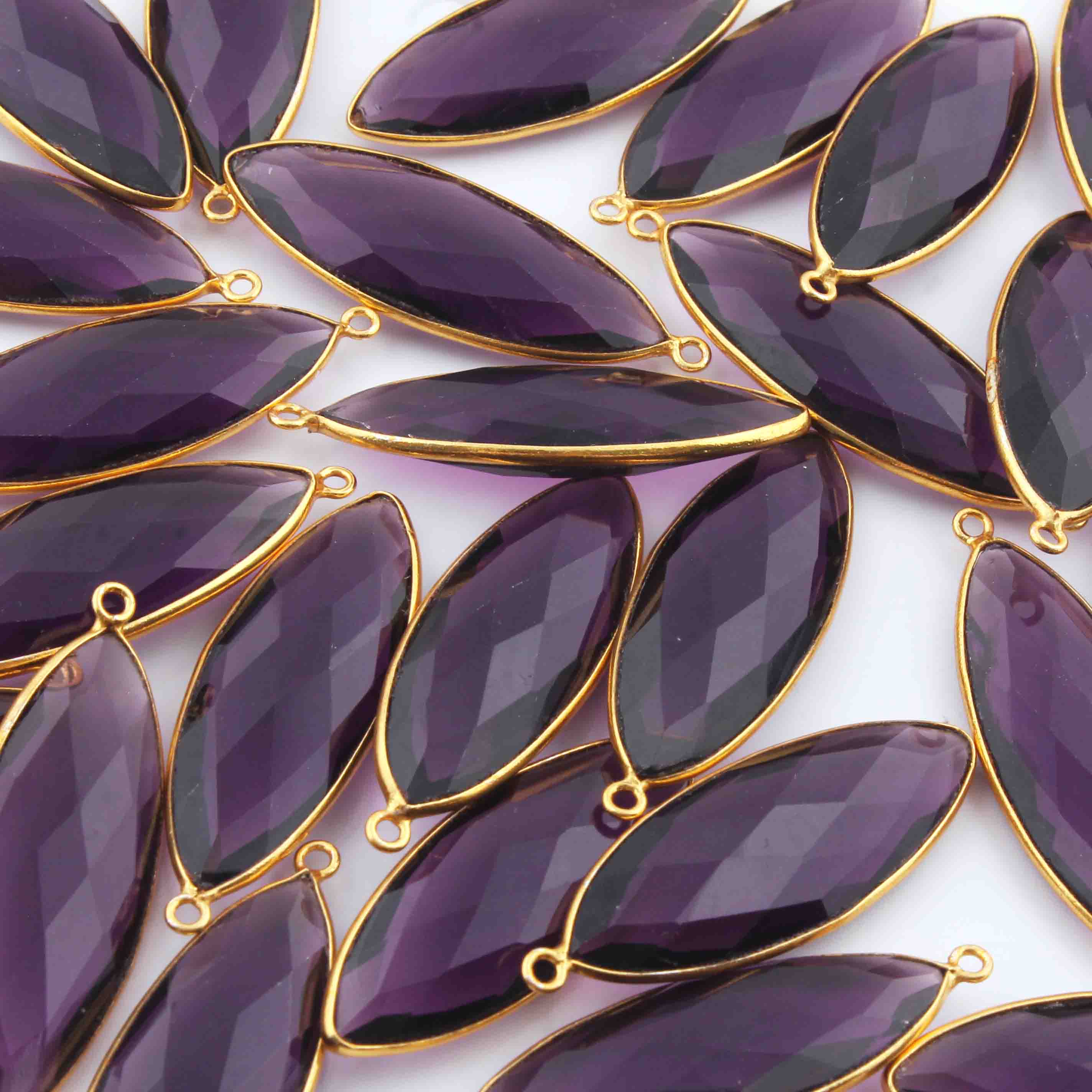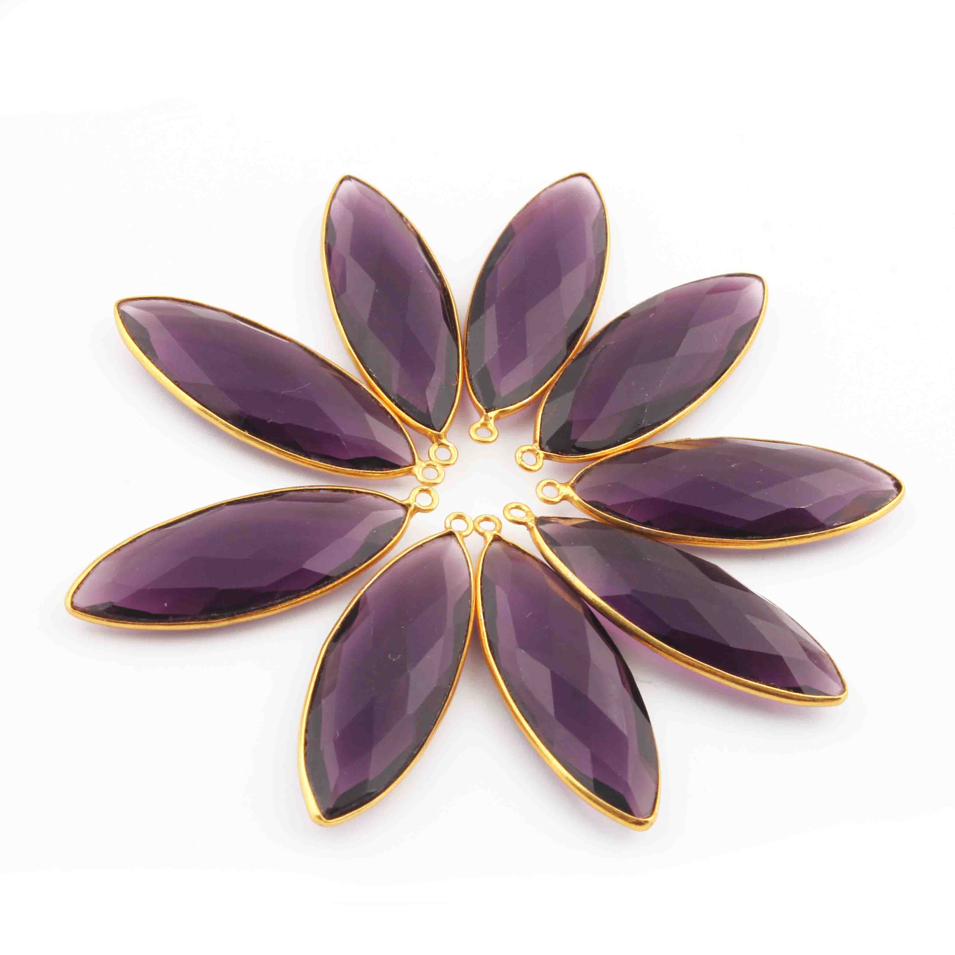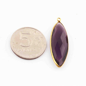 5 Pcs Amethyst Faceted 925 Sterling Vermeil Marquise Shape Pendant 41mmx13mm-39mmx13mm SS905