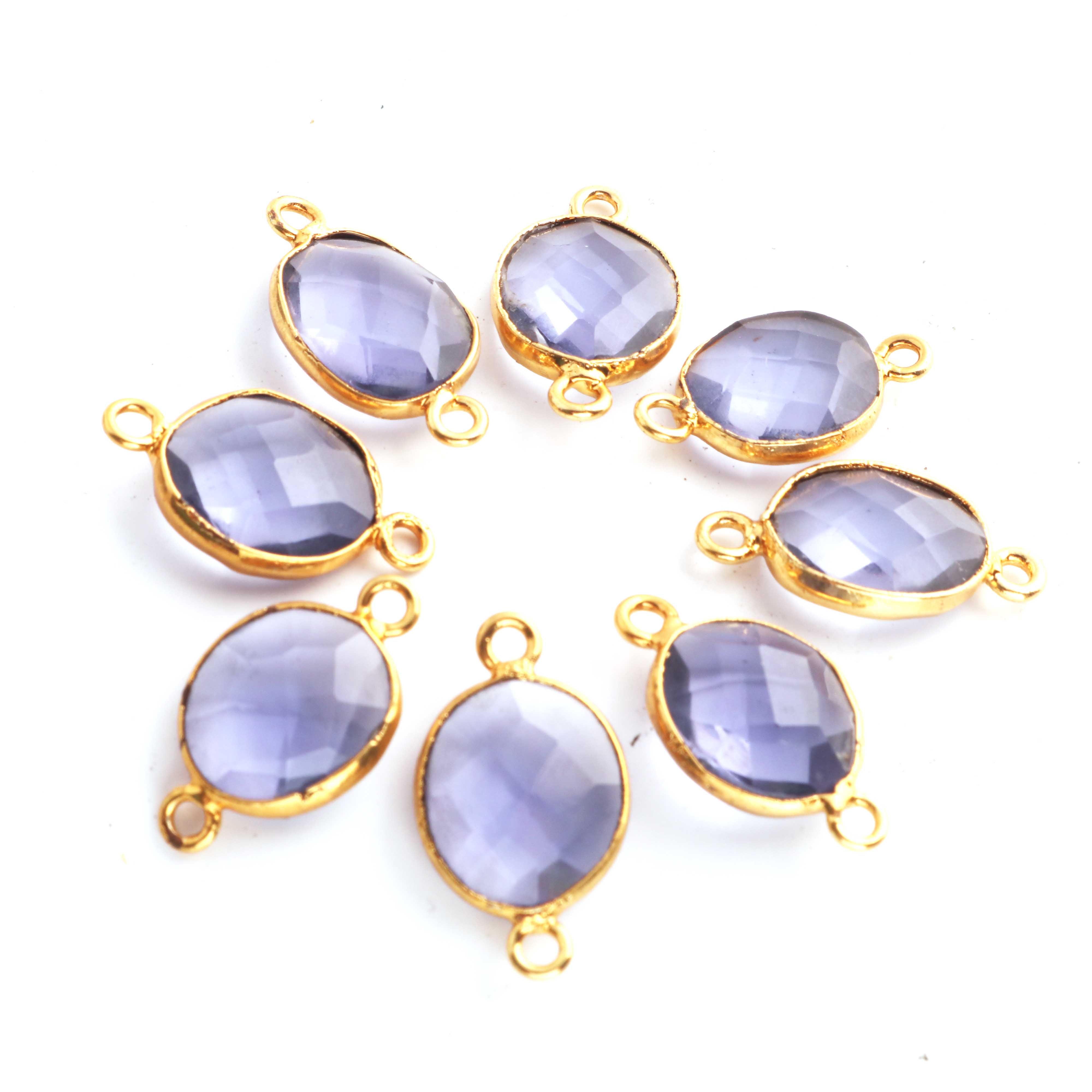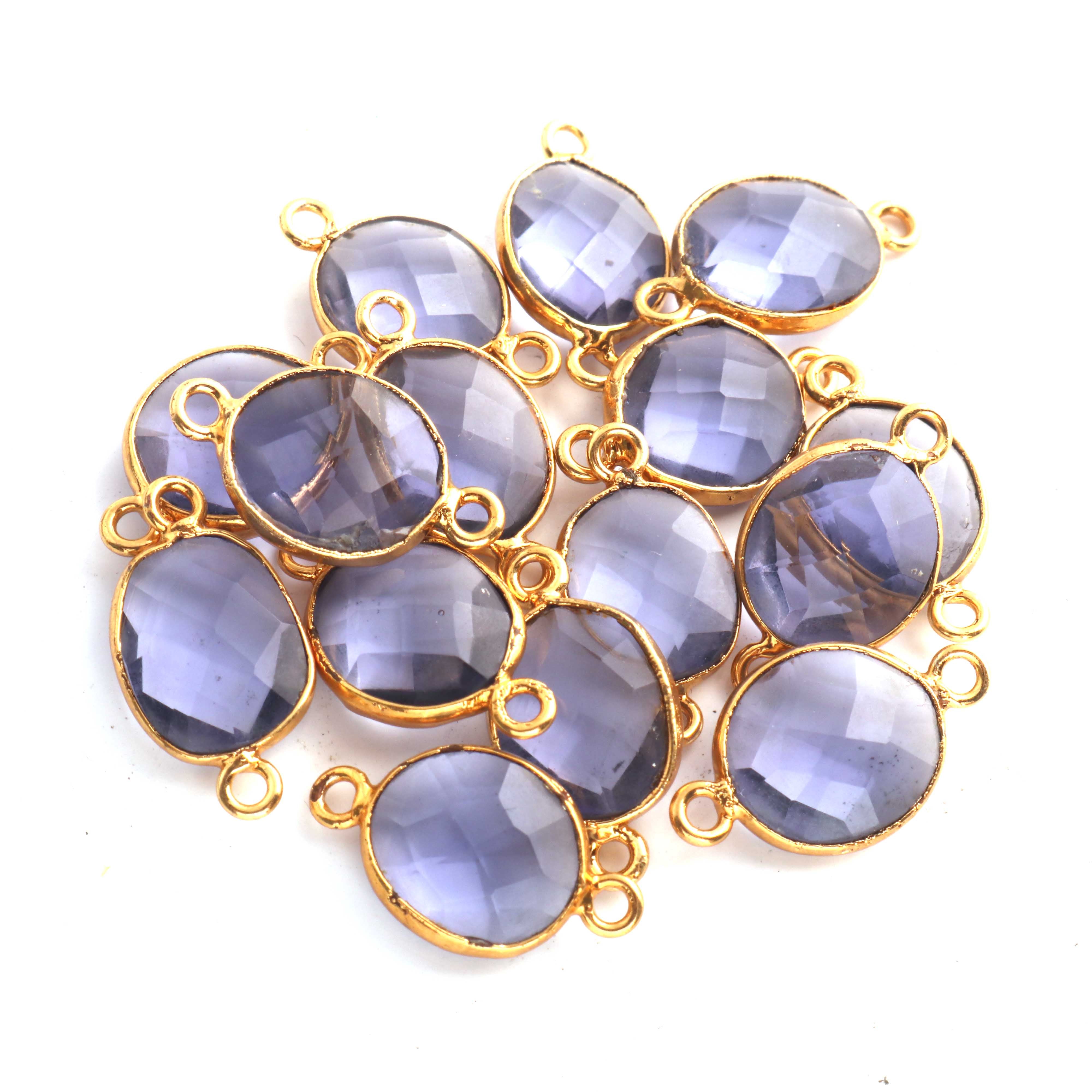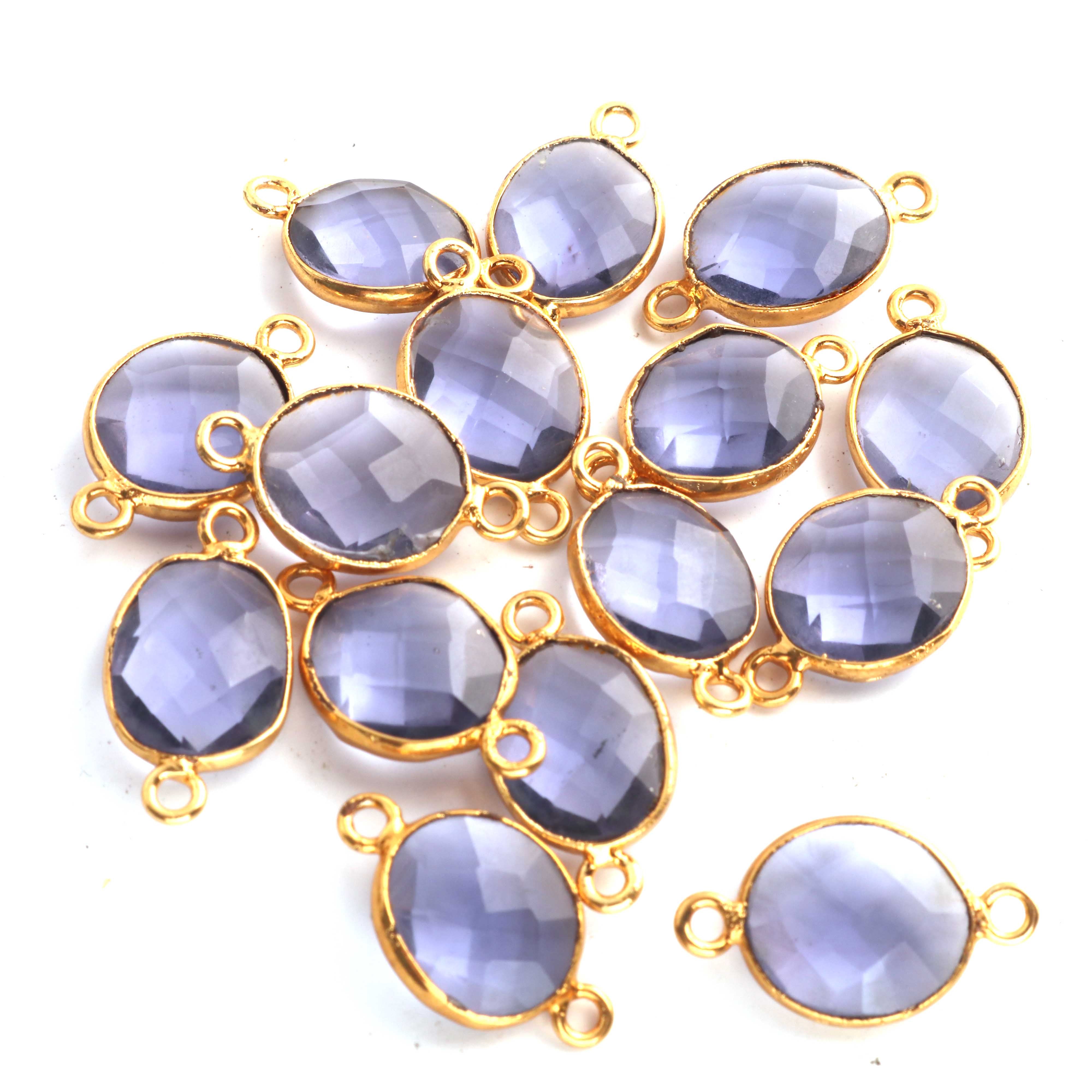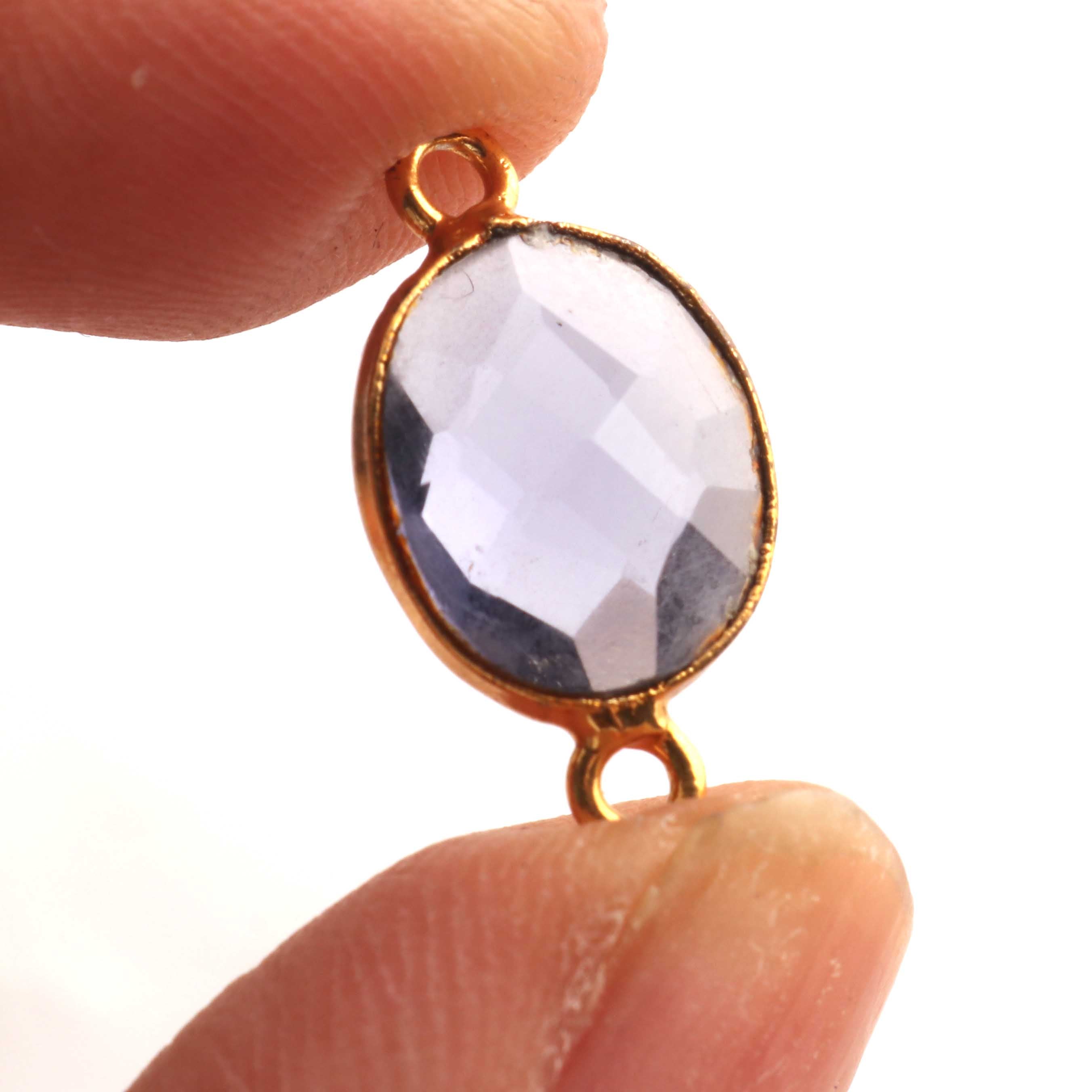 5 Pcs Iolite Oval Shape 24k Gold Plated Connector, Gemstone Connector 18mmx10mm PC149