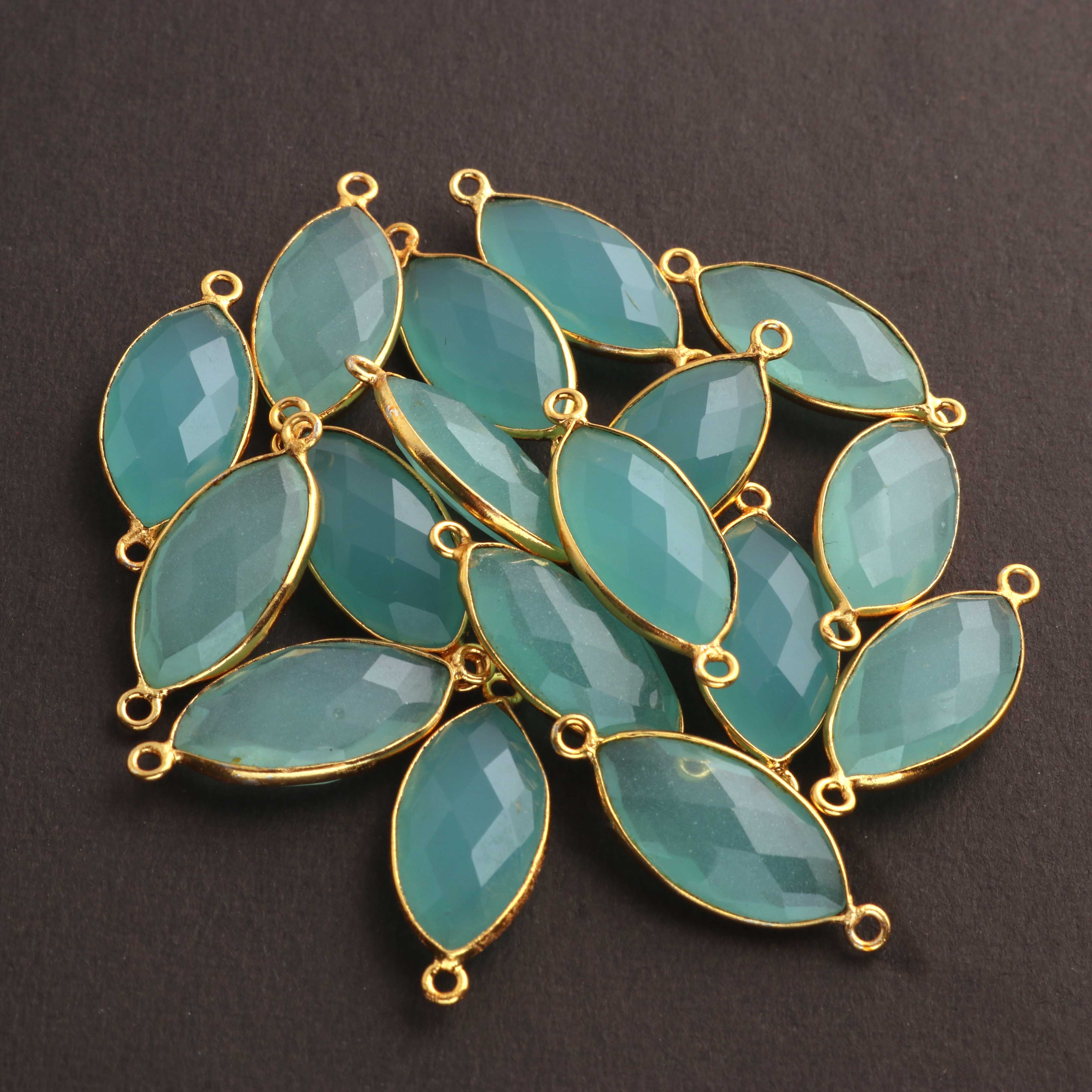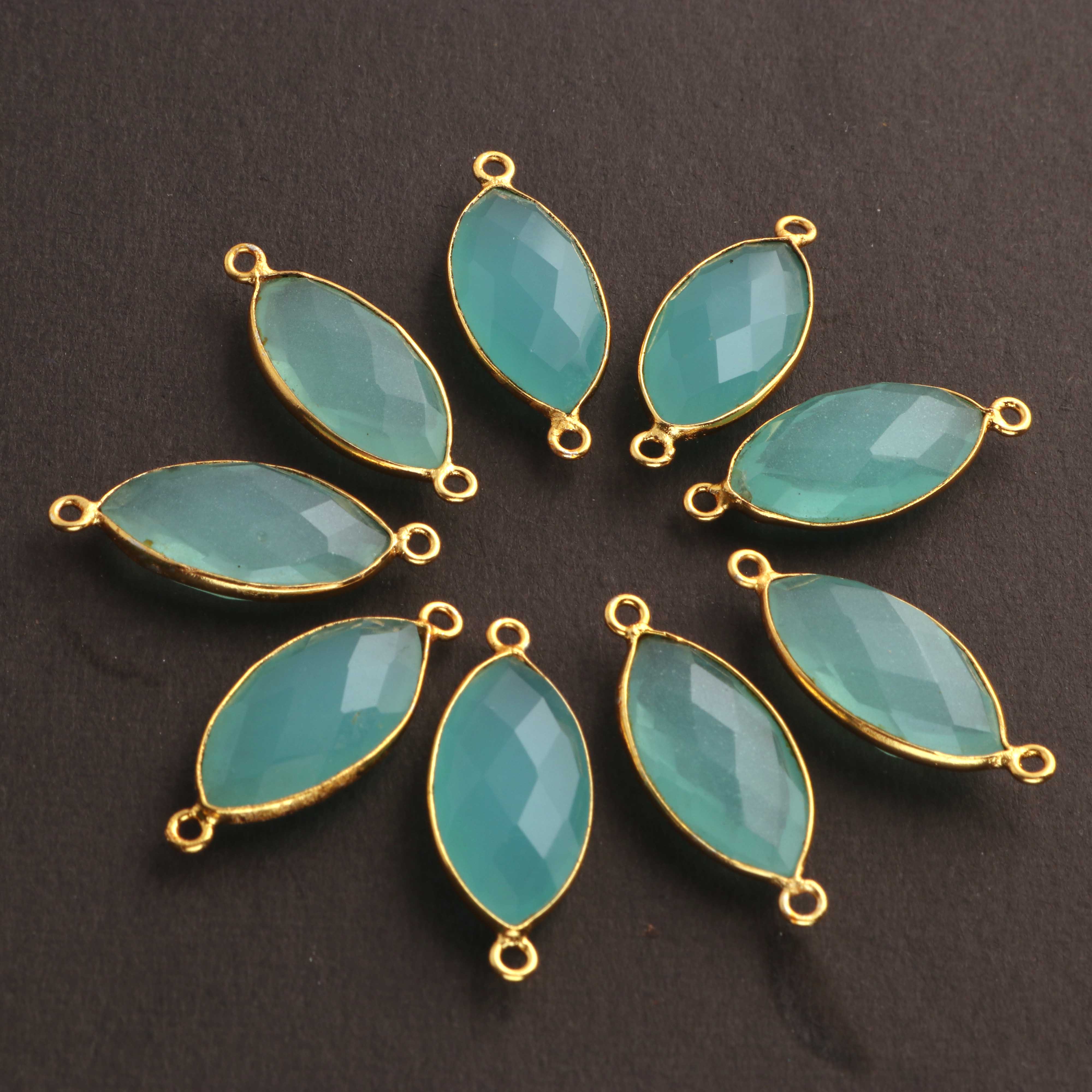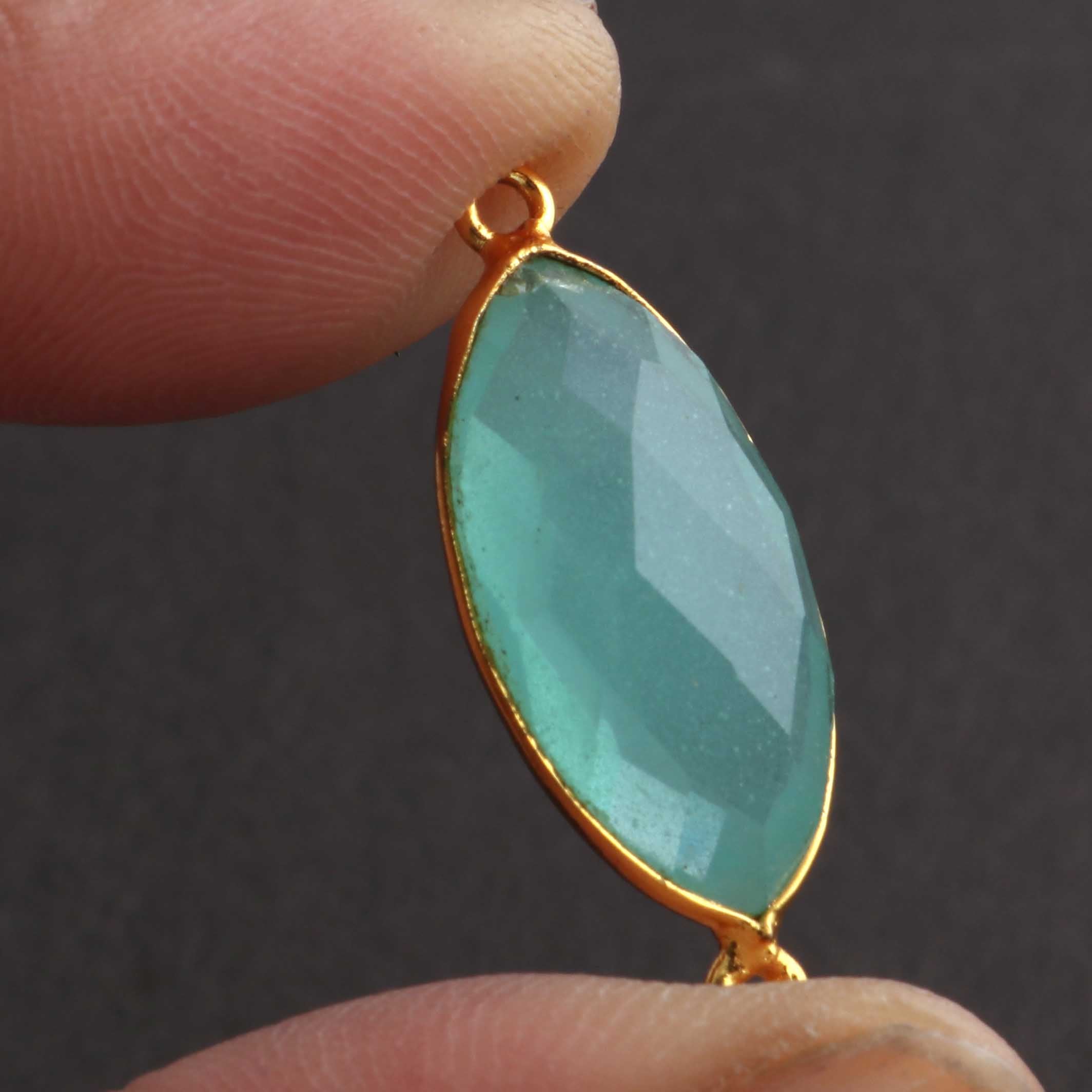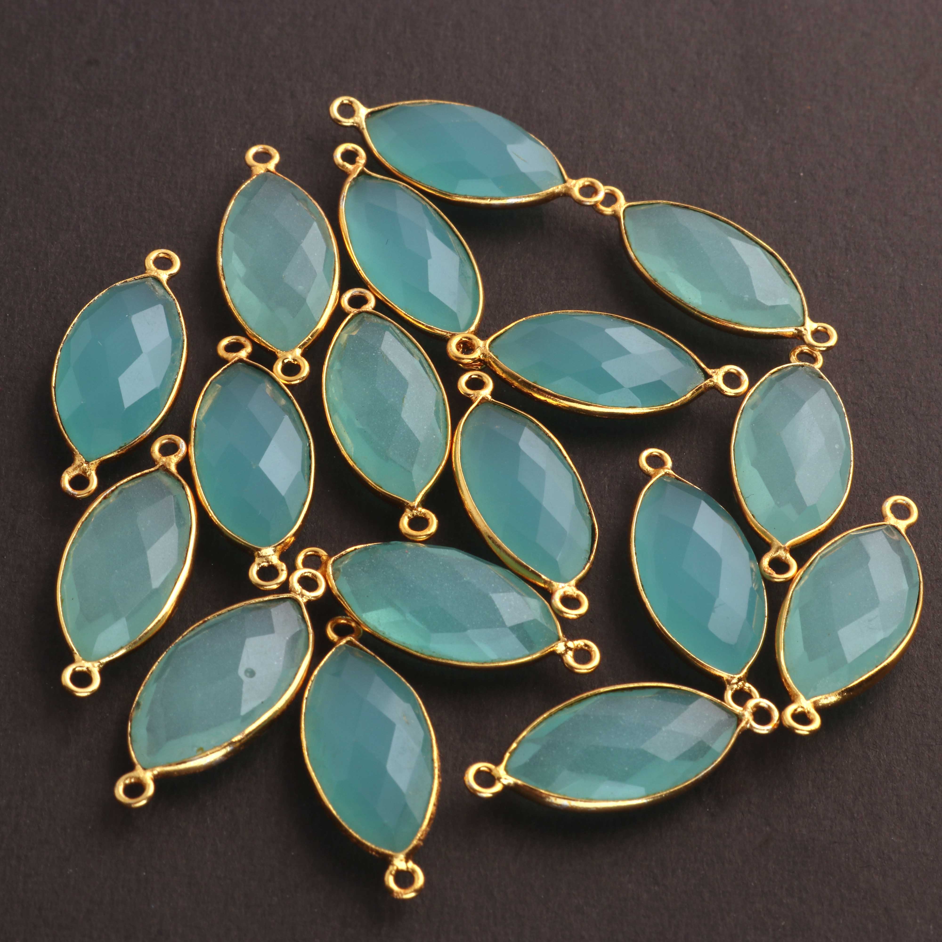 5 Pcs Aqua Chalcedony 24k Gold Plated Faceted Marquise  Shape Connector- Aqua Chalcedony Bezel Double Bail Connector 24mmx11mm-PC812