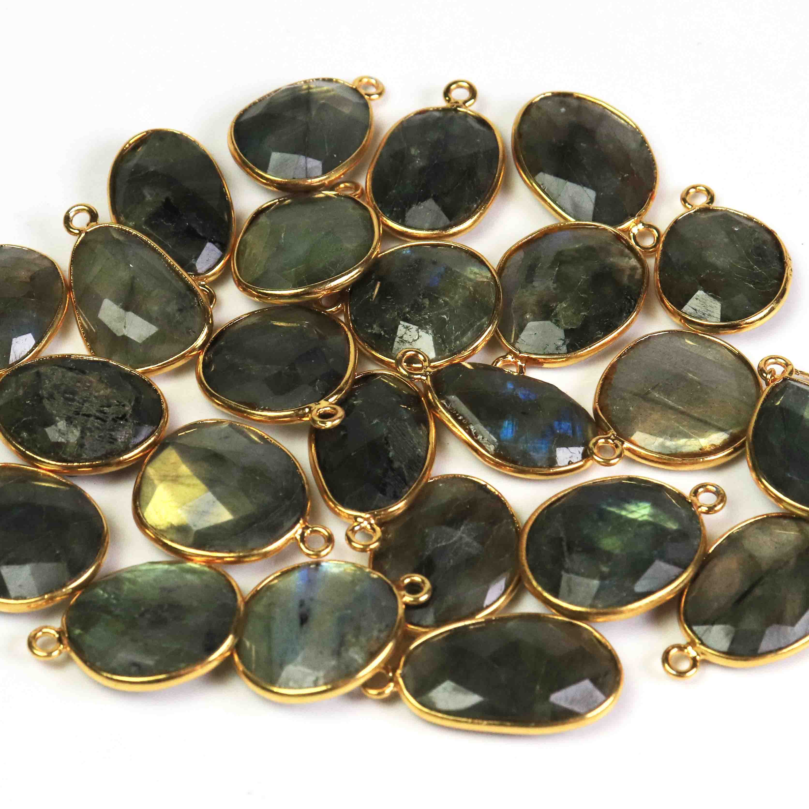 5 Pcs Beautiful Labradorite Blue Flesh 24k Gold Plated Faceted Assorted Shape Single Bail Pendant- 19mmx15mm-21mmx13mm PC633