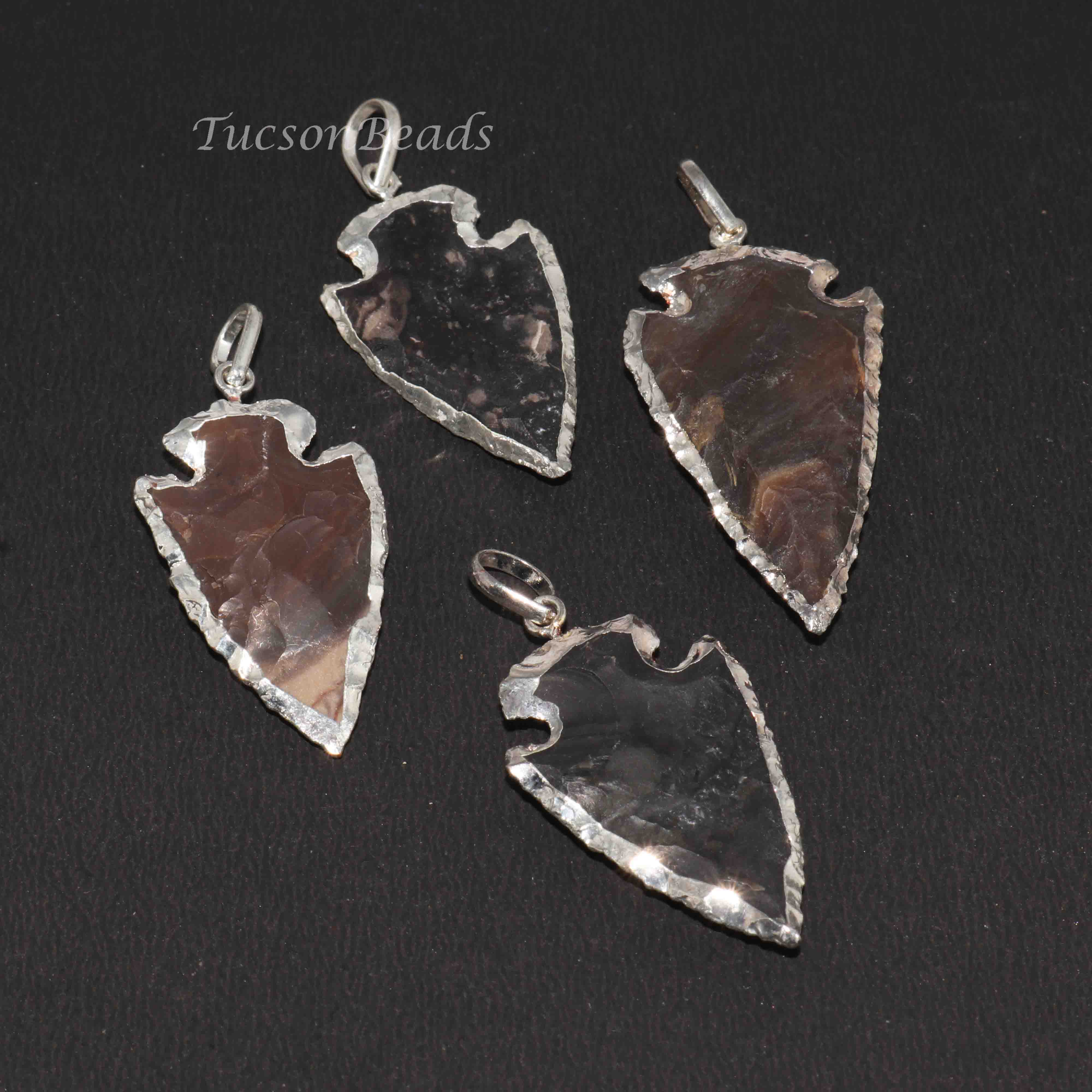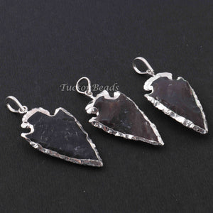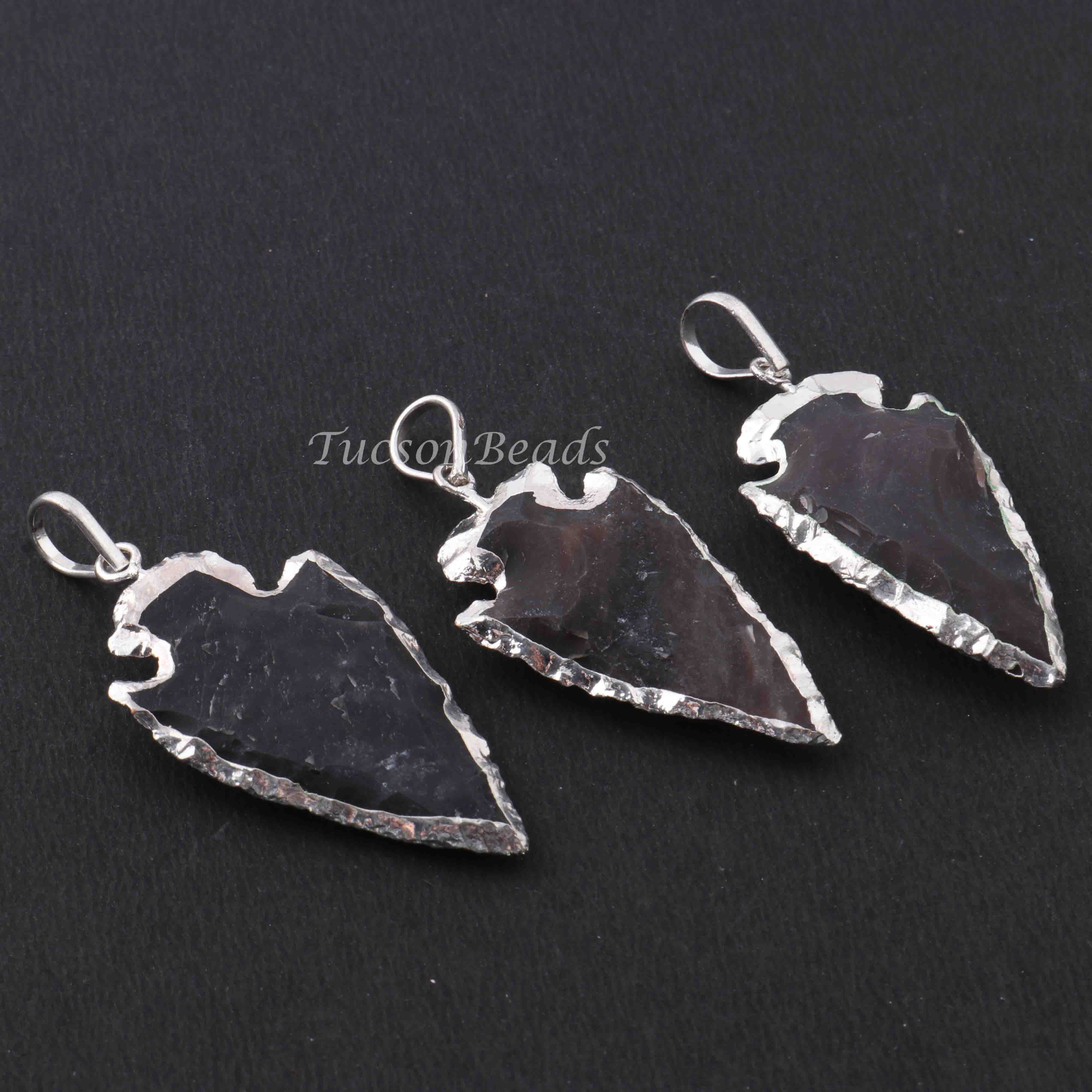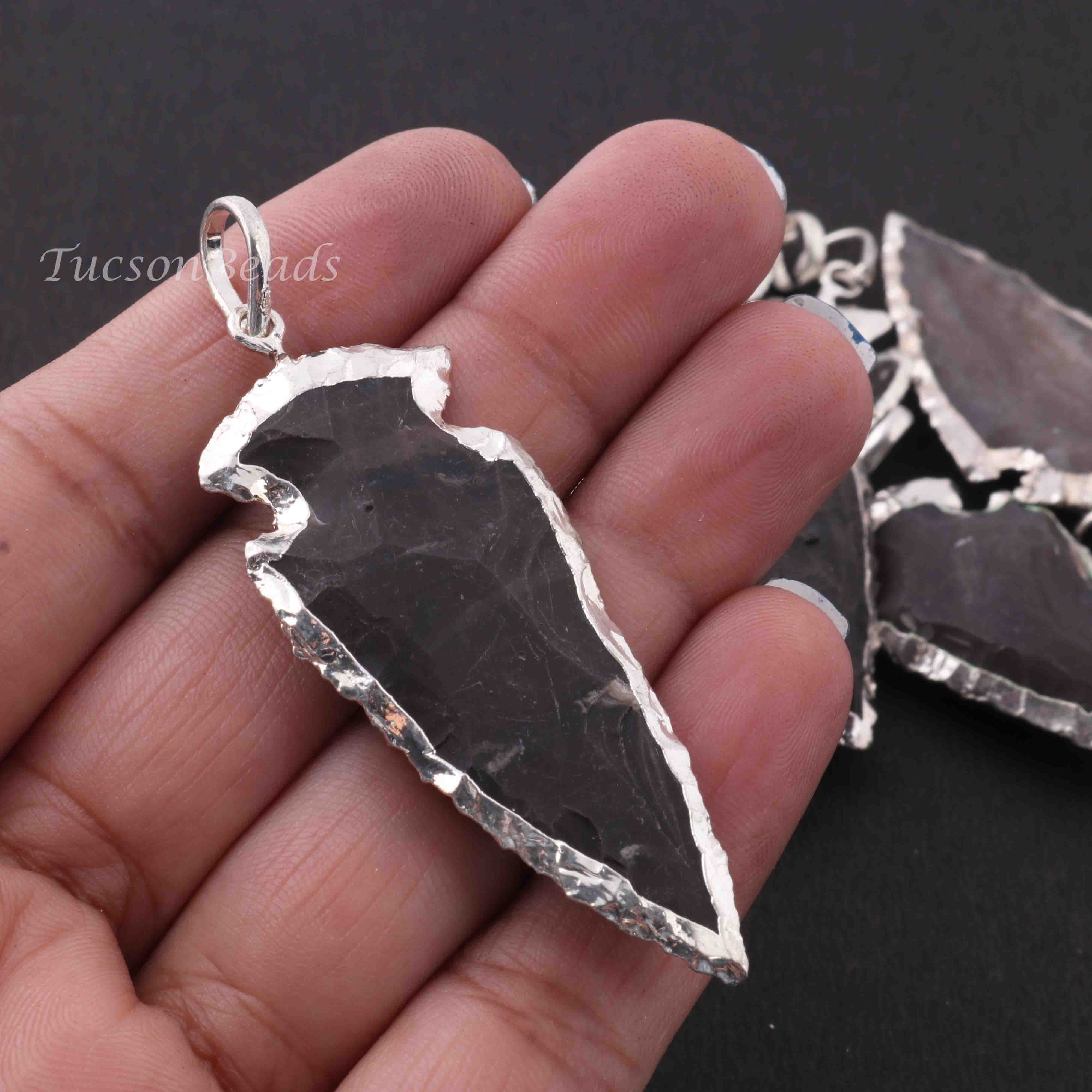 Listing Is For 15 Pcs Black Jasper Arrowhead 925 Silver Plated Charm Pendant - Electroplated With Silver Edge 41mmx26mm-11mmx7mm AR277