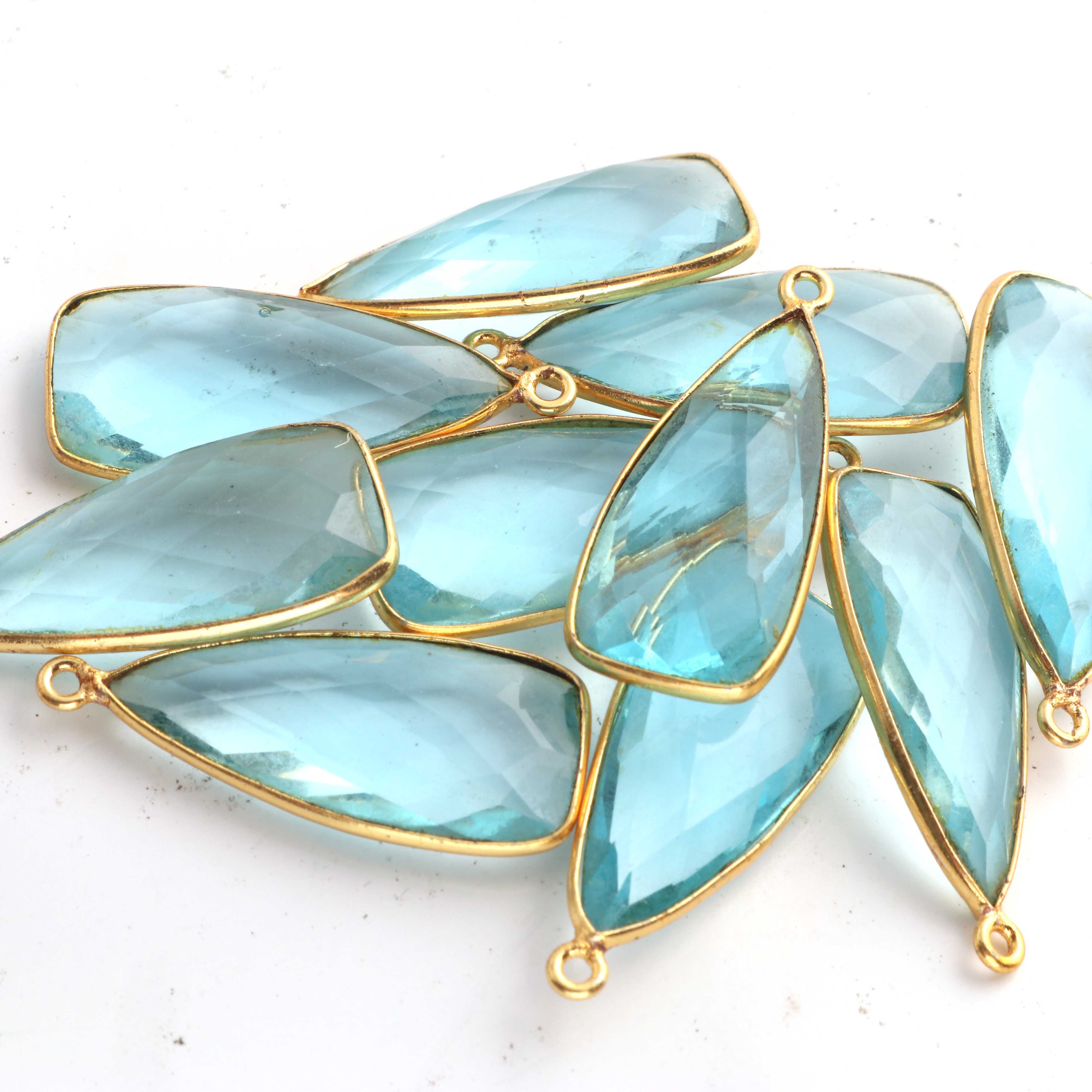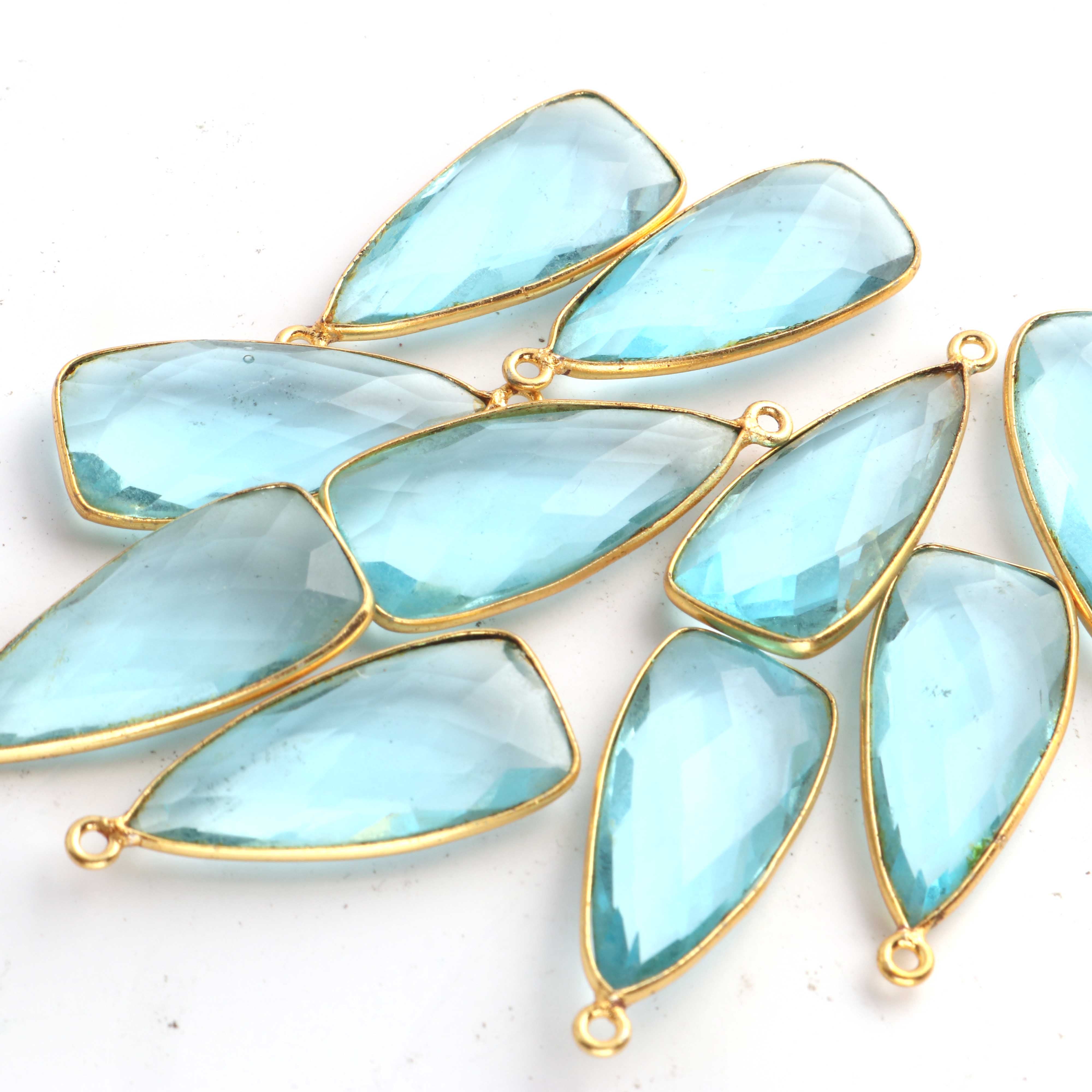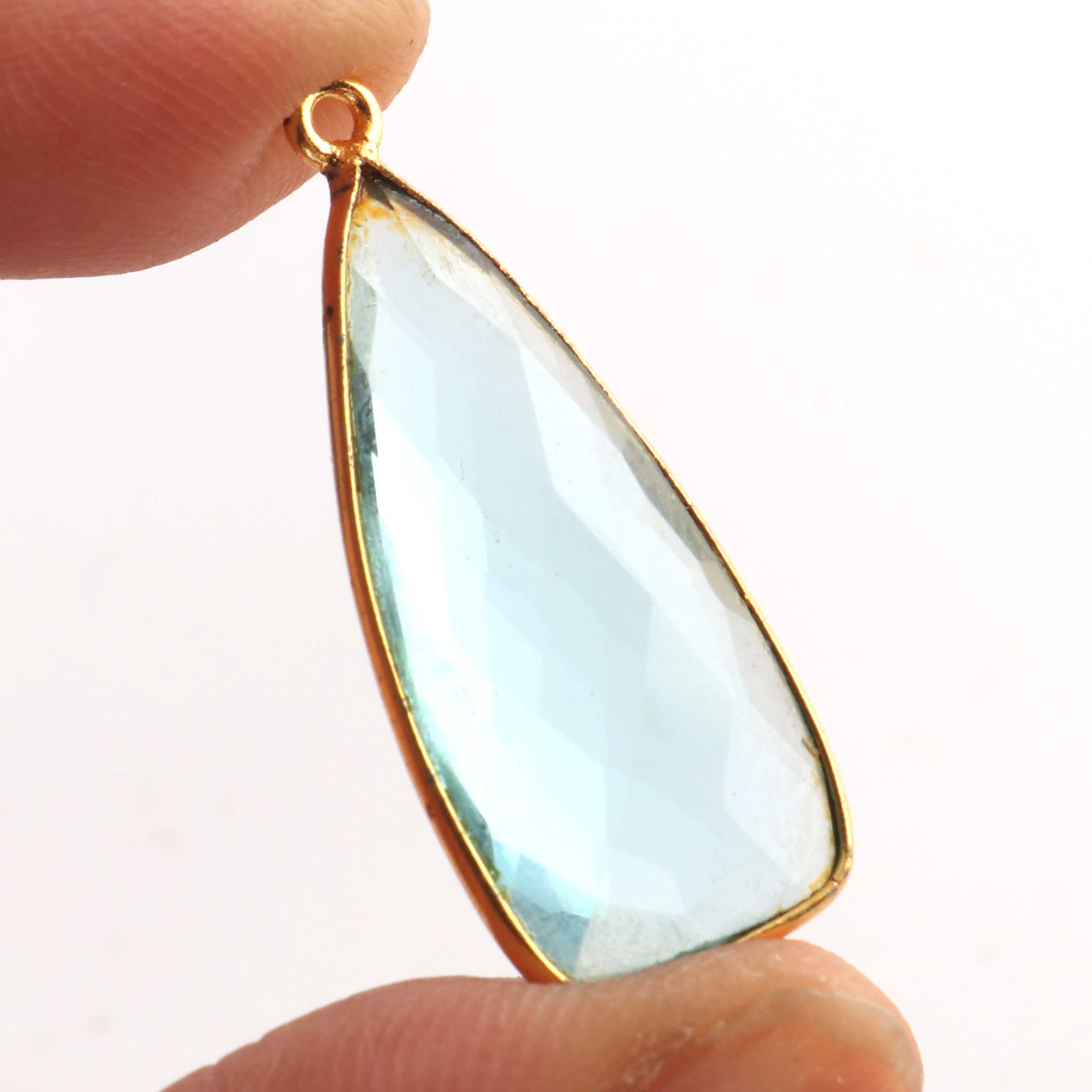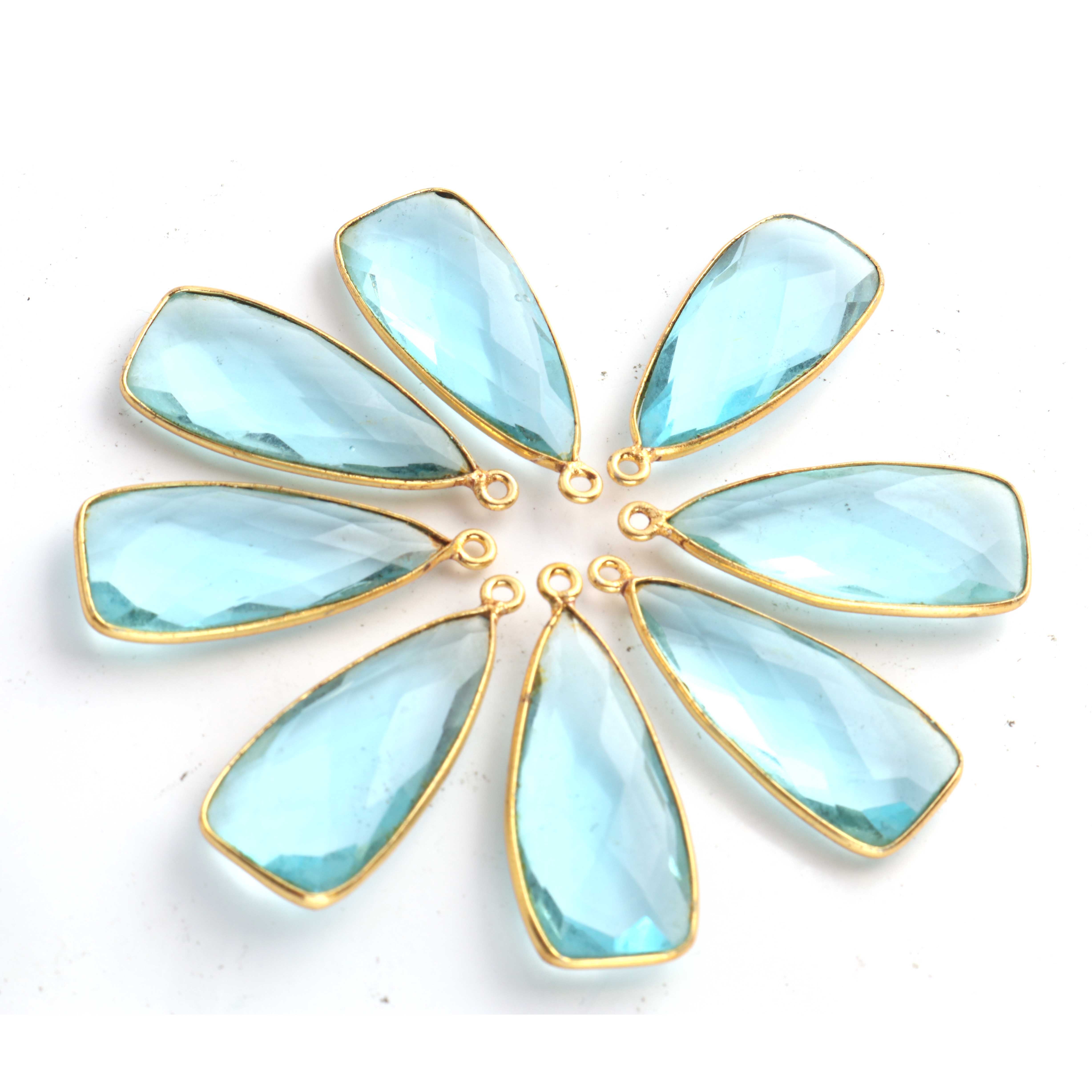 5 Pcs Blue Topaz Faceted Dagger Shape 24k Gold Plated Pendant , Blue Topaz Pendant 32mmx13mm PC083