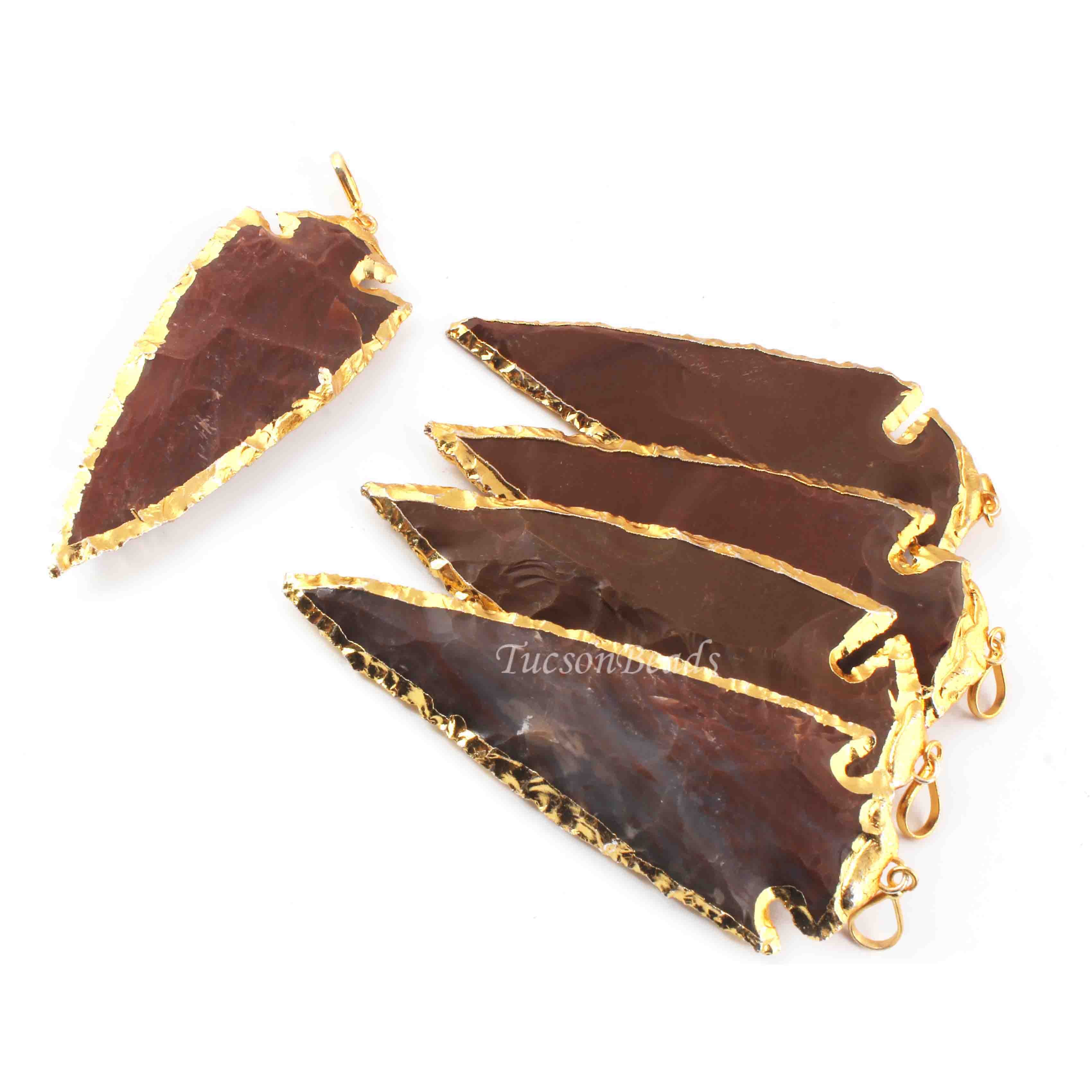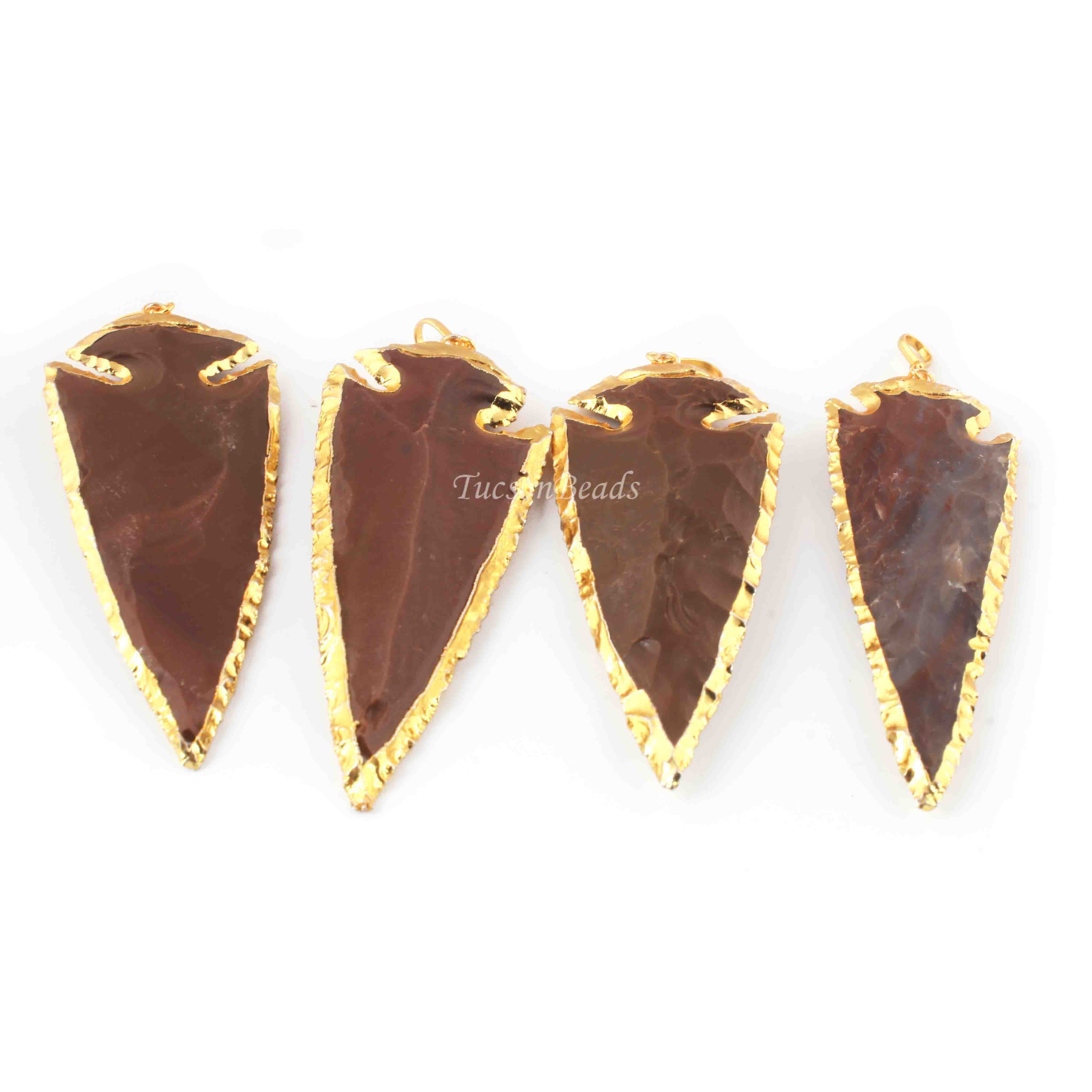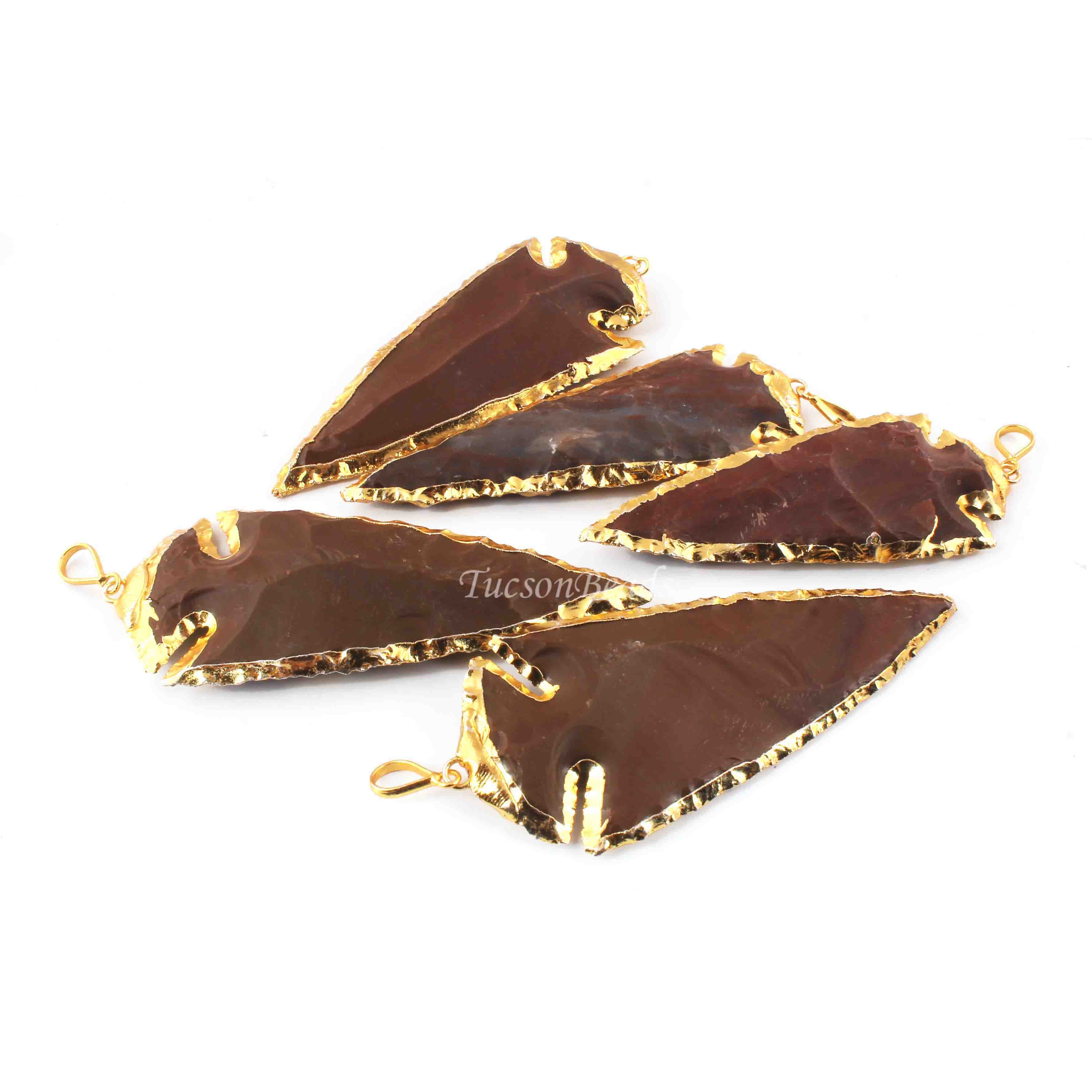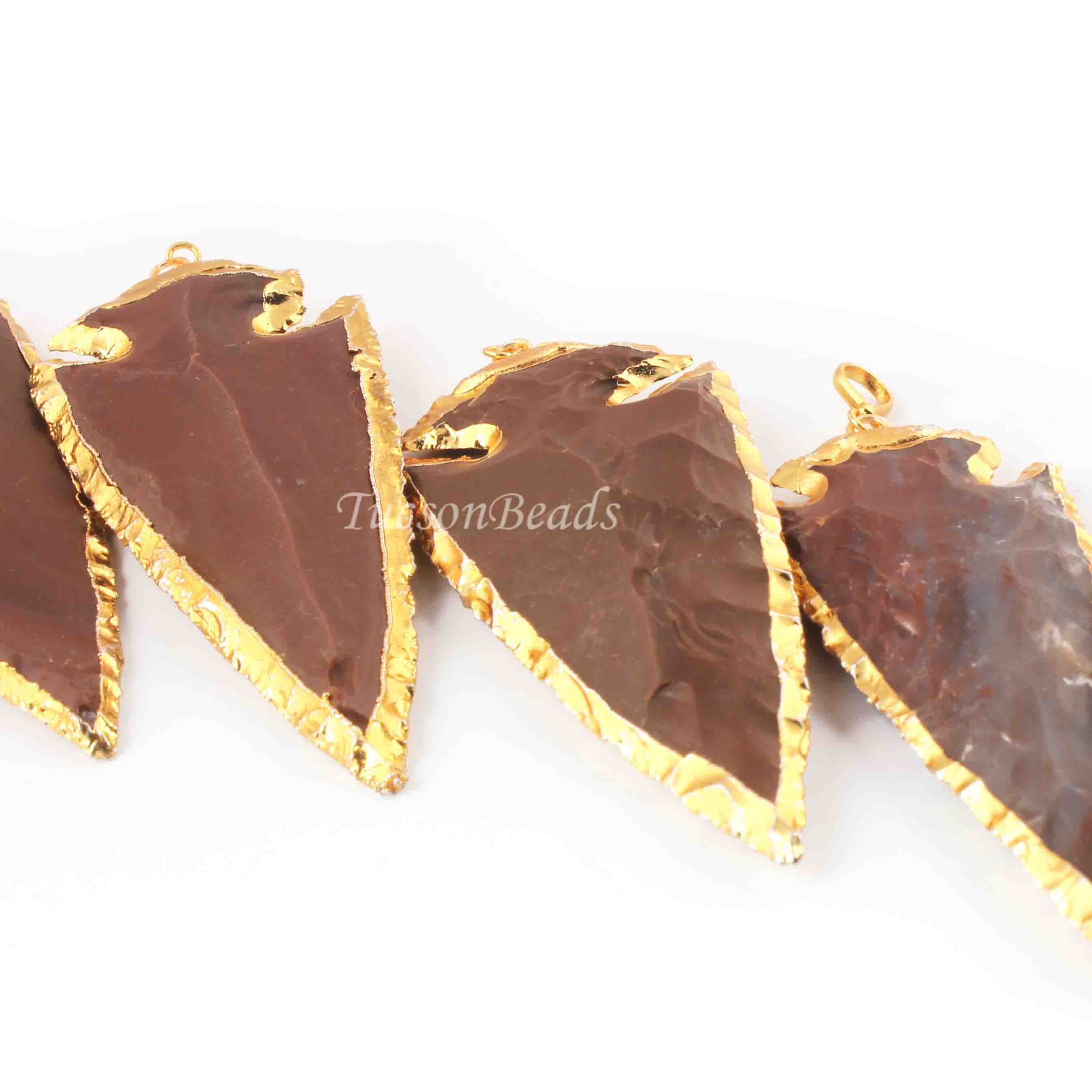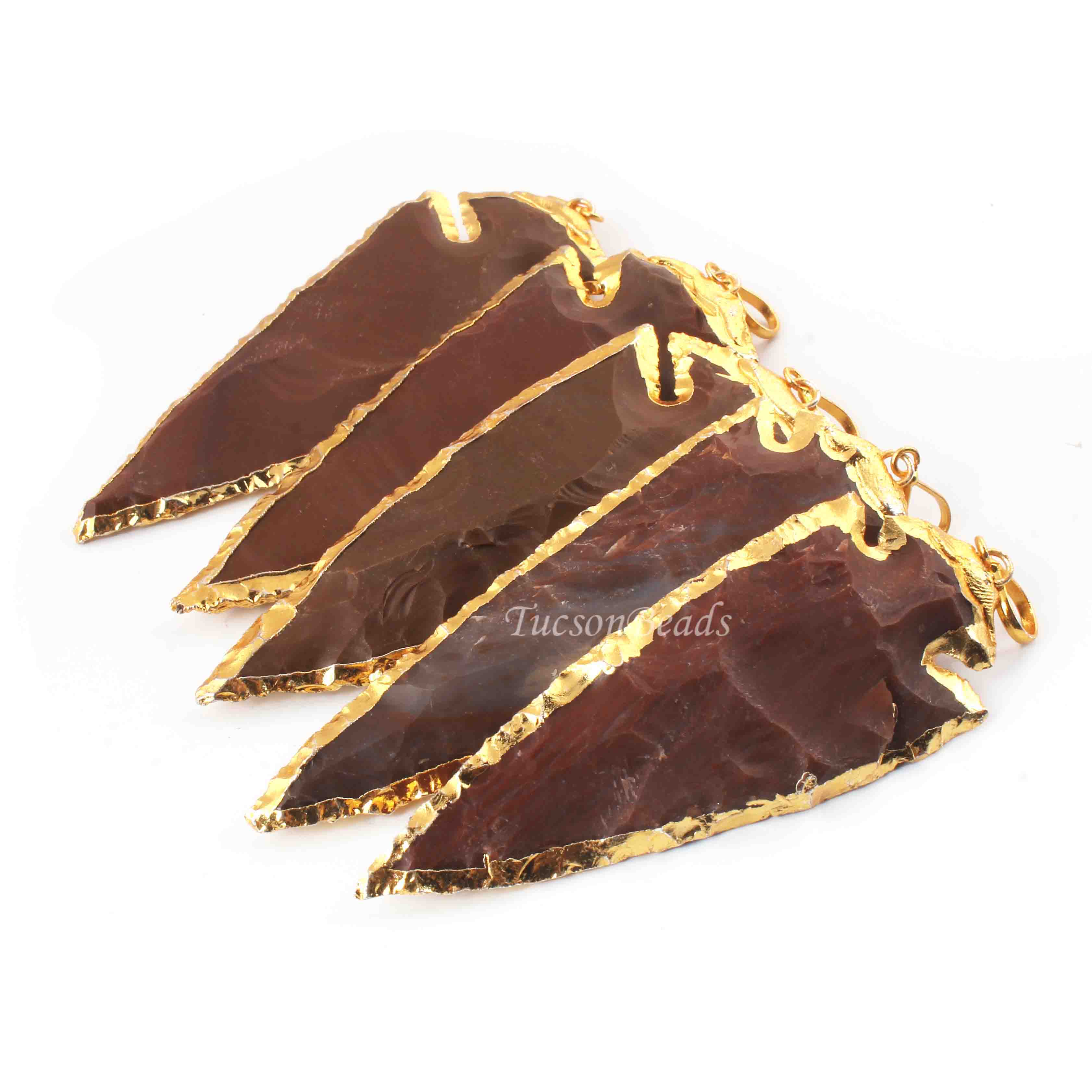 5 Pcs Brown Jasper Arrowhead 24k Gold Plated Charm Pendant - Electroplated With Gold Edge 91mmx31mm-84mmx27mm - AR245
