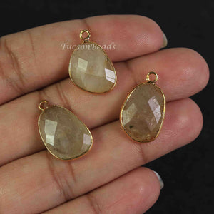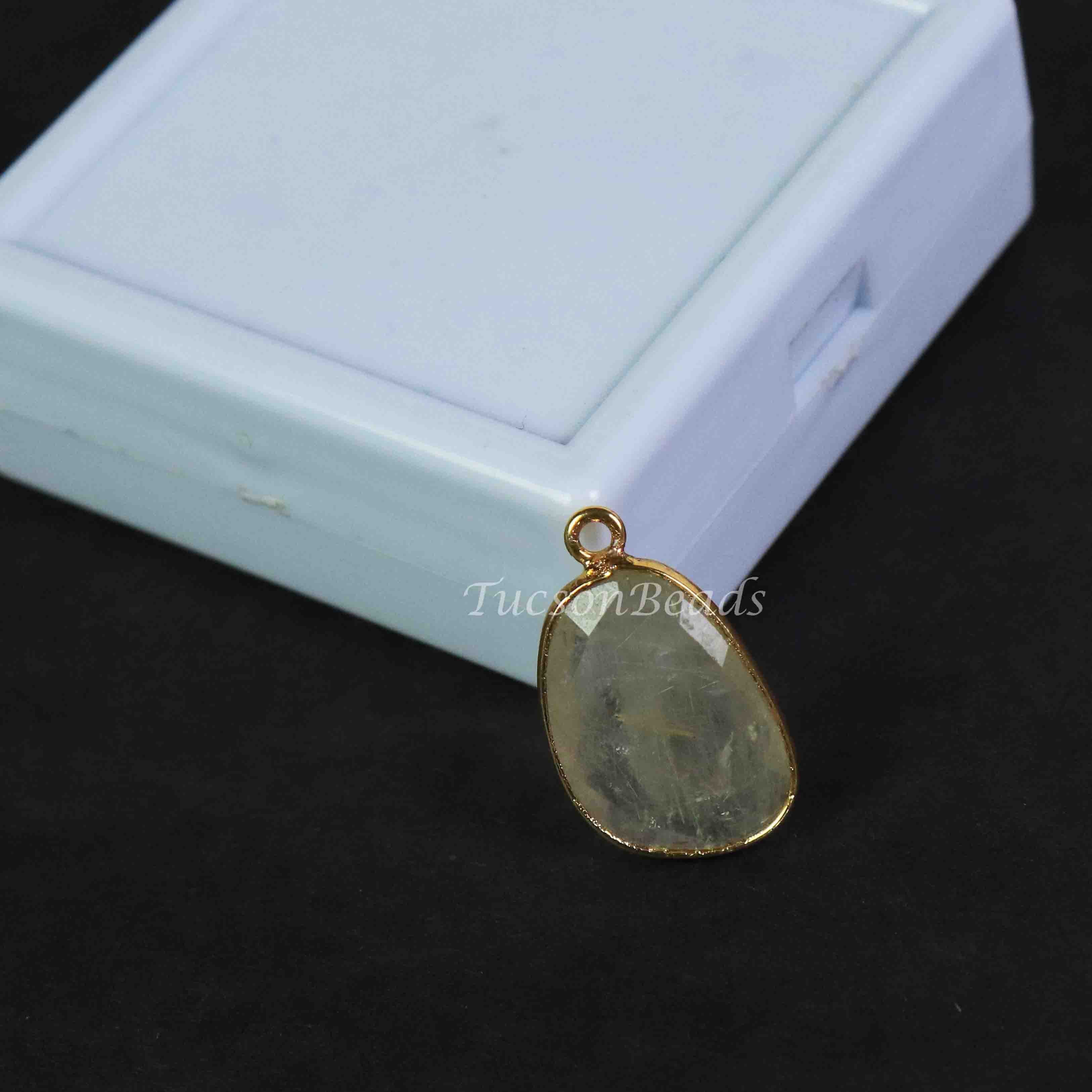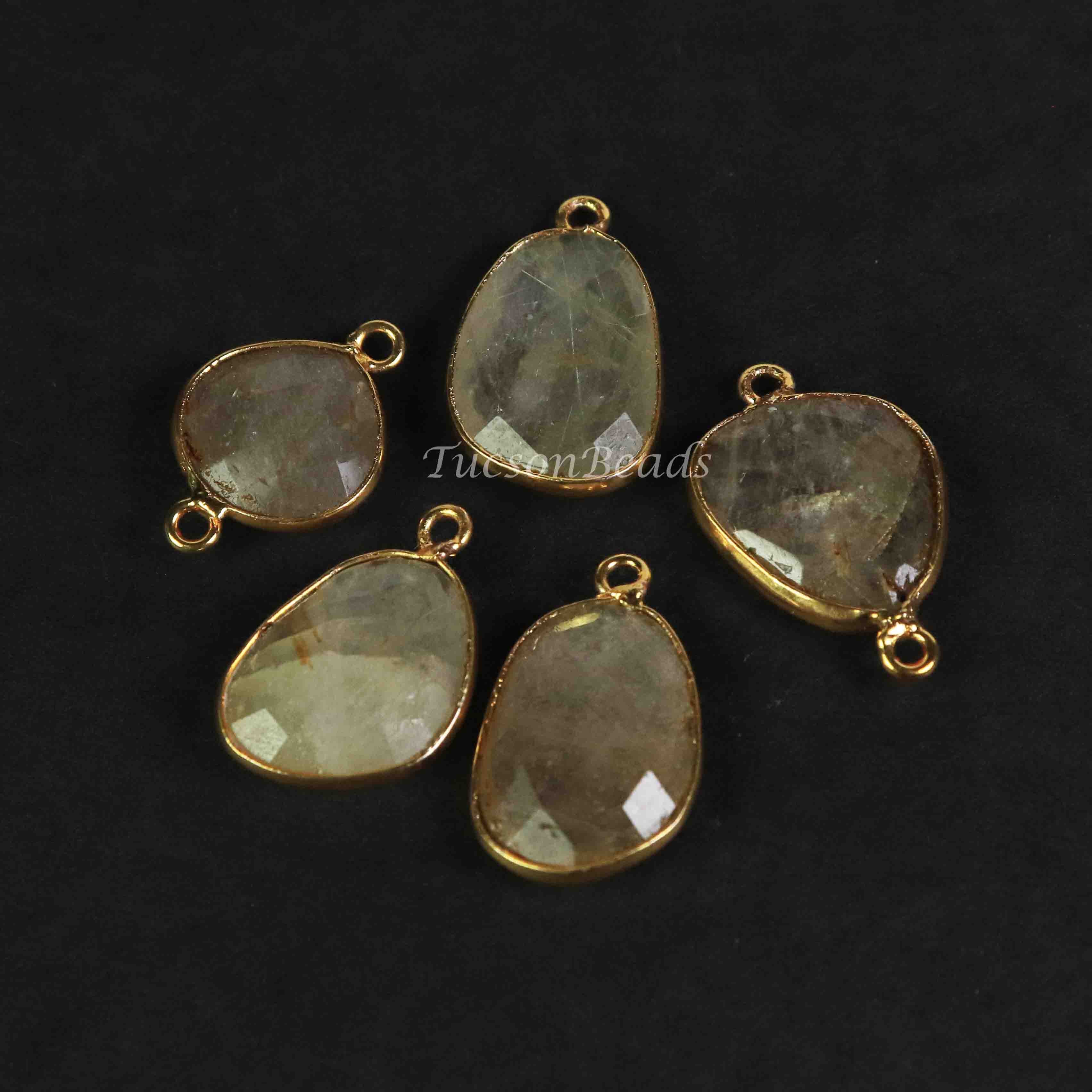 5 Pcs Golden Rutile Faceted Assorted Shape 24k Gold Plated Pendant& Connector - 19mmx13mm-PC674