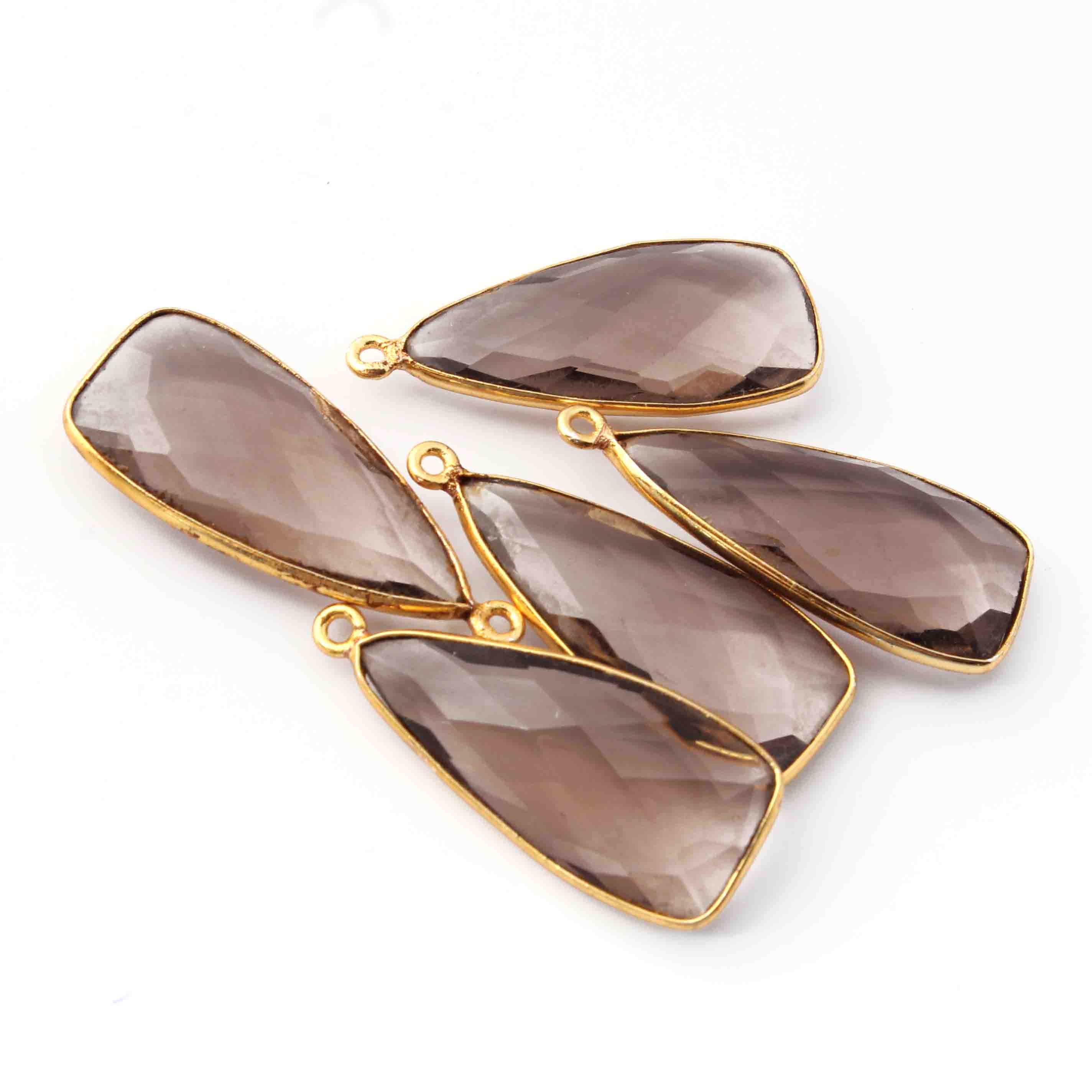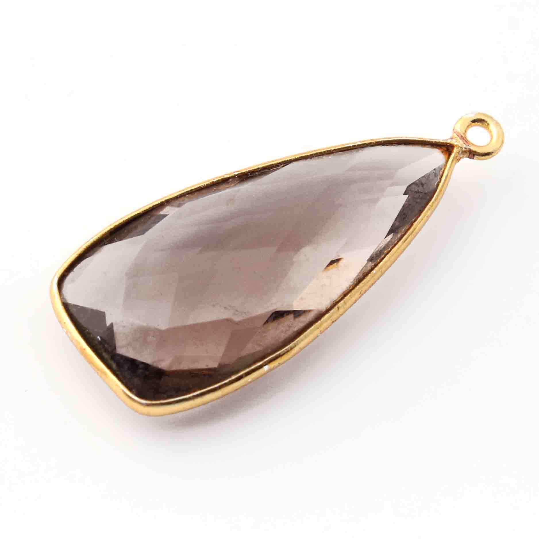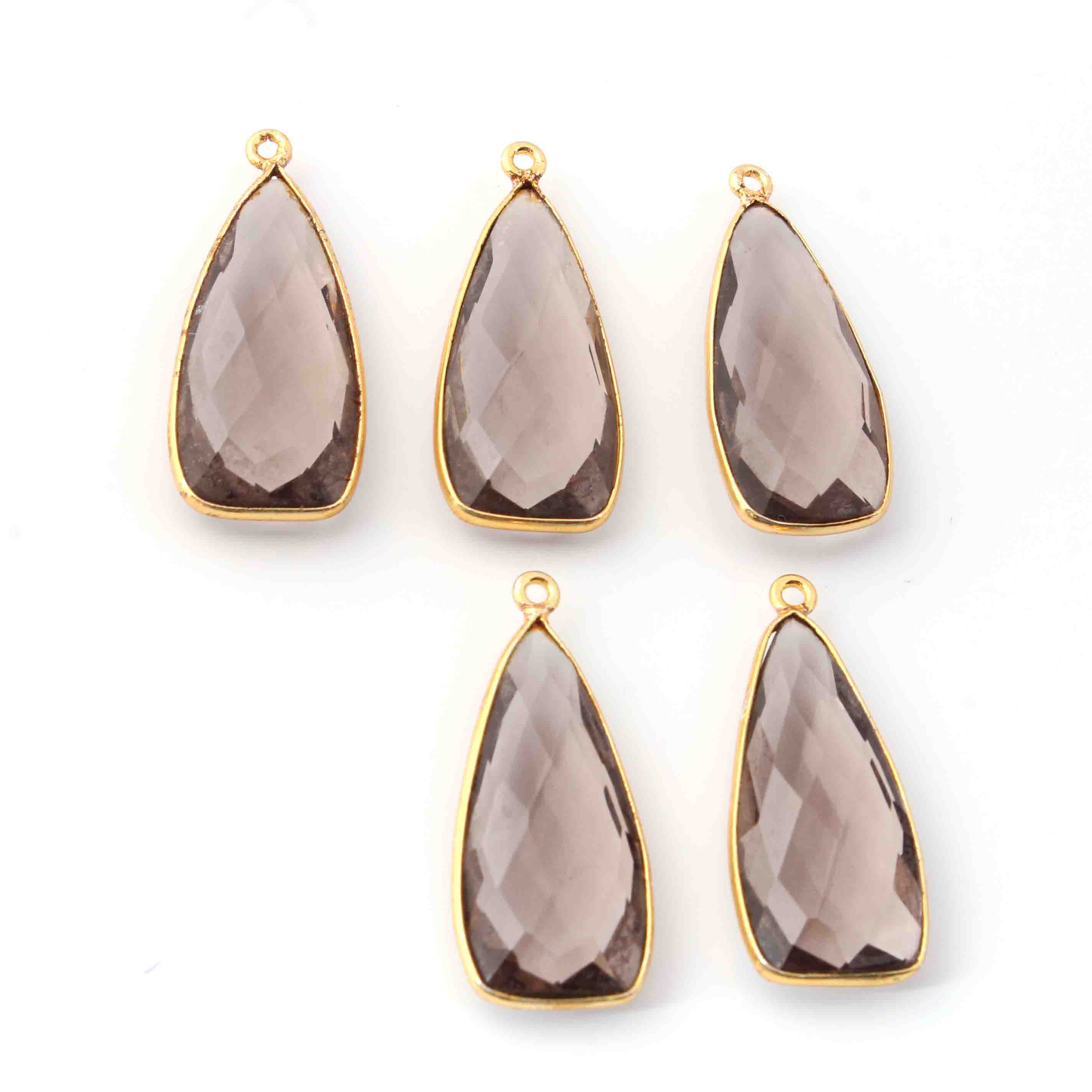• 5 Pcs Smoky Quartz Faceted Dagger Shape 24k Gold Plated Single Bail Pendant-23mmx13mm PC046