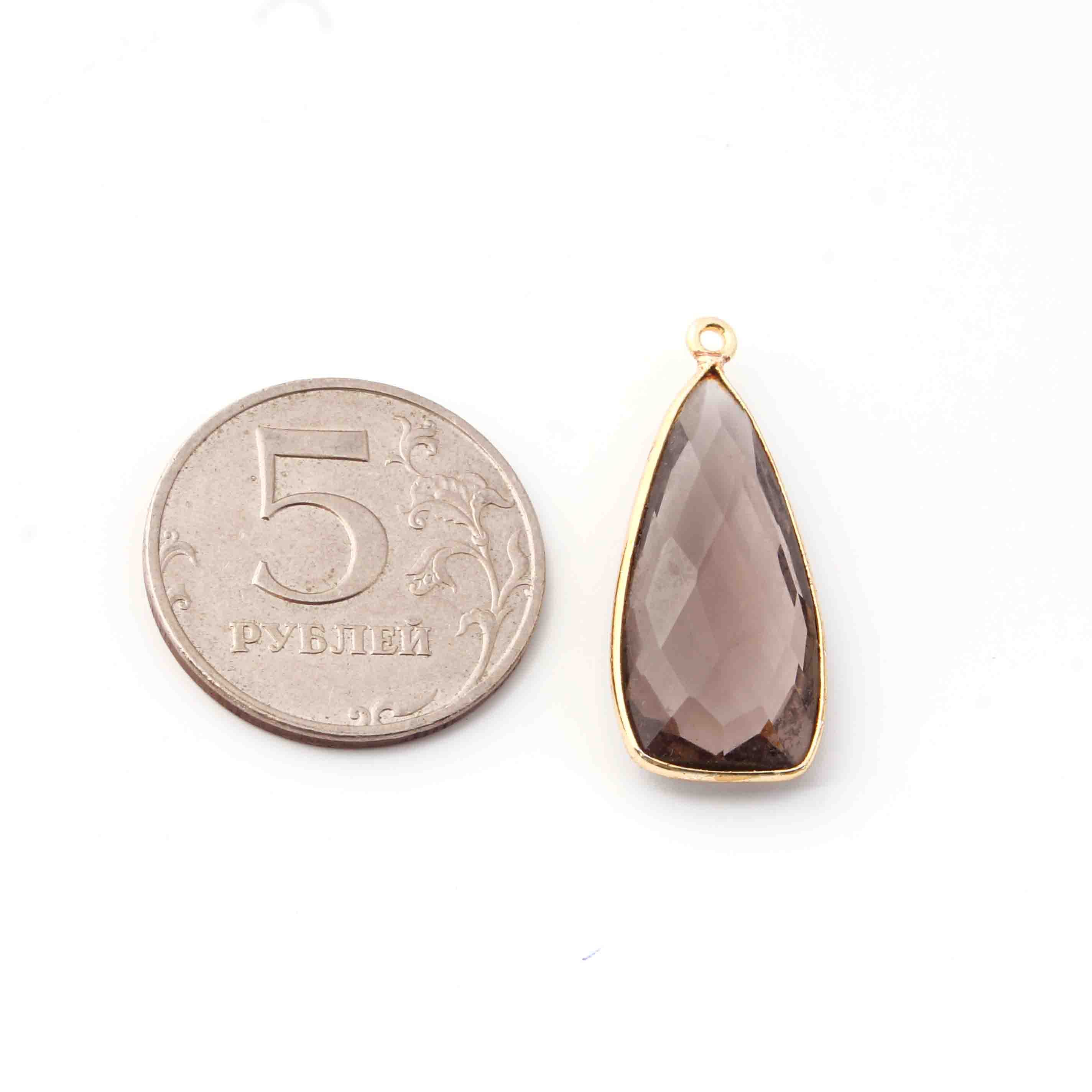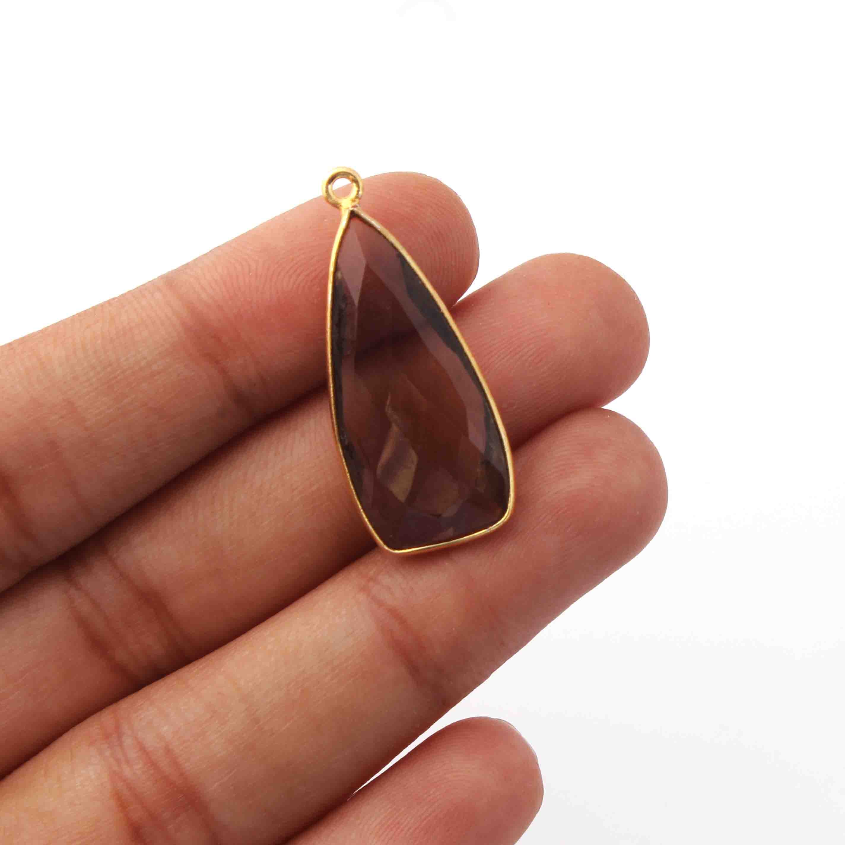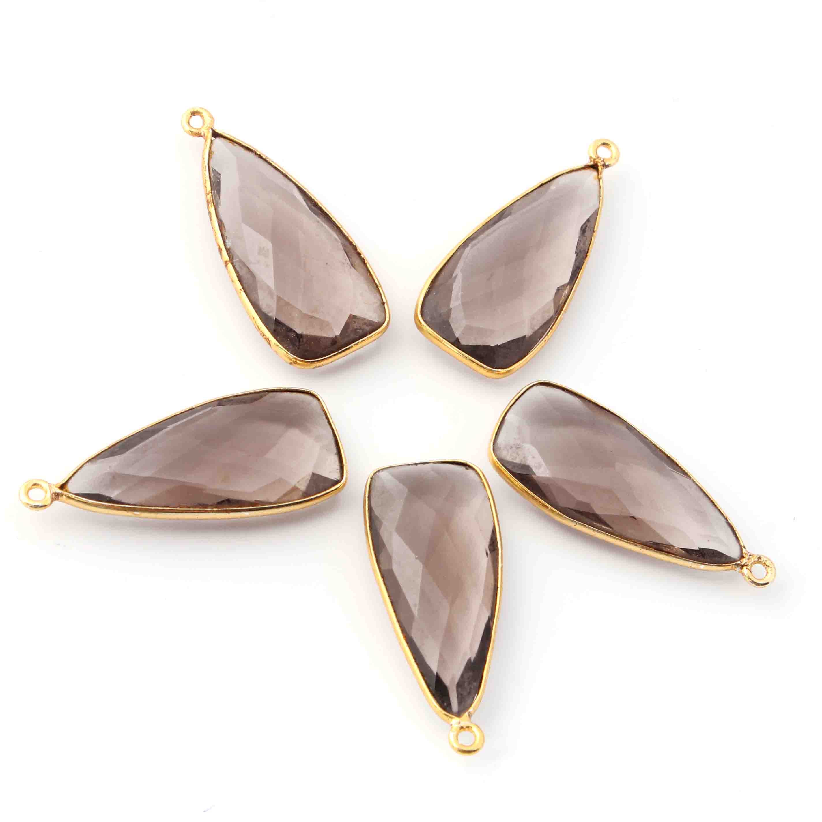 • 5 Pcs Smoky Quartz Faceted Dagger Shape 24k Gold Plated Single Bail Pendant-23mmx13mm PC046